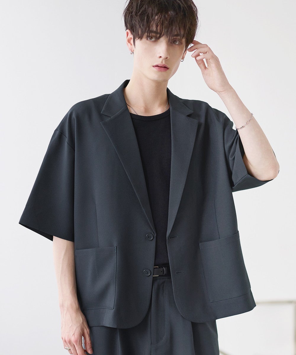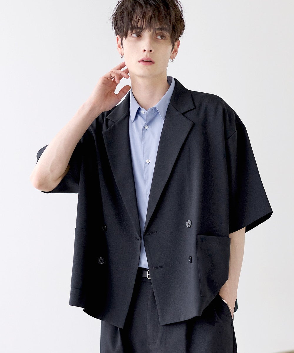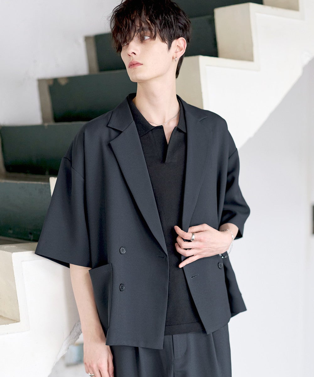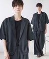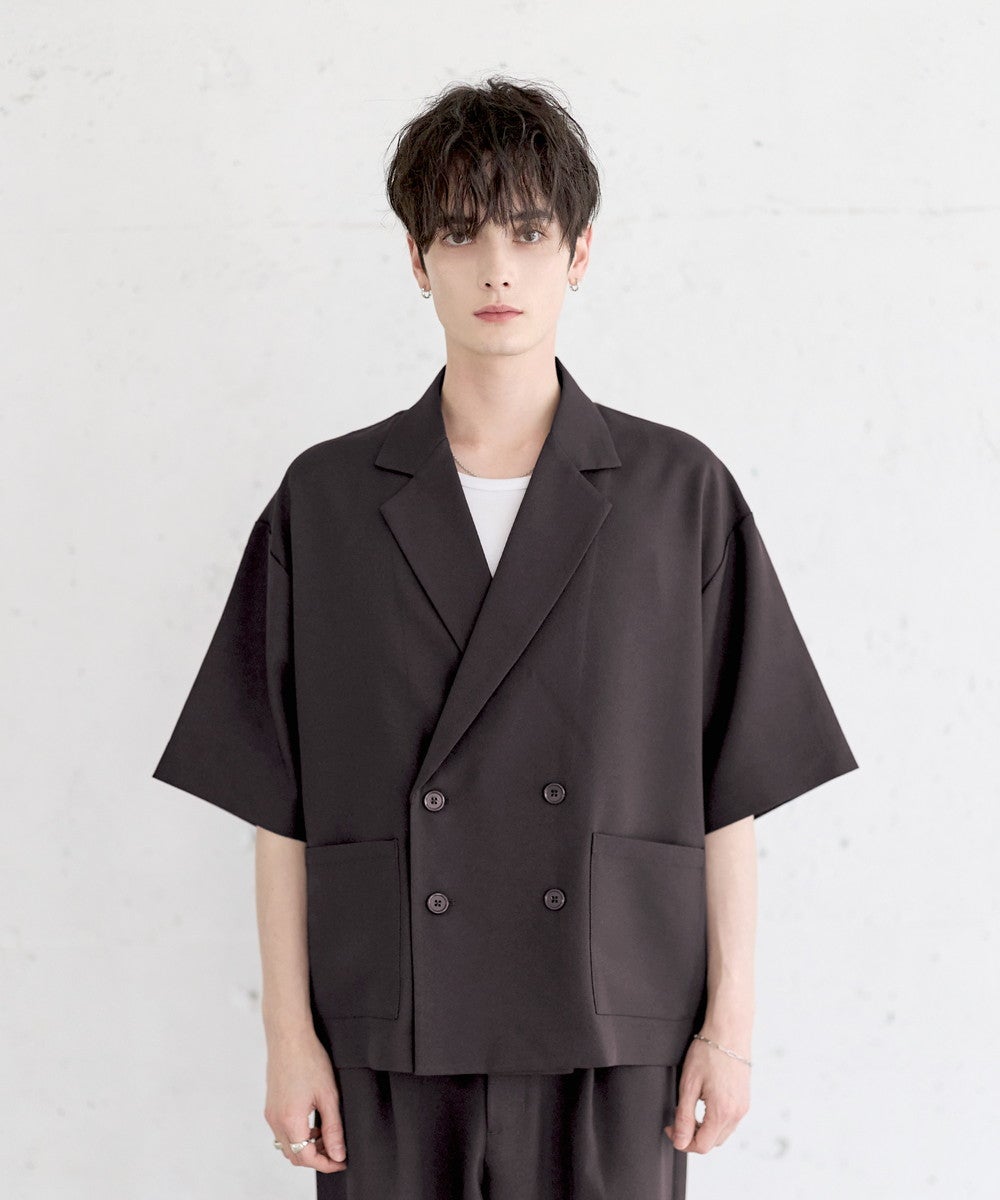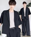 【セットアップ 2点セット】防シワシングル/ダブルテーラード半袖シャツ+タックワイドストレートパンツ