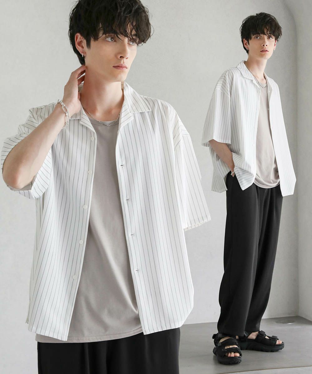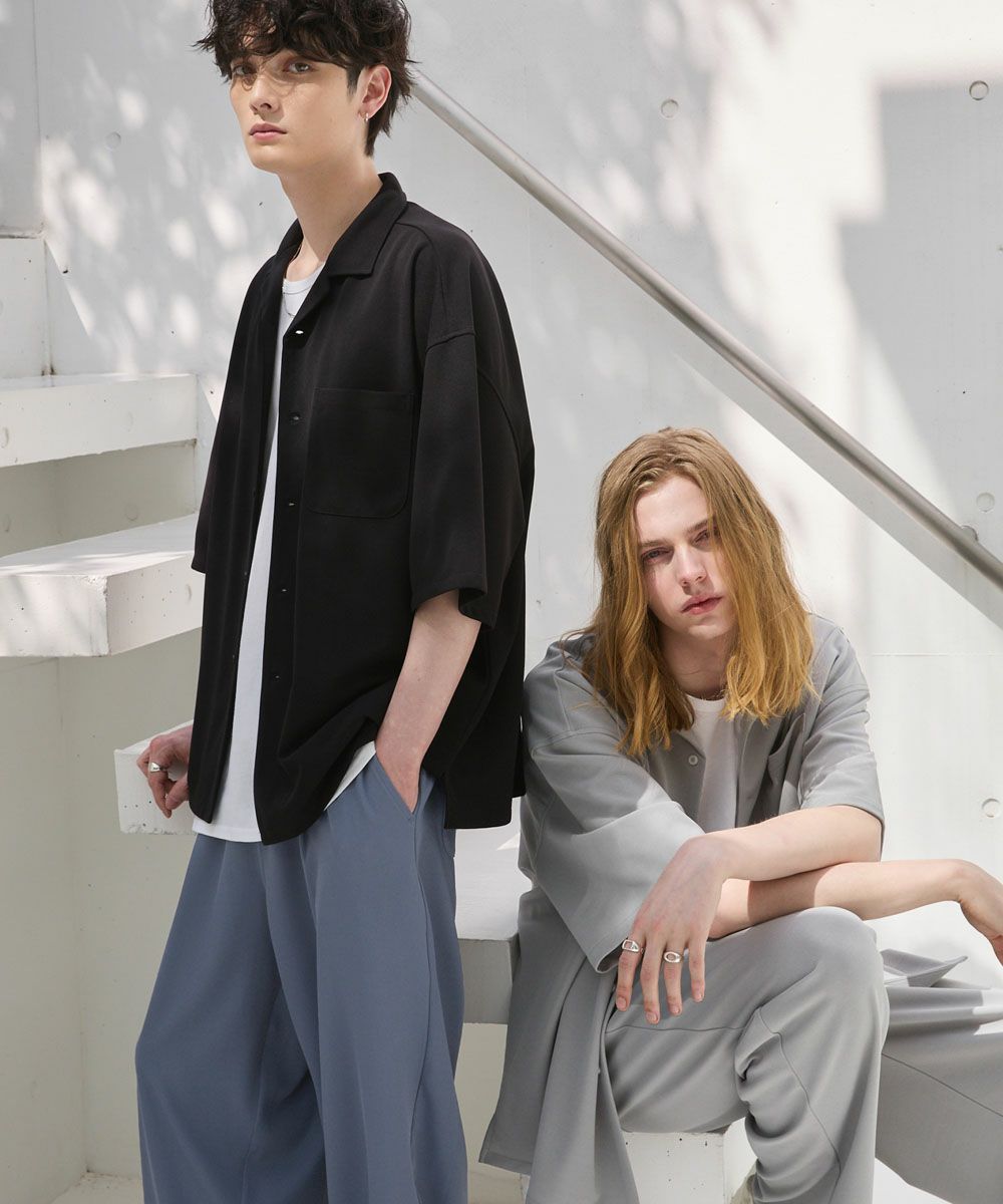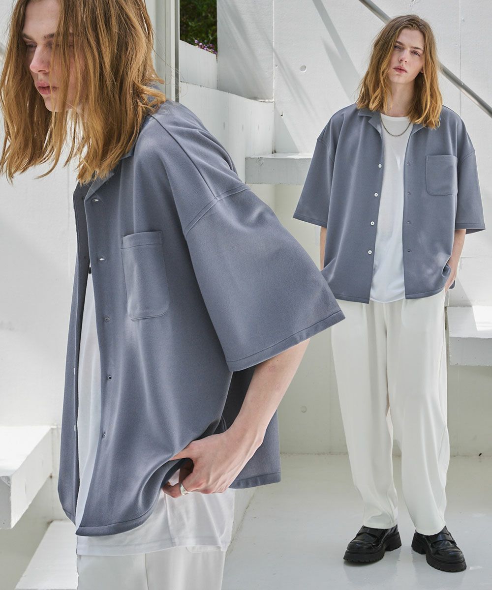 肩の落ちたドロップショルダー&ゆったりとしたワイドな身幅がリラックスした雰囲気の半袖シャツ。オープンカラーで夏らしい抜け感のあるデザインです。胸ポケットがアクセント&サイドにスリット入りでレイヤードもキレイに決まります。
