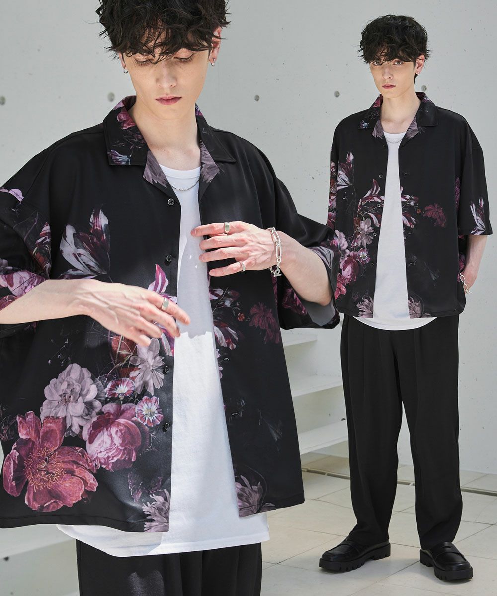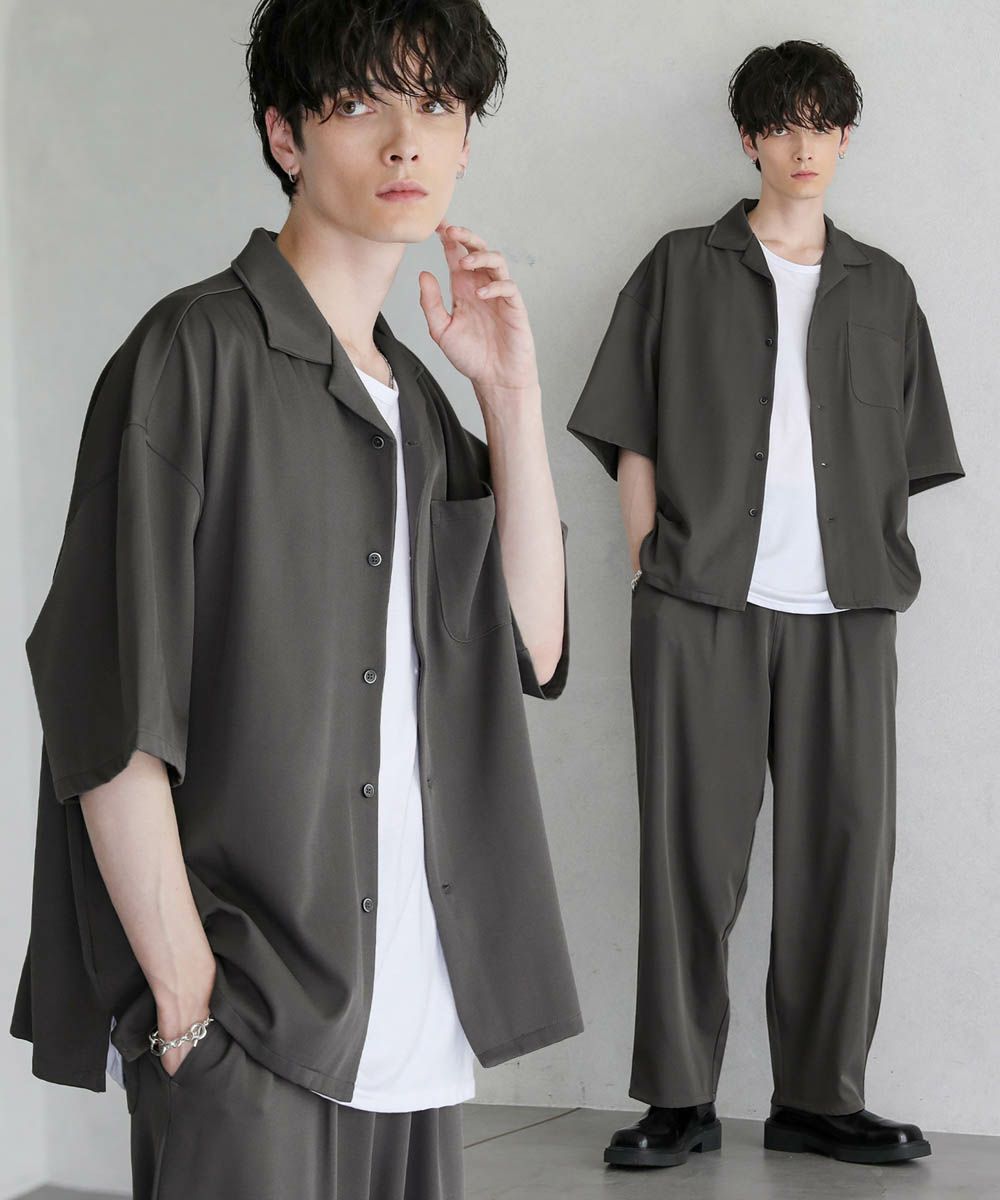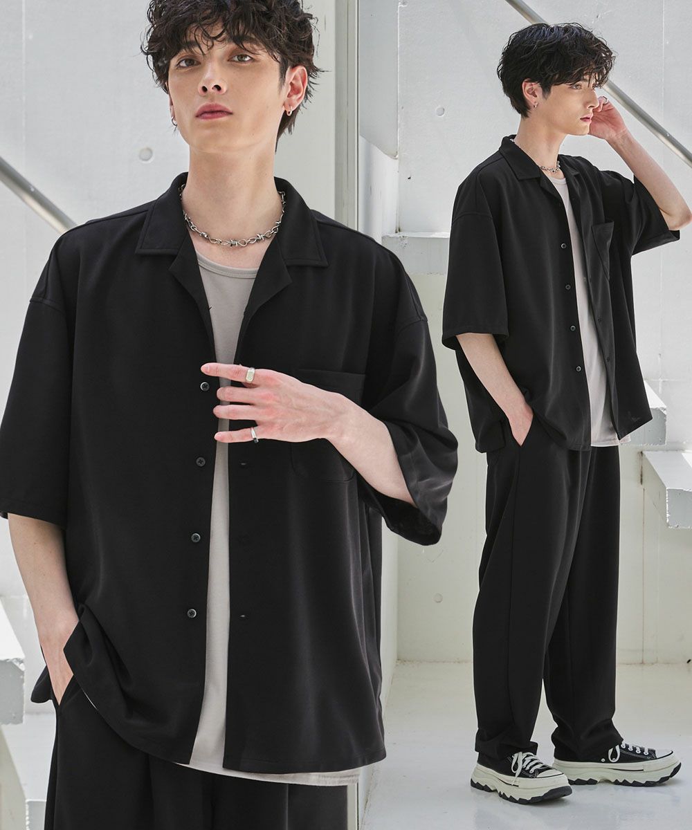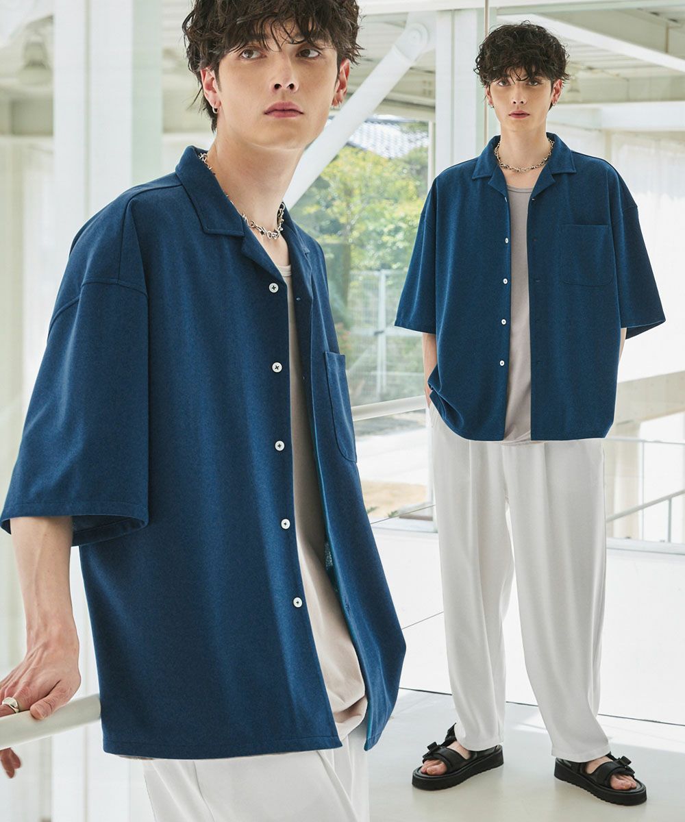 ・ルーズシルエット半袖オープンカラーポケットシャツ