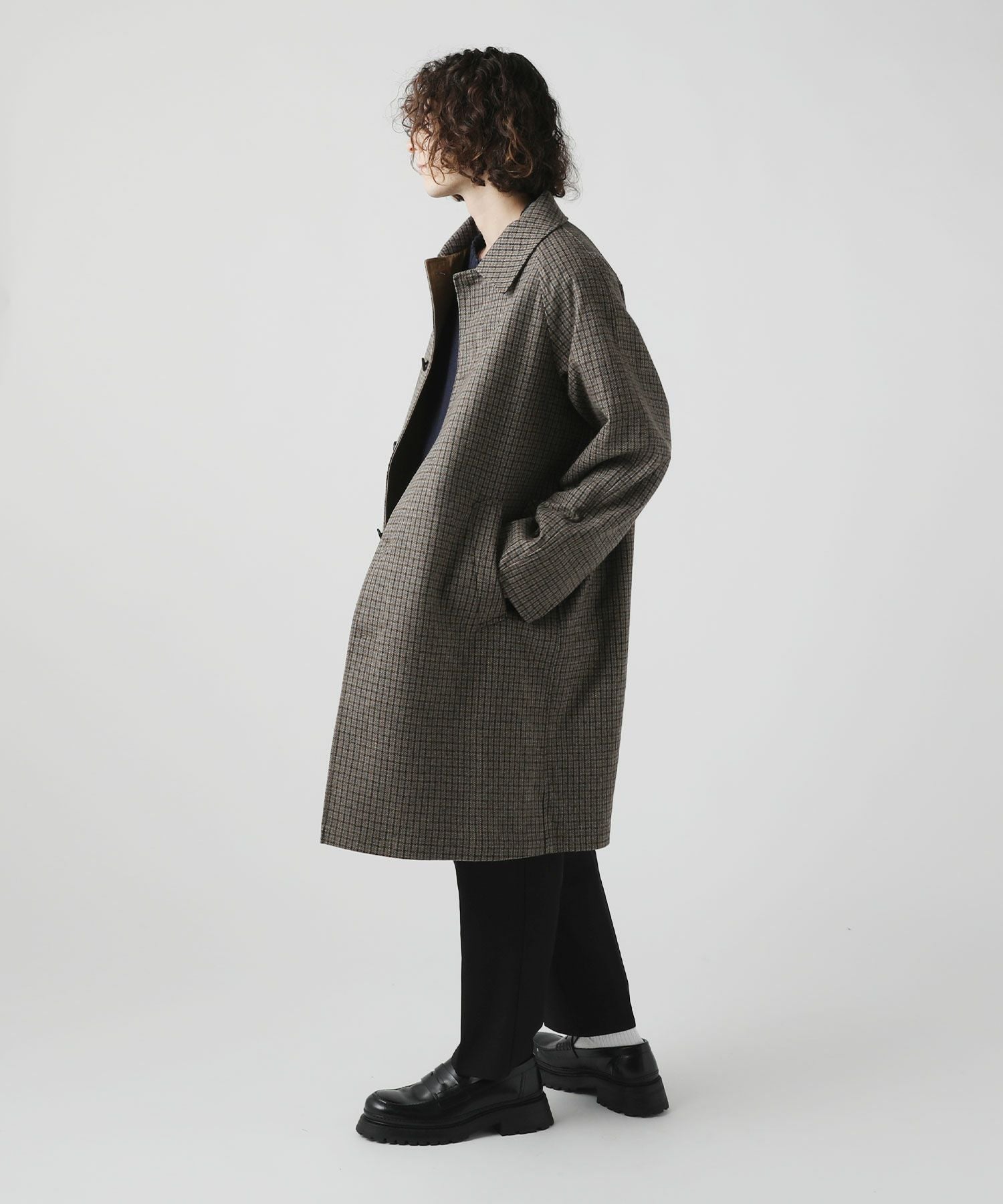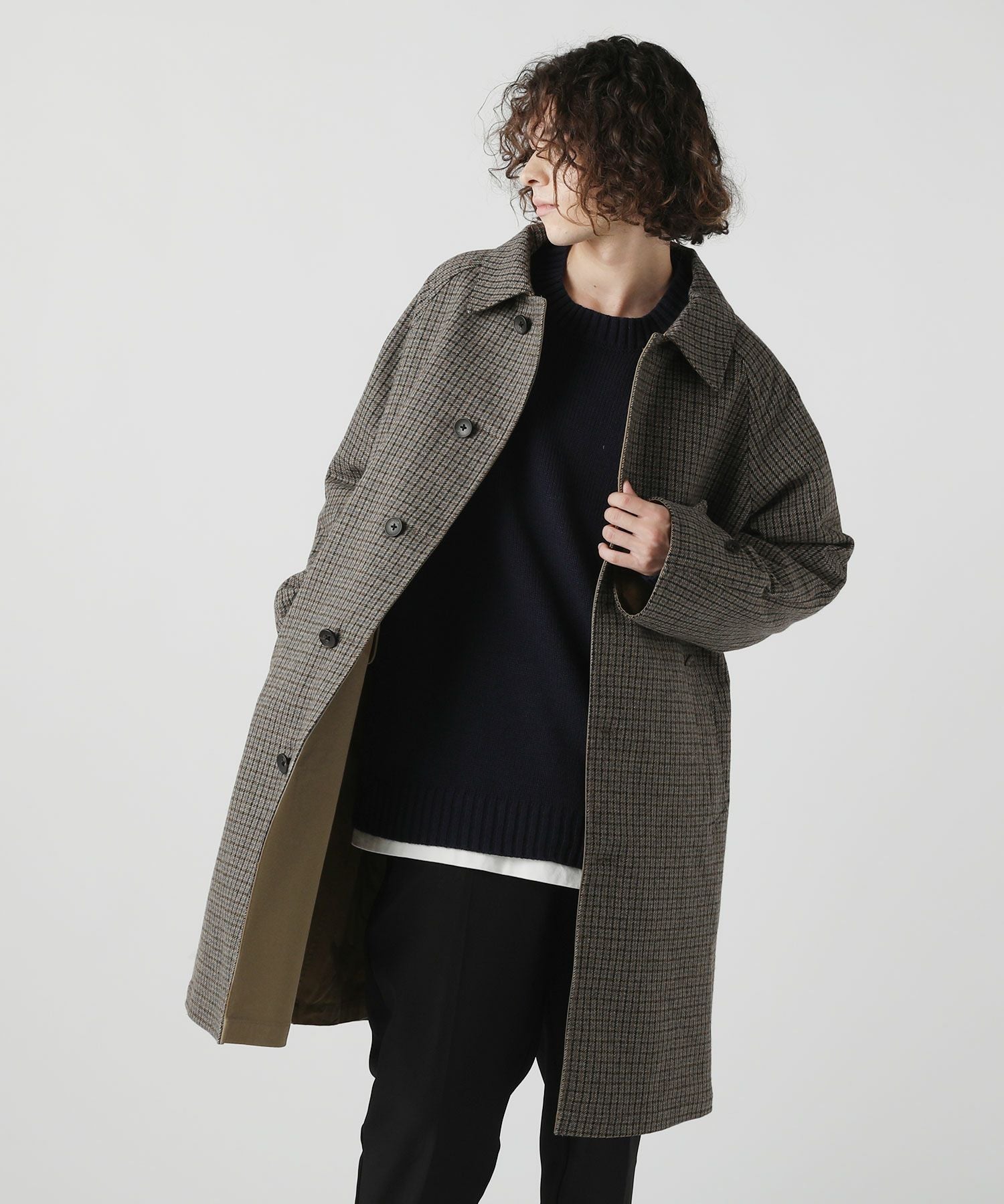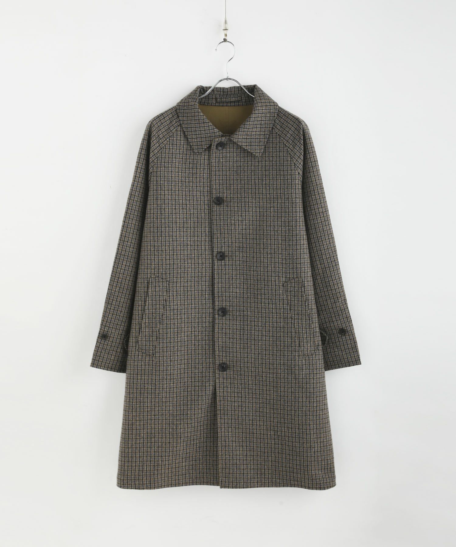 気分に合わせて着こなしに変化をつけられるリバーシブルコート。 表地はウォーム感のあるウール混素材を使用したクラッシックなチェック柄、裏地は上品な艶のあるシンプルな無地のギャバジン生地です。