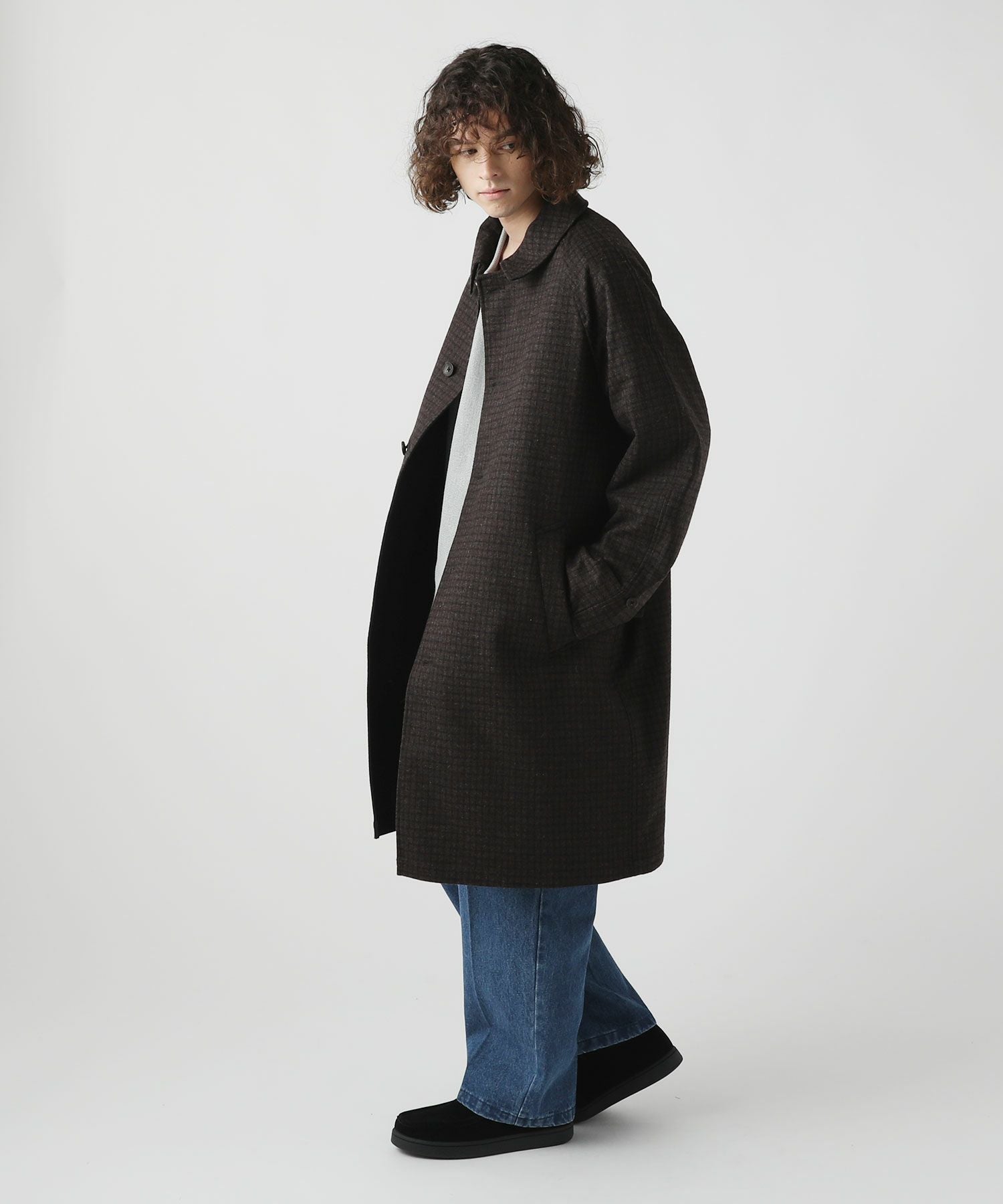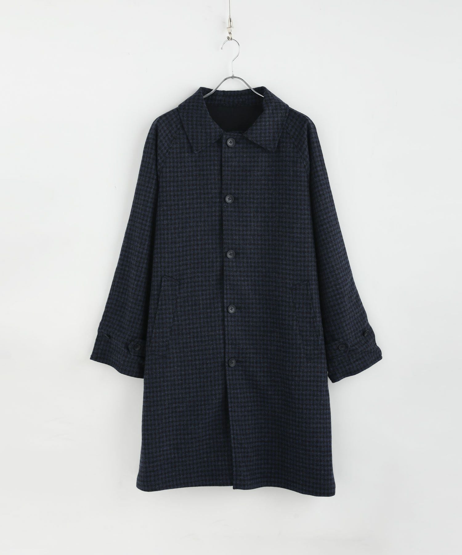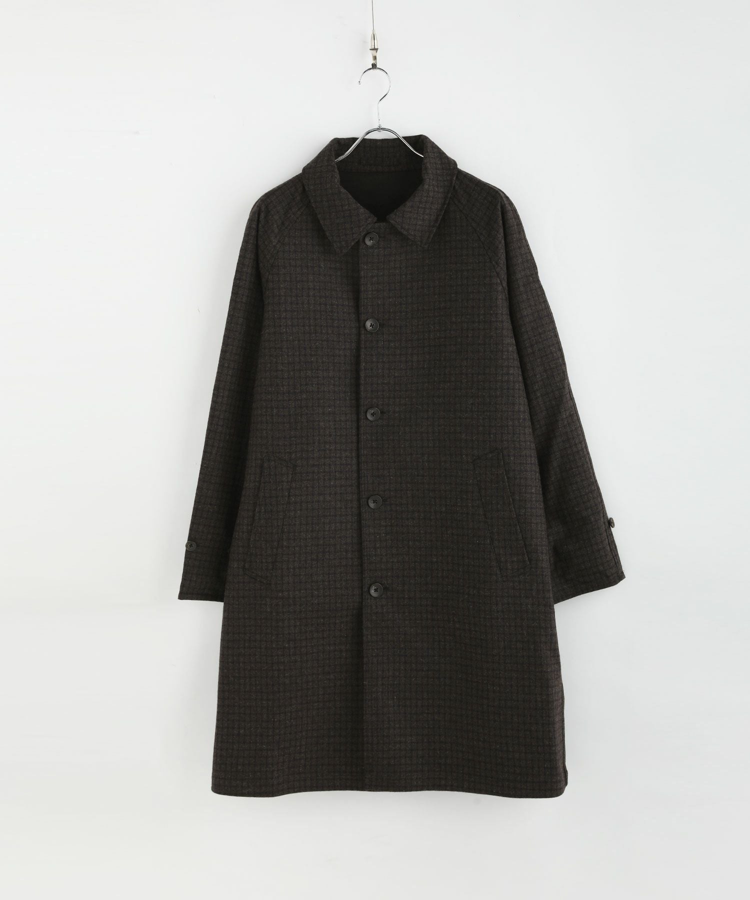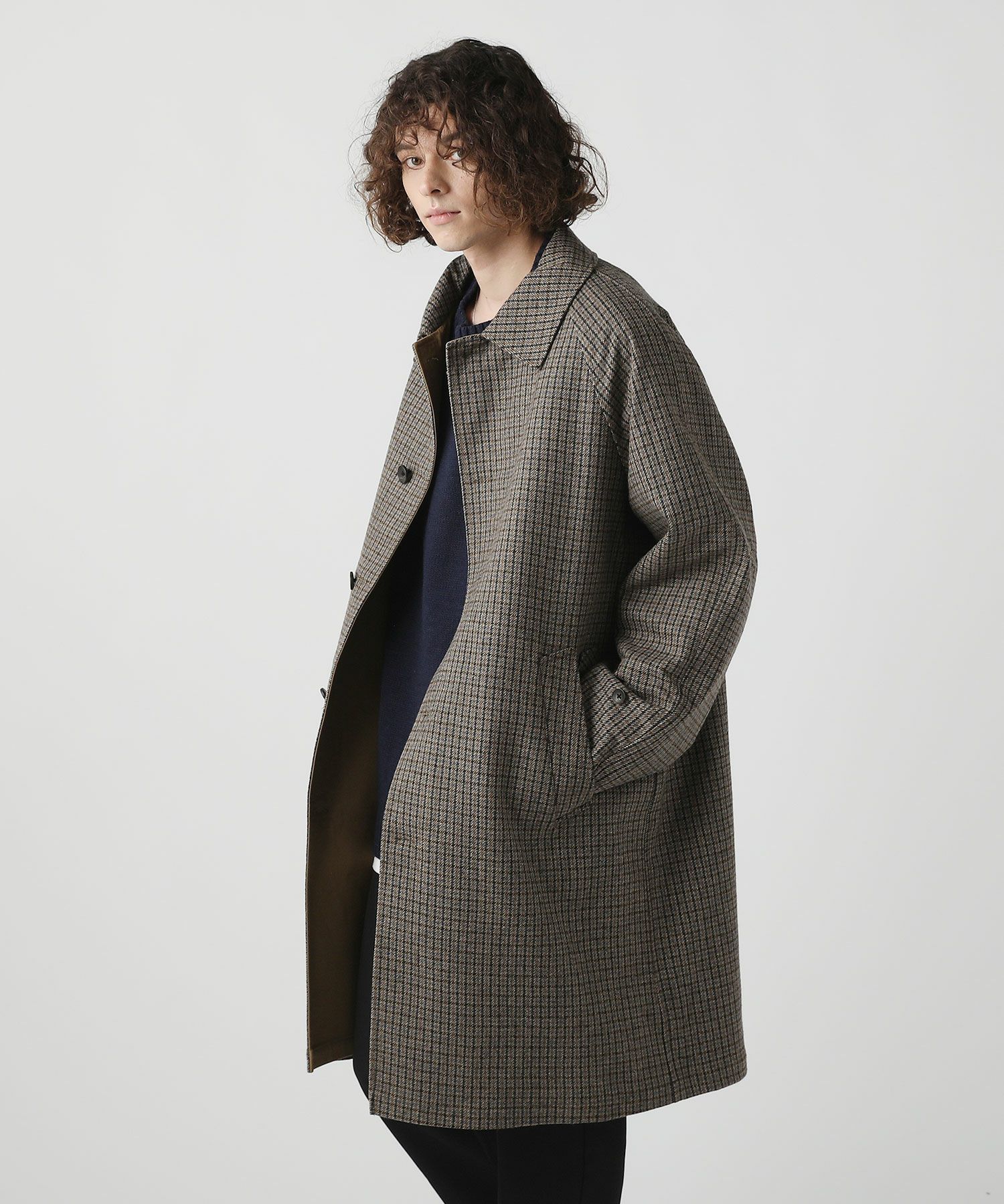 気分に合わせて着こなしに変化をつけられるリバーシブルコート。 表地はウォーム感のあるウール混素材を使用したクラッシックなチェック柄、裏地は上品な艶のあるシンプルな無地のギャバジン生地です。