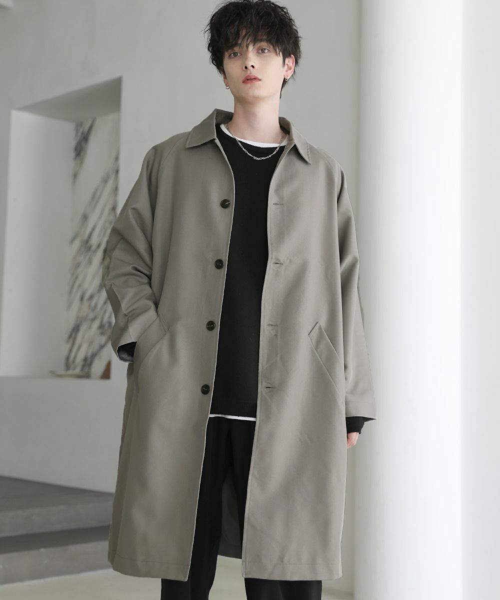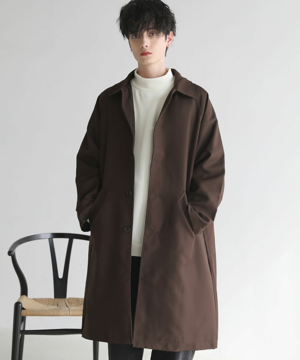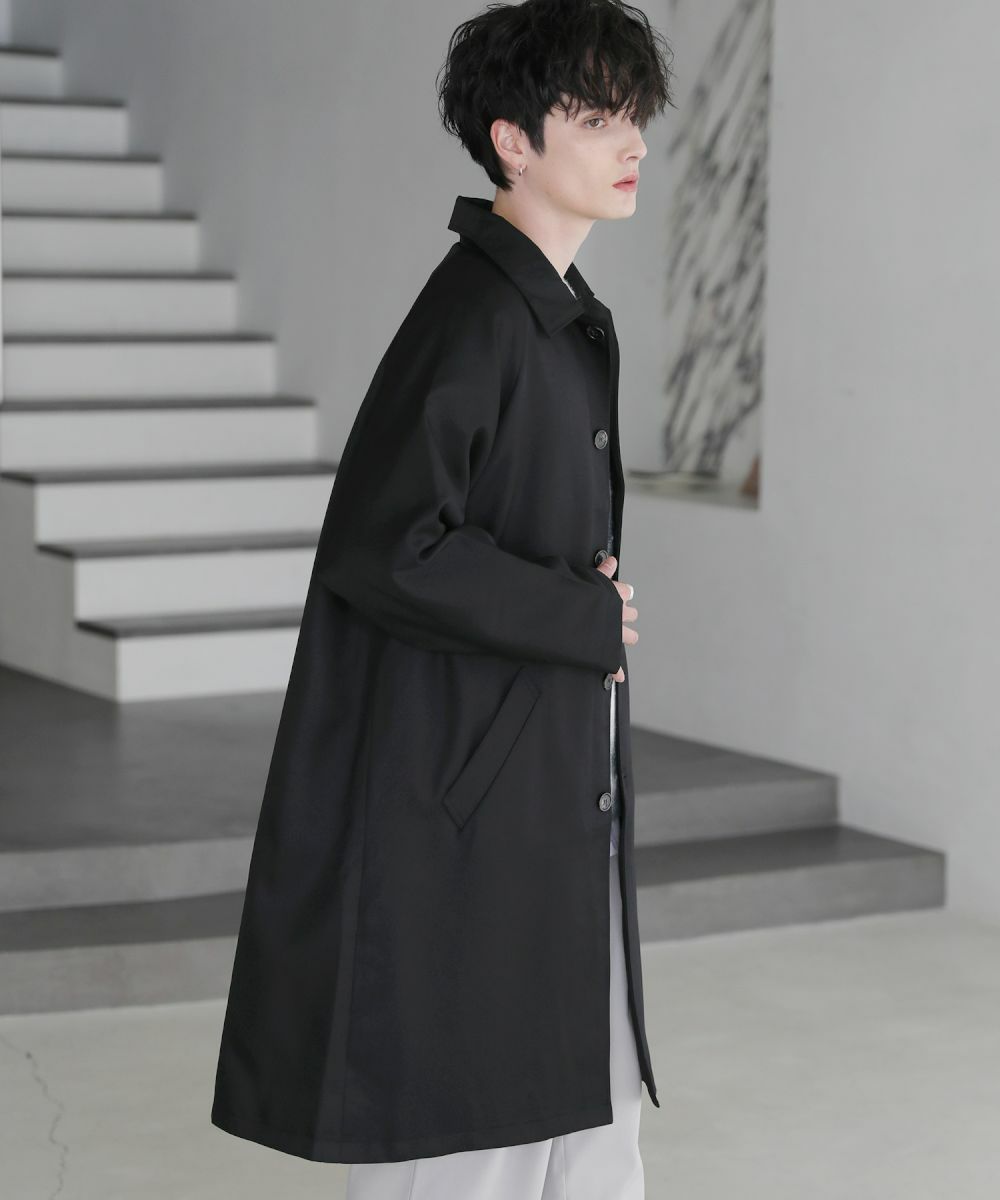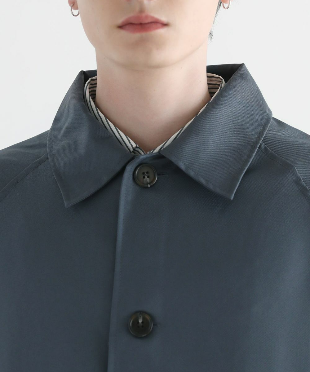 デイリーユースに最適なステンカラーコート。ゆとりを持たせたシルエットを軸に、ラグランスリーブの切り替えしを加え程よい着丈に仕上げました。軽やかでやや光沢のある素材を使用し、ライトに羽織りやすく無駄のないシンプルなデザインです。ベーシックな襟仕様のため、シャツやモックネックなど合わせるインナーを選ばず着用できます。カラーは、シンプルで洗練されたブラック、ニュアンスカラーのグレージュ、秋冬に映えるブラウンとダークブルーの4色展開。ラフに羽織ってもサマになるコートは、カジュアルシーンからキレイめスタイルまでジャンルを選ばず着られます。