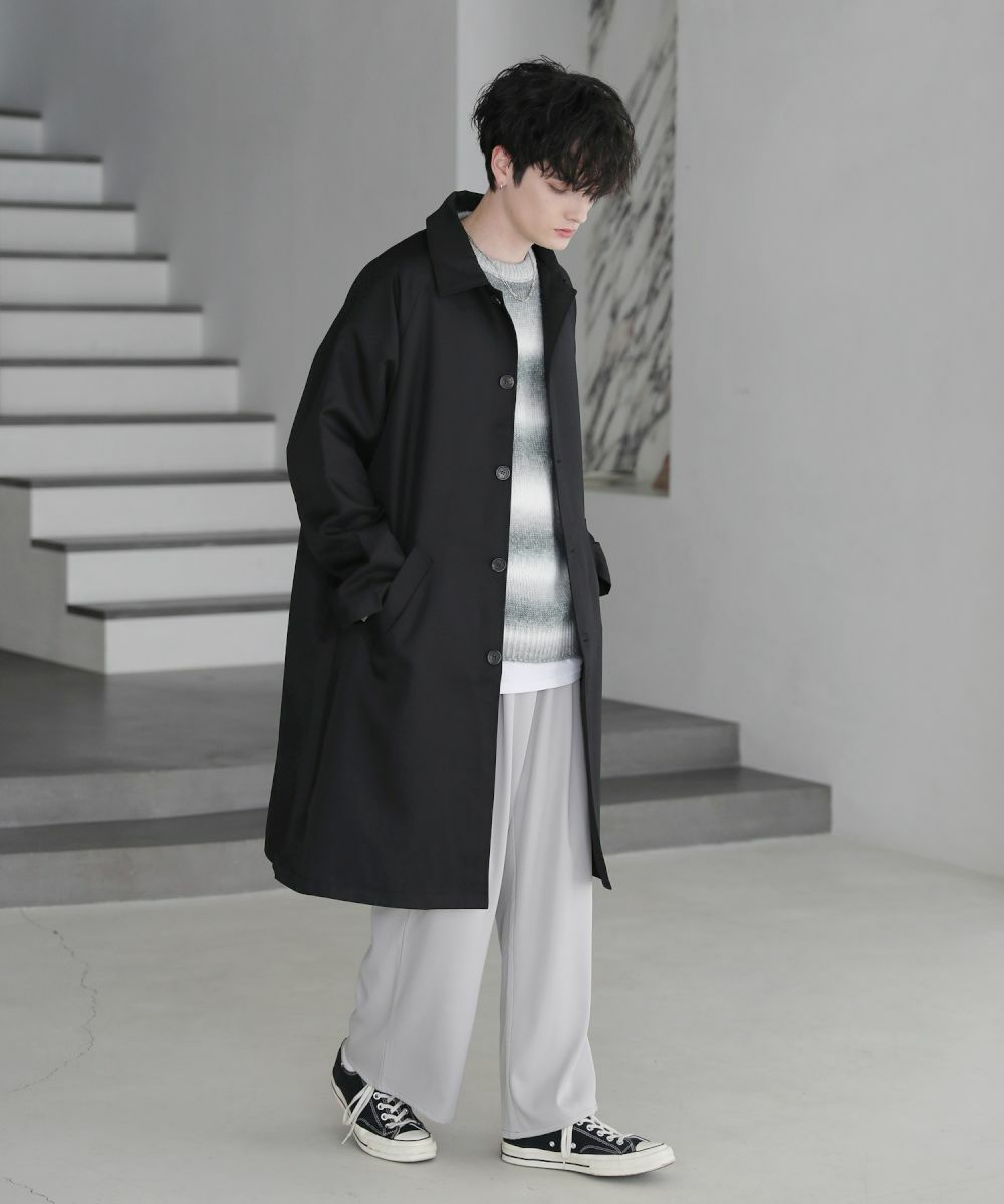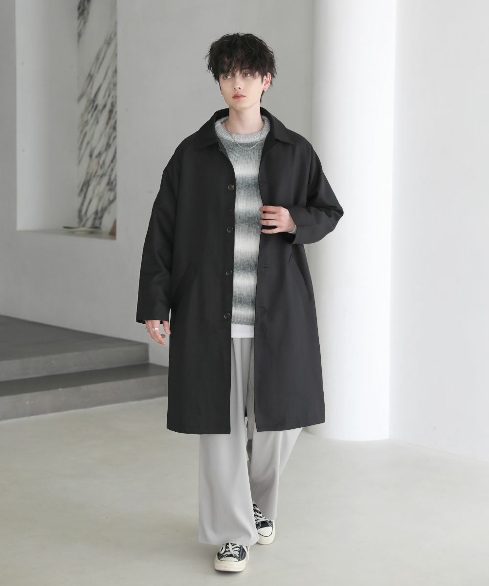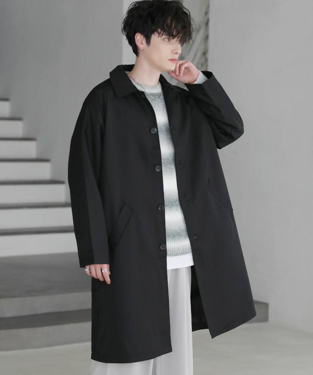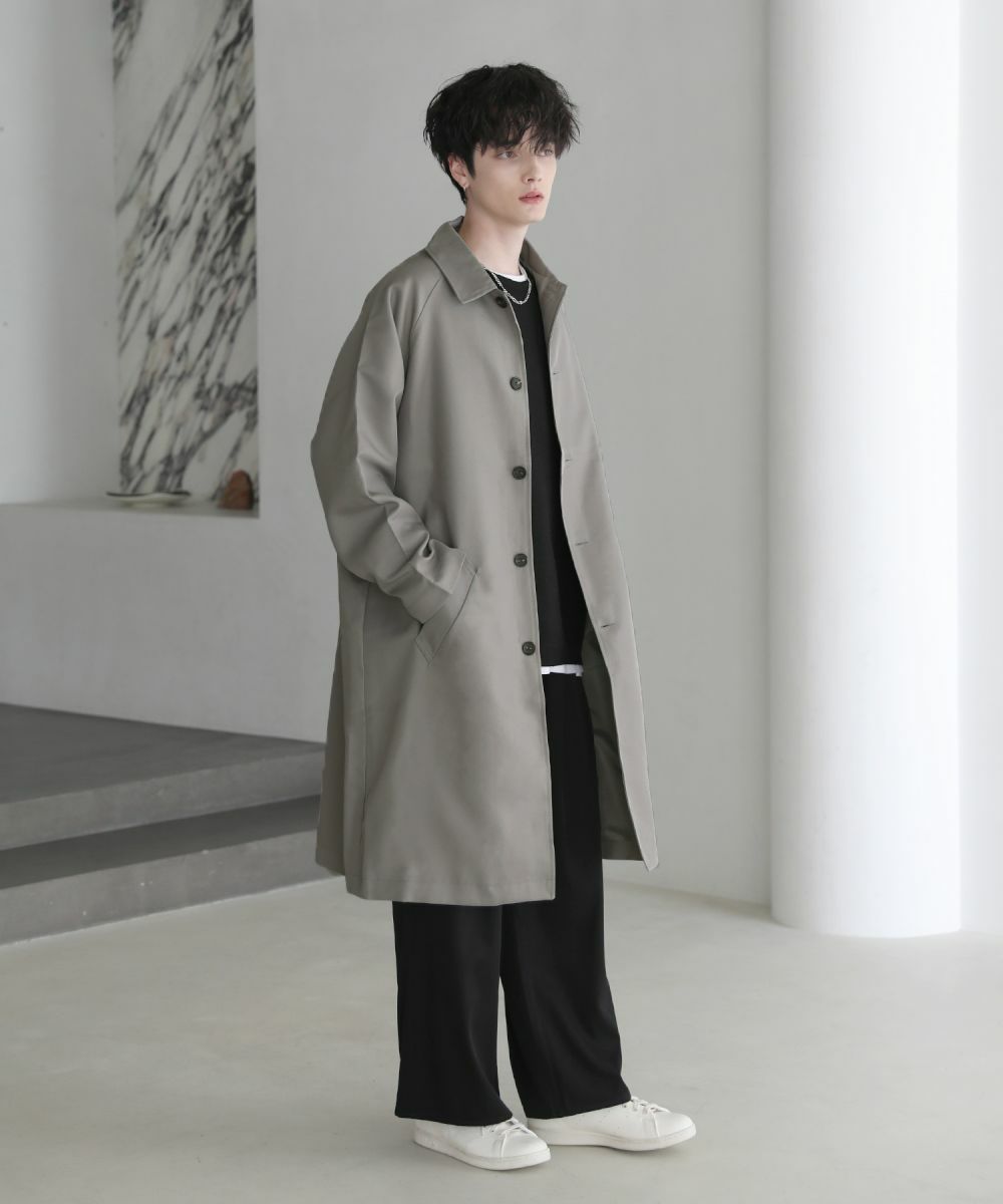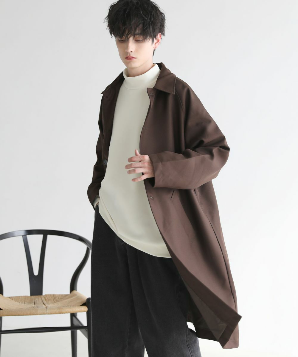デイリーユースに最適なステンカラーコート。ゆとりを持たせたシルエットを軸に、ラグランスリーブの切り替えしを加え程よい着丈に仕上げました。軽やかでやや光沢のある素材を使用し、ライトに羽織りやすく無駄のないシンプルなデザインです。ベーシックな襟仕様のため、シャツやモックネックなど合わせるインナーを選ばず着用できます。カラーは、シンプルで洗練されたブラック、ニュアンスカラーのグレージュ、秋冬に映えるブラウンとダークブルーの4色展開。ラフに羽織ってもサマになるコートは、カジュアルシーンからキレイめスタイルまでジャンルを選ばず着られます。