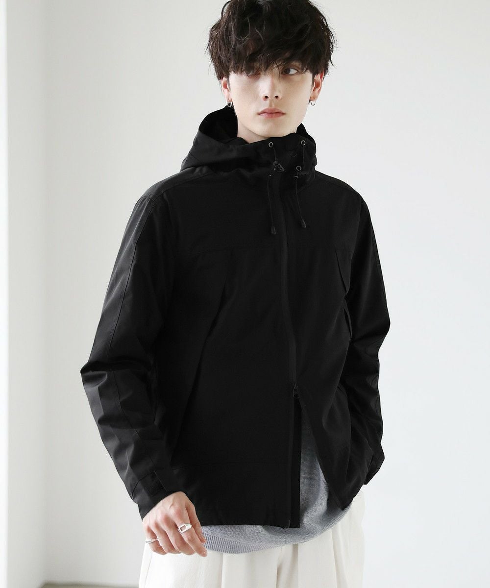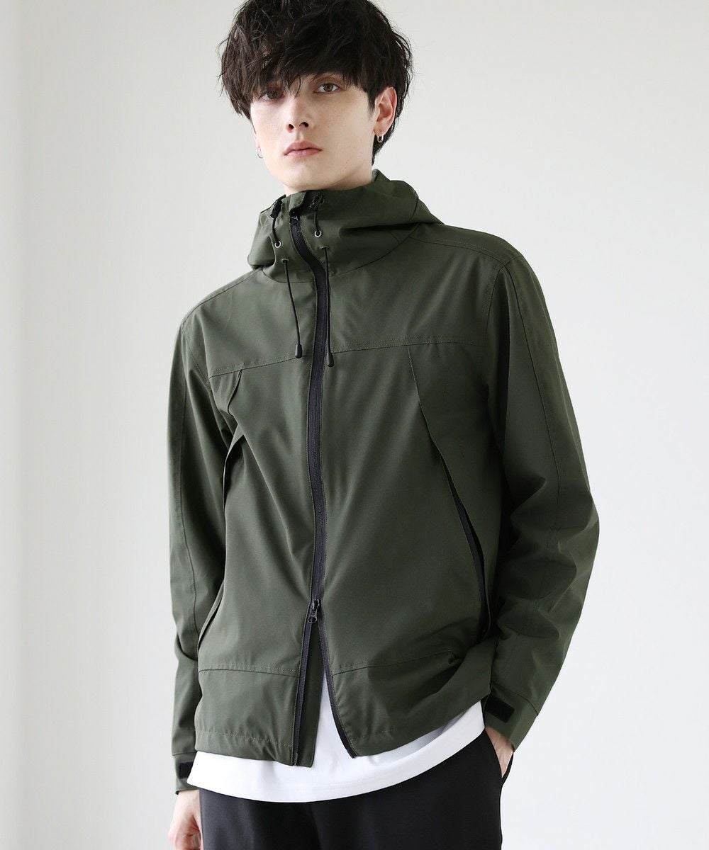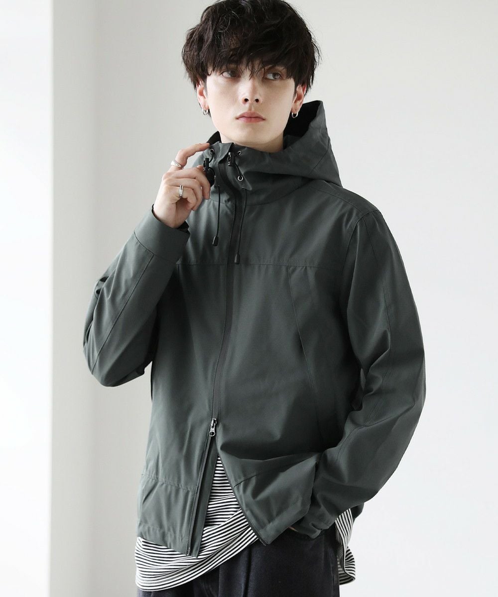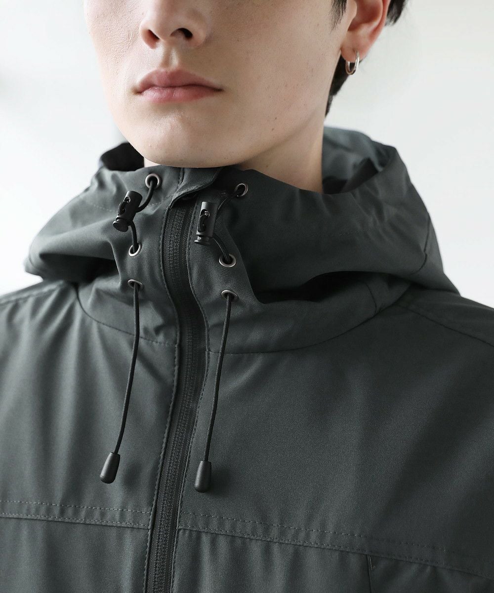 マウンテンパーカーの機能面は残しつつアウトドアなテイストをマイルドにすることで、日常的に着回しやすいアイテムです。 フロントのダブルジップは上下どちらからも開く仕様で、通常のファスナーではできない、下部分だけを開ける着方も可能に。より自由な着こなしがお楽しみいただけます。アウトドアはもちろん、タウンユースでもスタイリッシュに着こなせるオシャレで機能性抜群の一着です。