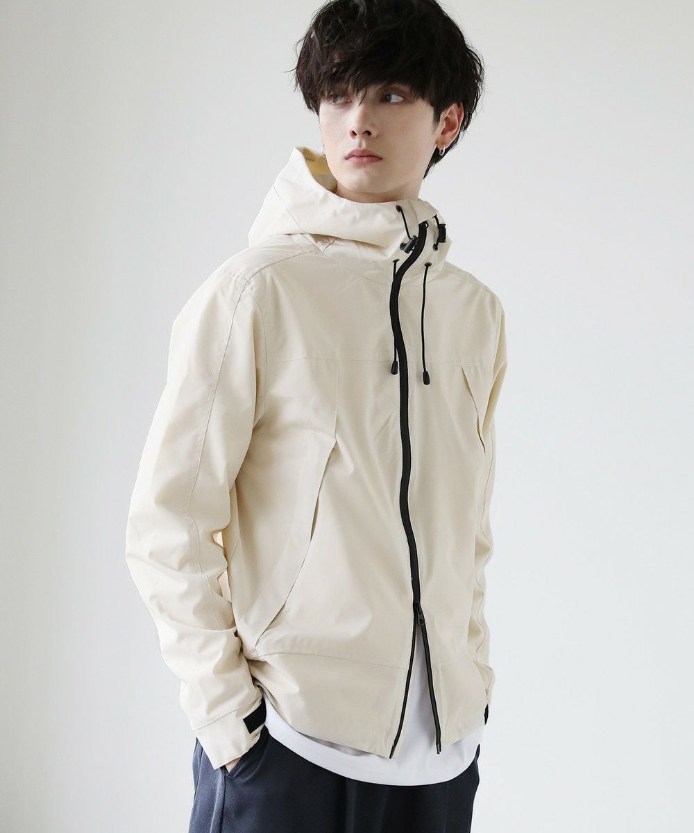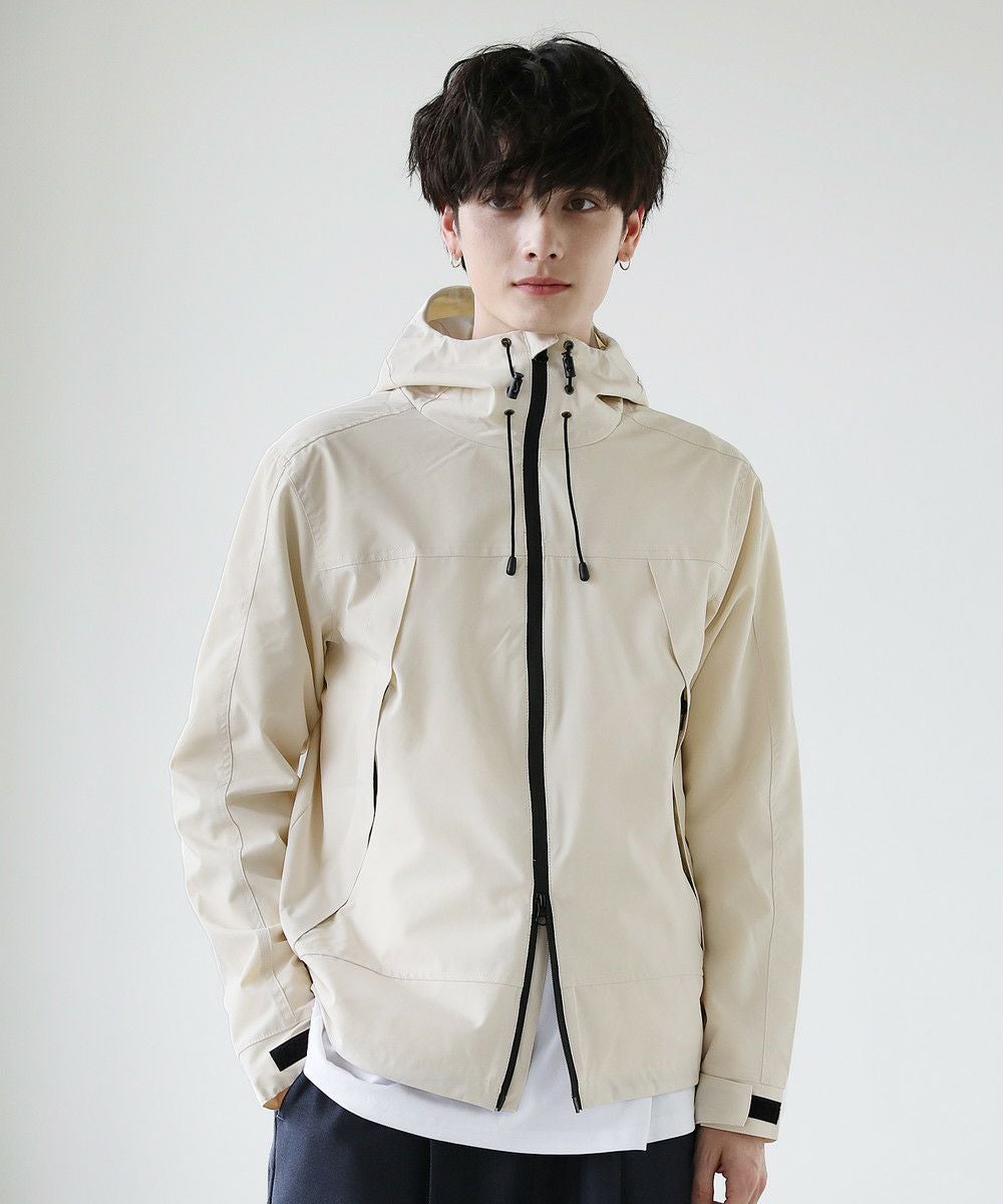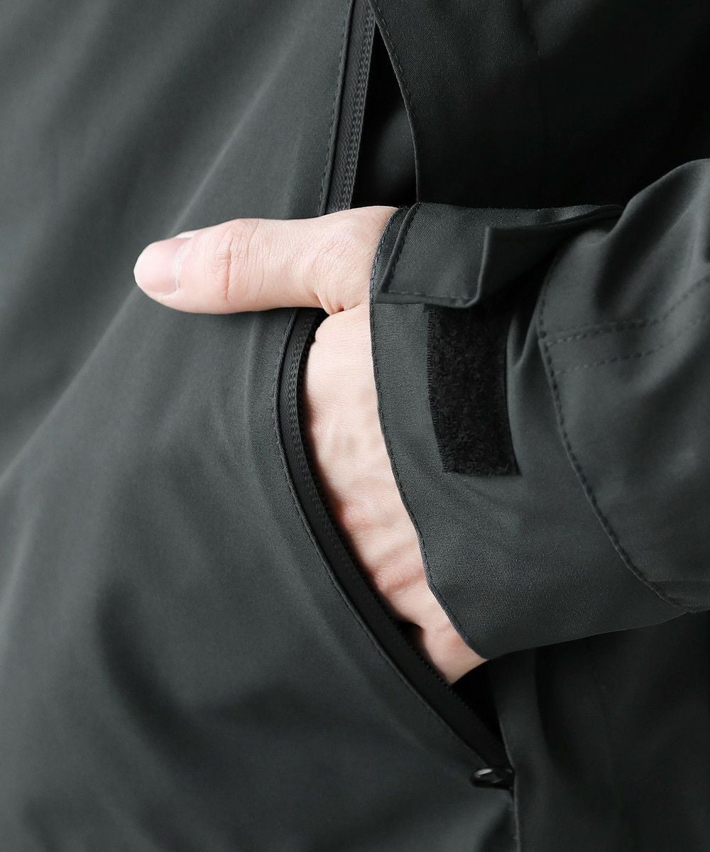 マウンテンパーカーの機能面は残しつつアウトドアなテイストをマイルドにすることで、日常的に着回しやすいアイテムです。 フロントのダブルジップは上下どちらからも開く仕様で、通常のファスナーではできない、下部分だけを開ける着方も可能に。より自由な着こなしがお楽しみいただけます。アウトドアはもちろん、タウンユースでもスタイリッシュに着こなせるオシャレで機能性抜群の一着です。