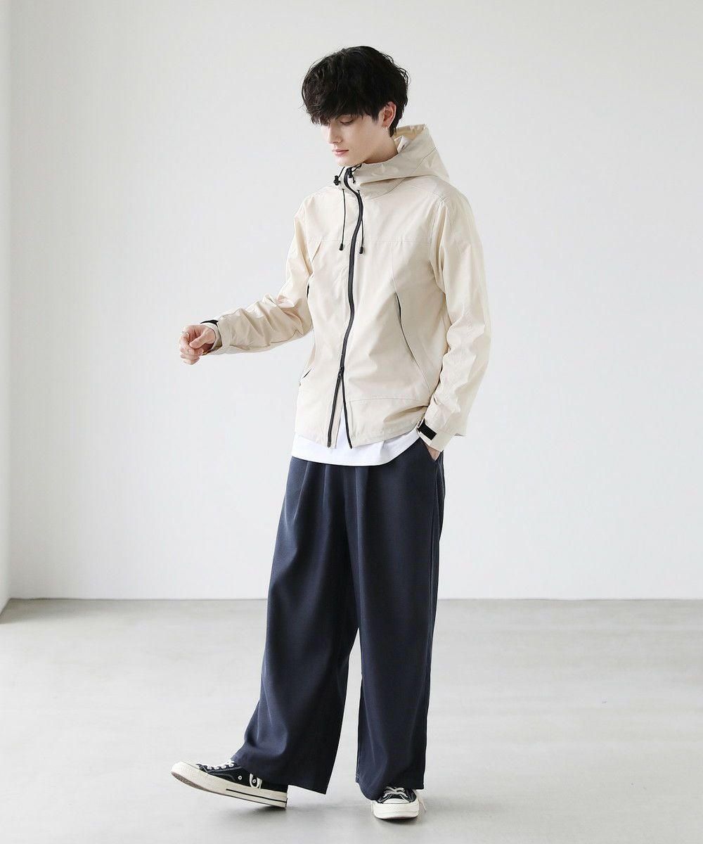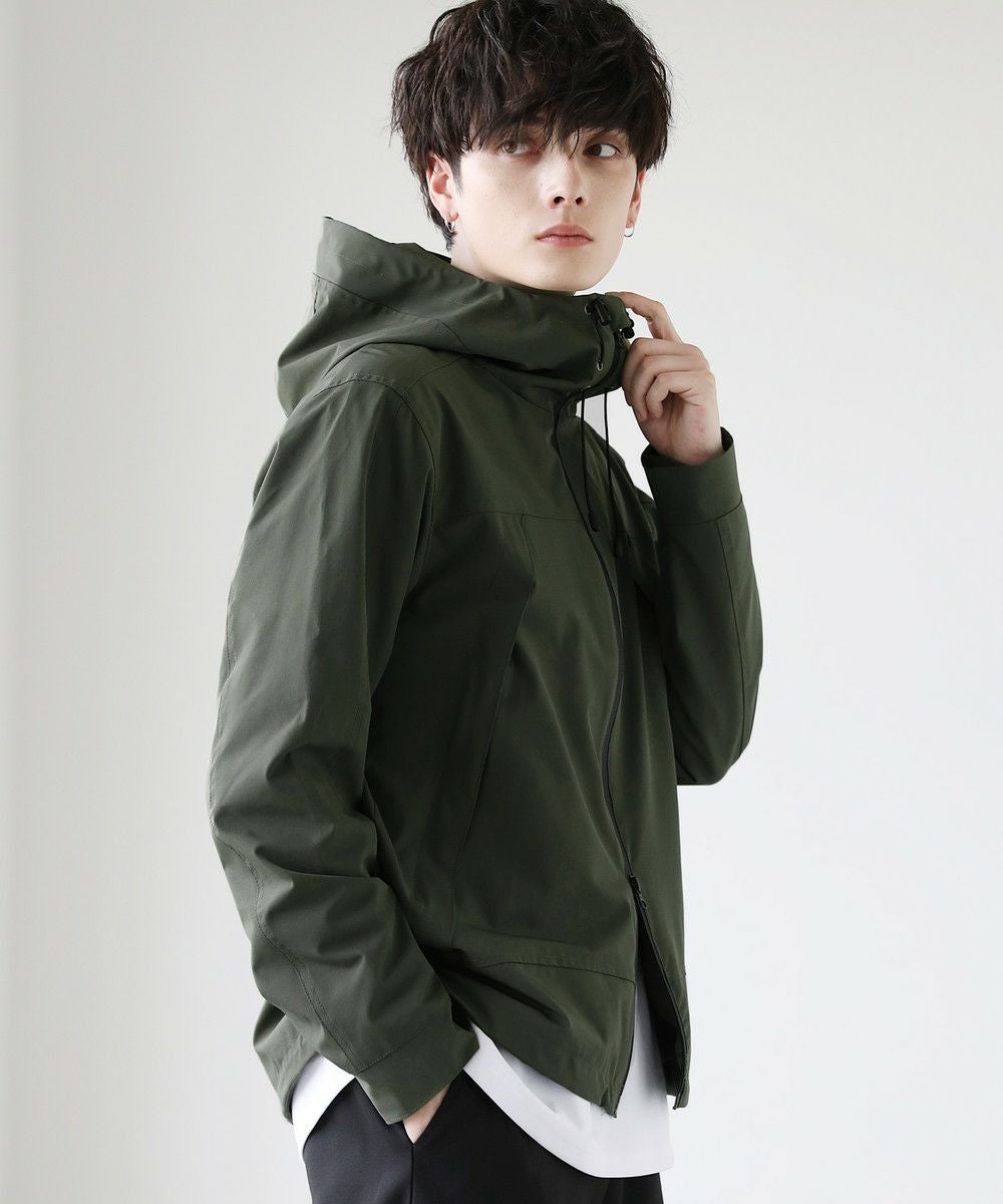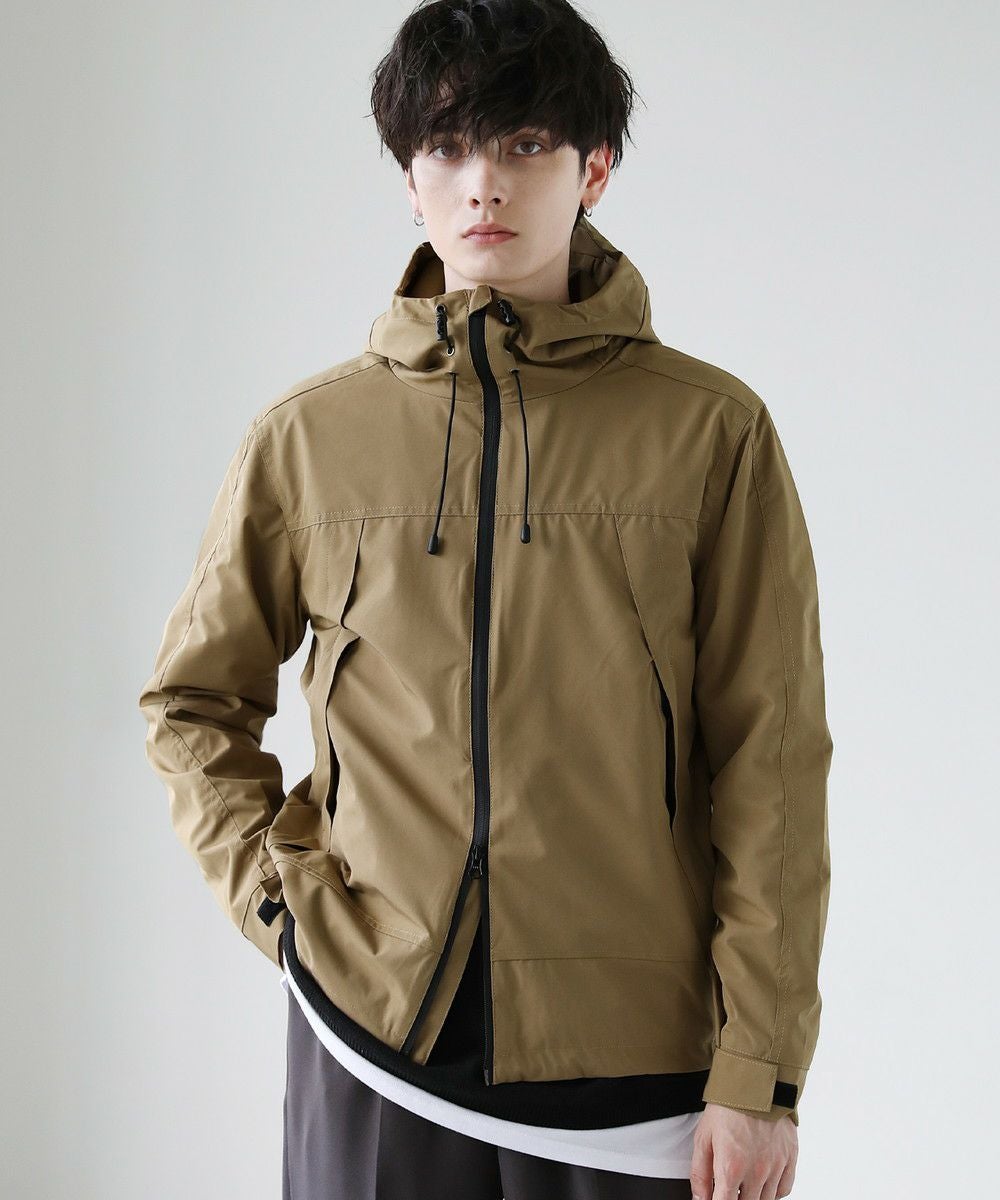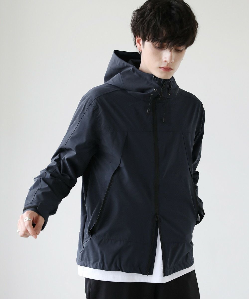マウンテンパーカーの機能面は残しつつアウトドアなテイストをマイルドにすることで、日常的に着回しやすいアイテムです。 フロントのダブルジップは上下どちらからも開く仕様で、通常のファスナーではできない、下部分だけを開ける着方も可能に。より自由な着こなしがお楽しみいただけます。アウトドアはもちろん、タウンユースでもスタイリッシュに着こなせるオシャレで機能性抜群の一着です。