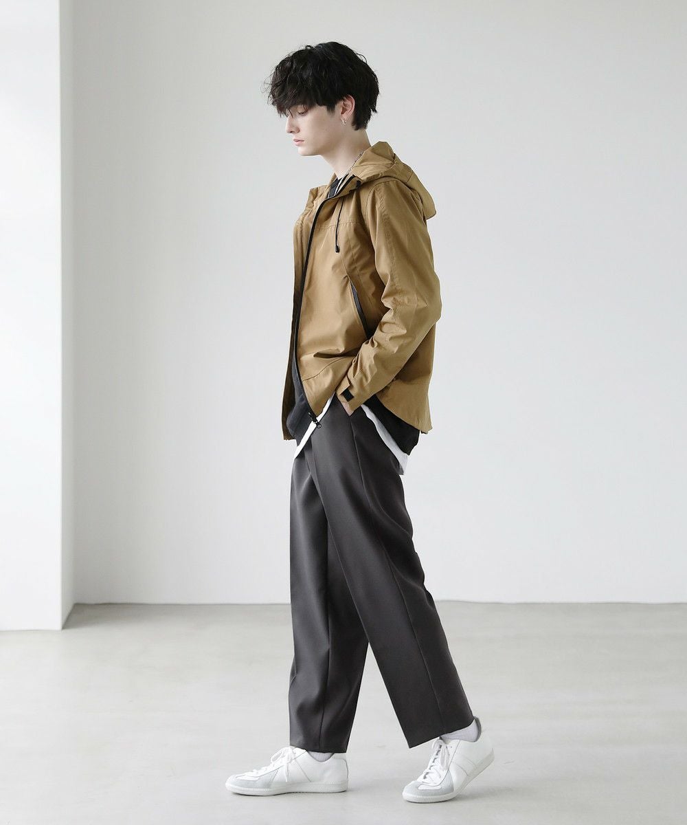 アウトドアからタウンユースまで幅広いシーンで活躍するマウンテンパーカー。軽量かつ薄手の素材感はさっと羽織るライトアウターとして最適です。今回は、より街で着やすいデザインにするために細身のシルエットで設計してディテールをなるべくシンプルにまとめています。機能性とファッション性を兼ね備えた一着です。