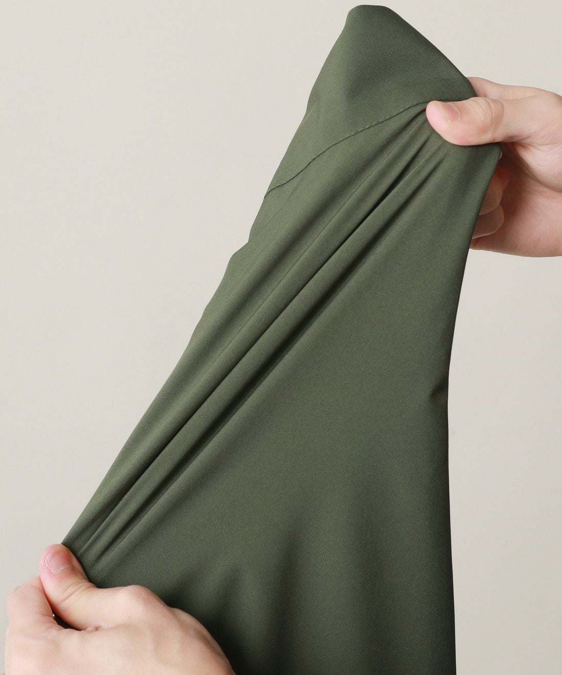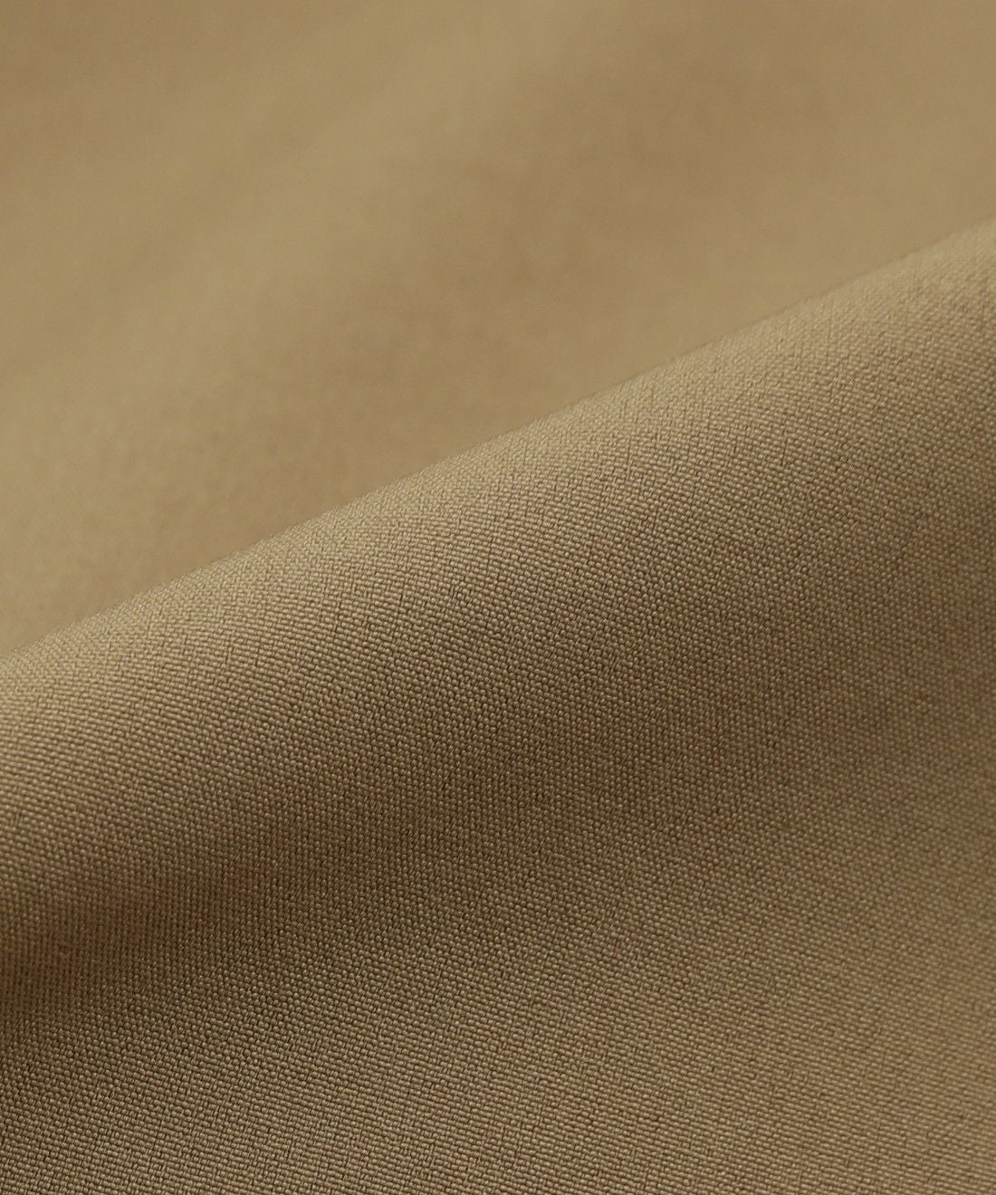 生地には撥水加工を施しました。水が弾かれて下に滑り落ちるため、中まで浸透しにくくなります。さらに4wayストレッチ生地が上下左右に自在に伸縮し、アクティブな動作もスムーズに行えます。