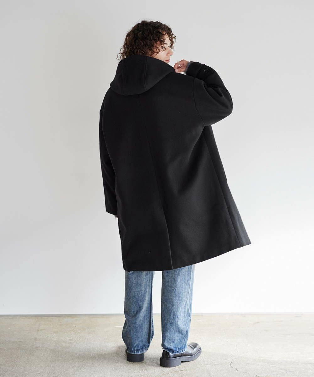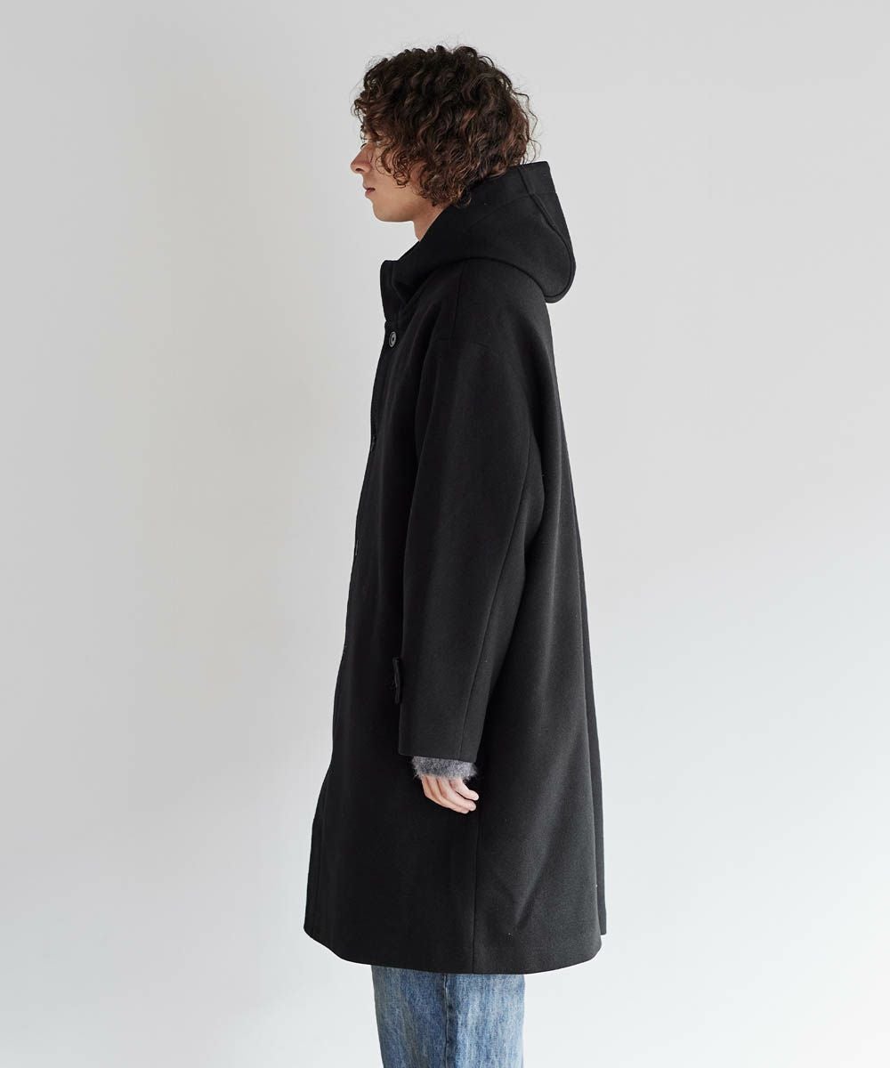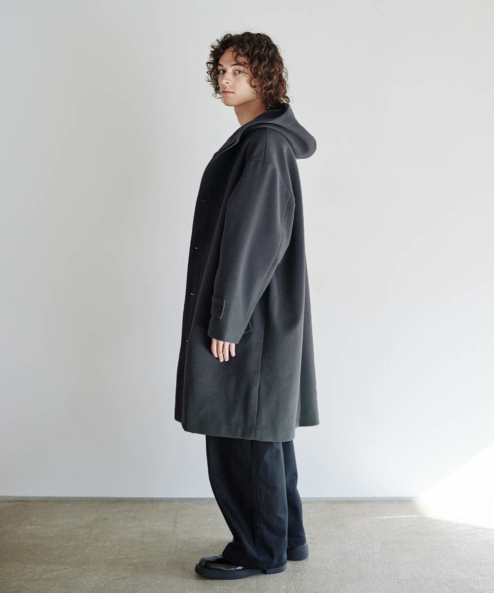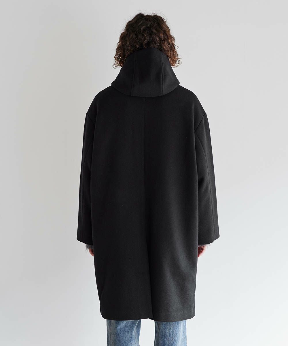 メルトン生地で仕立てた、キレイめカジュアルに着回しが楽しめるフーデッドコート。