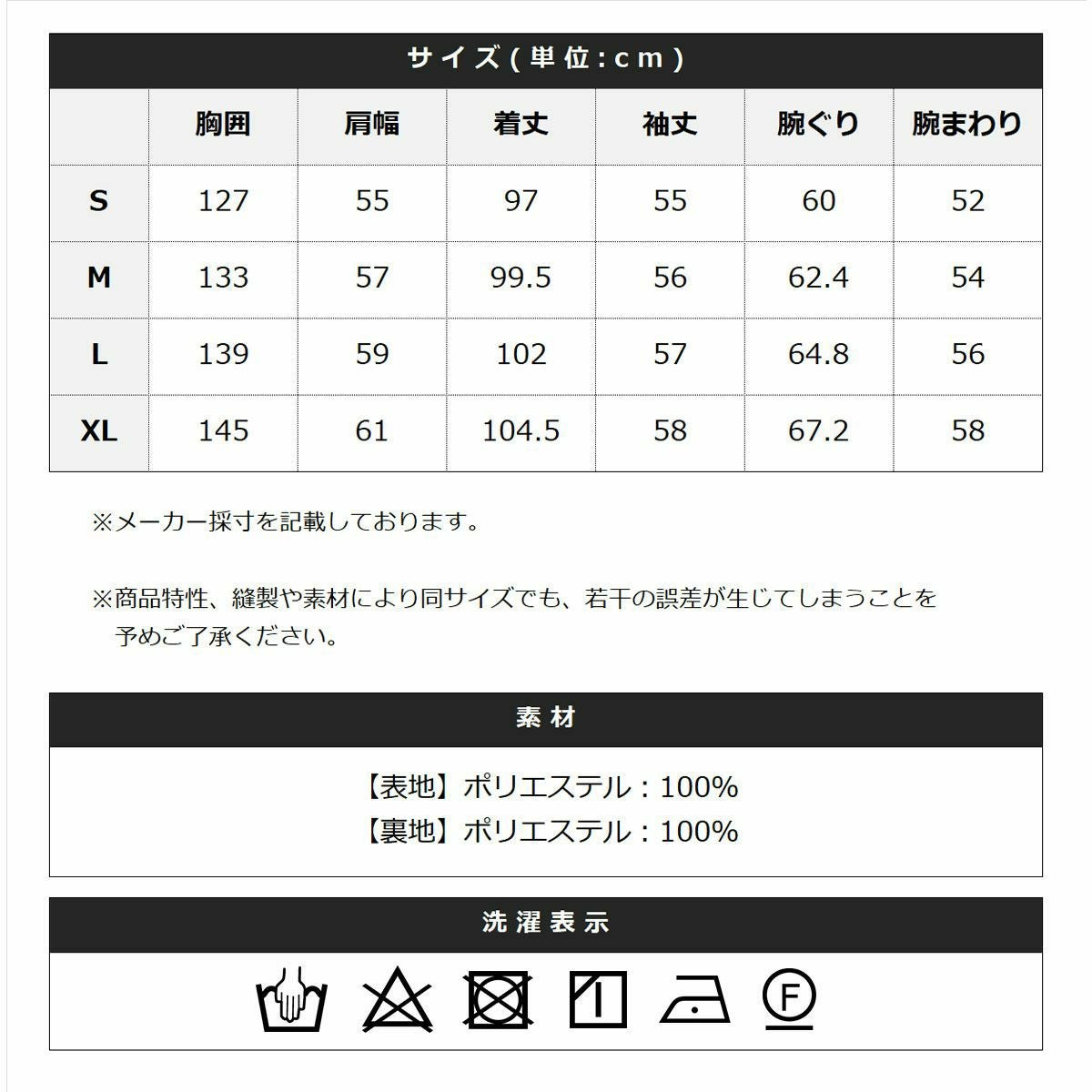 【表地・裏地】ポリエステル:100%