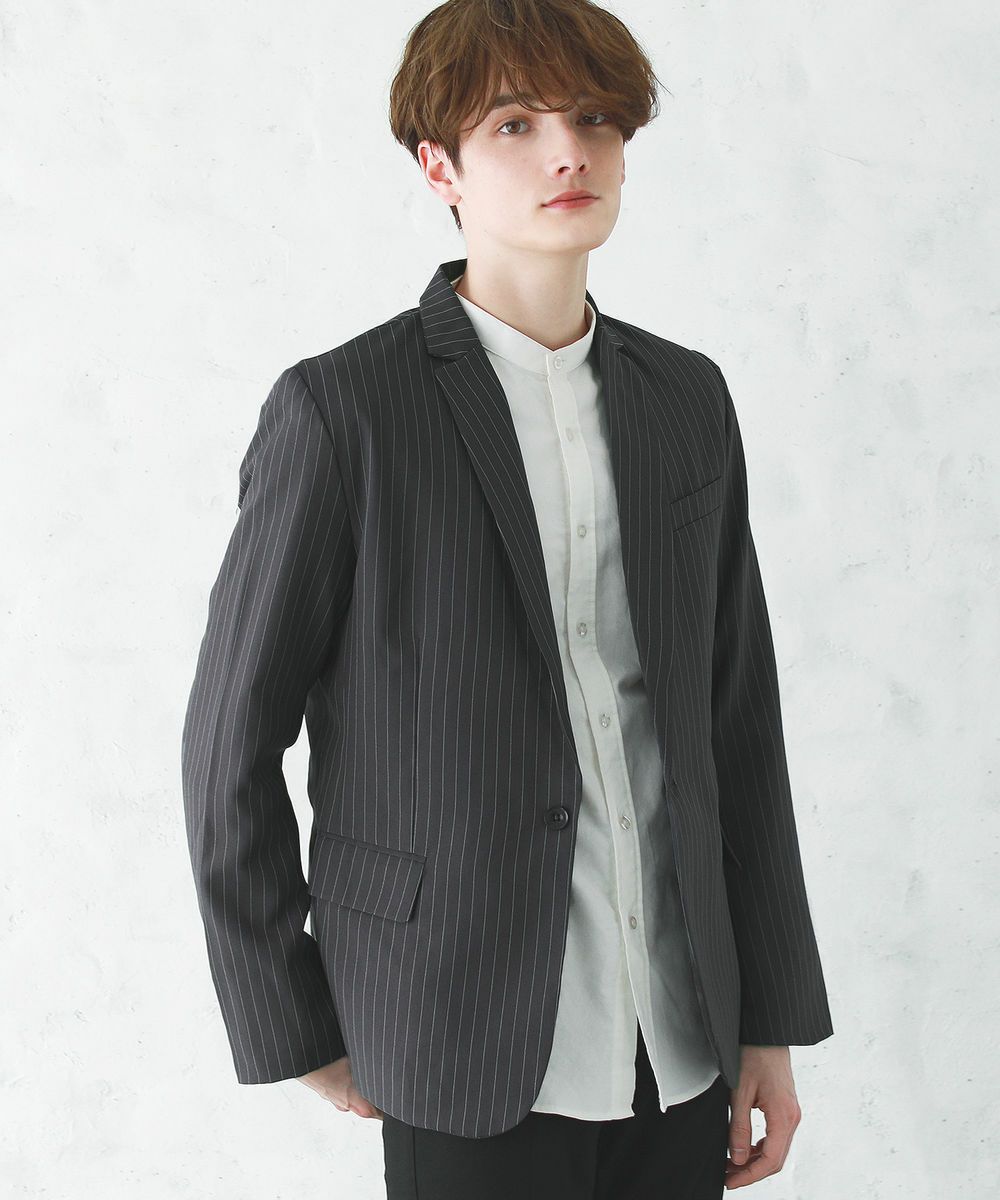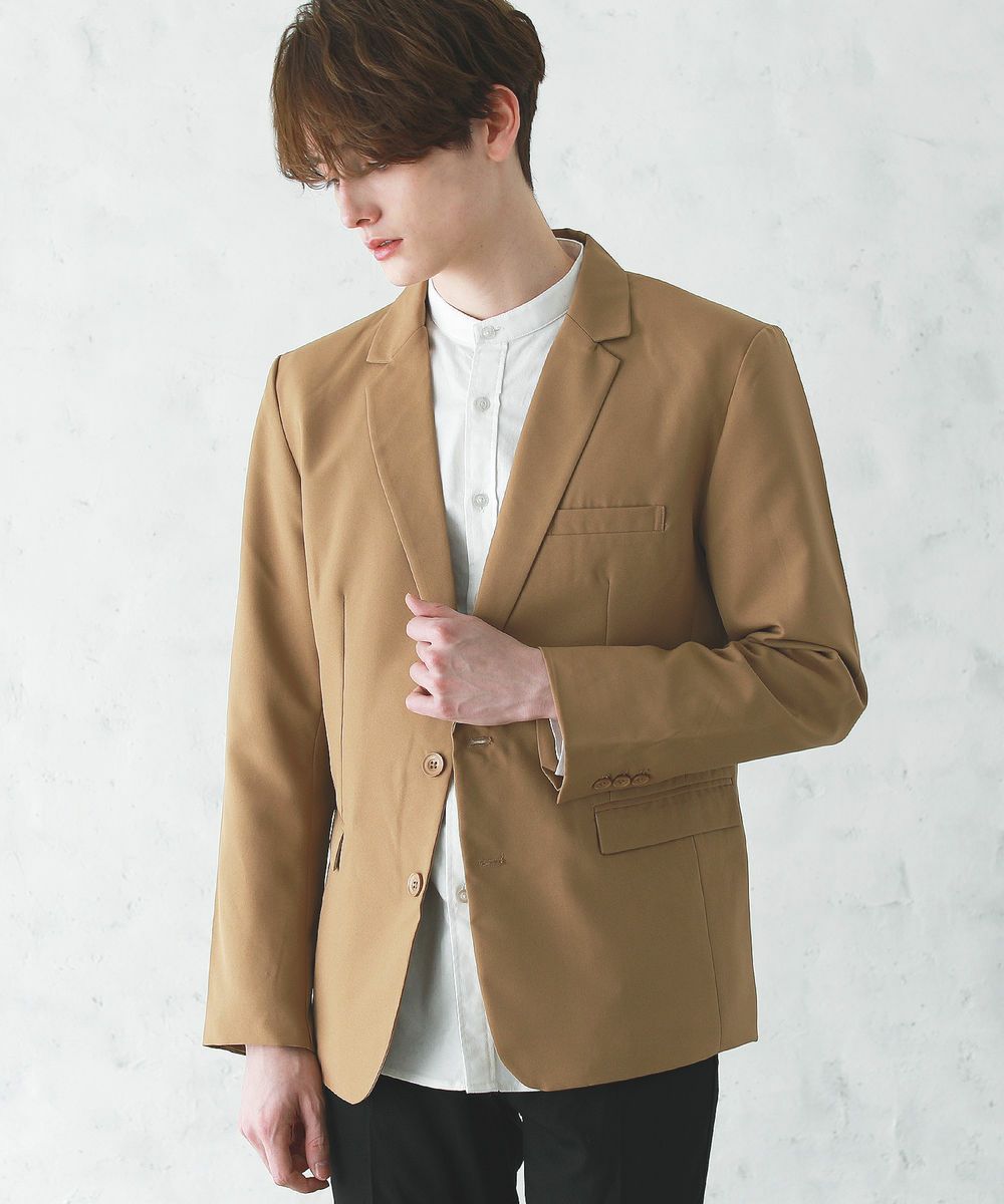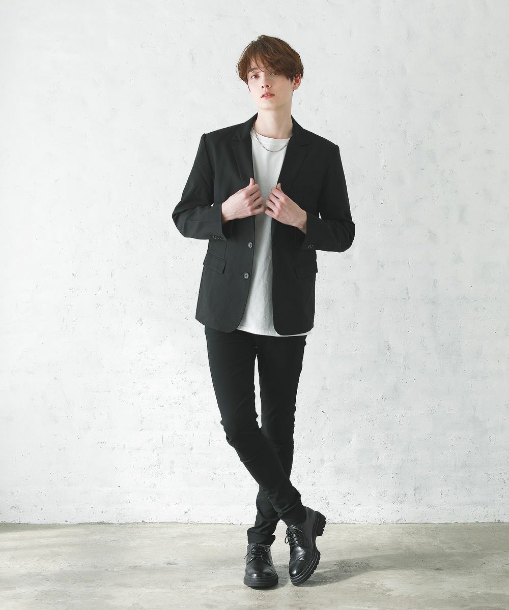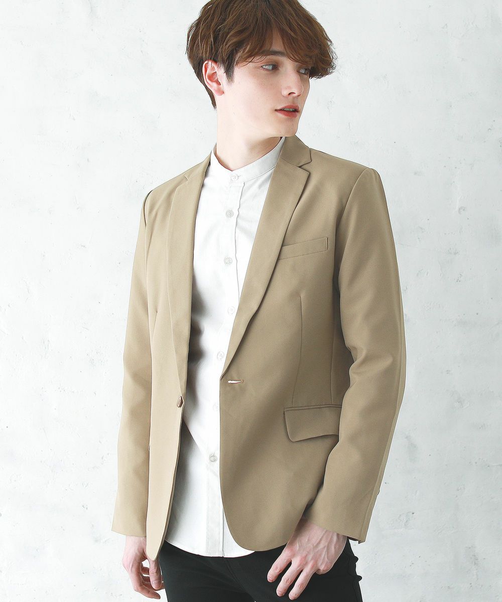 梨地ストレッチボタンレスジャケット