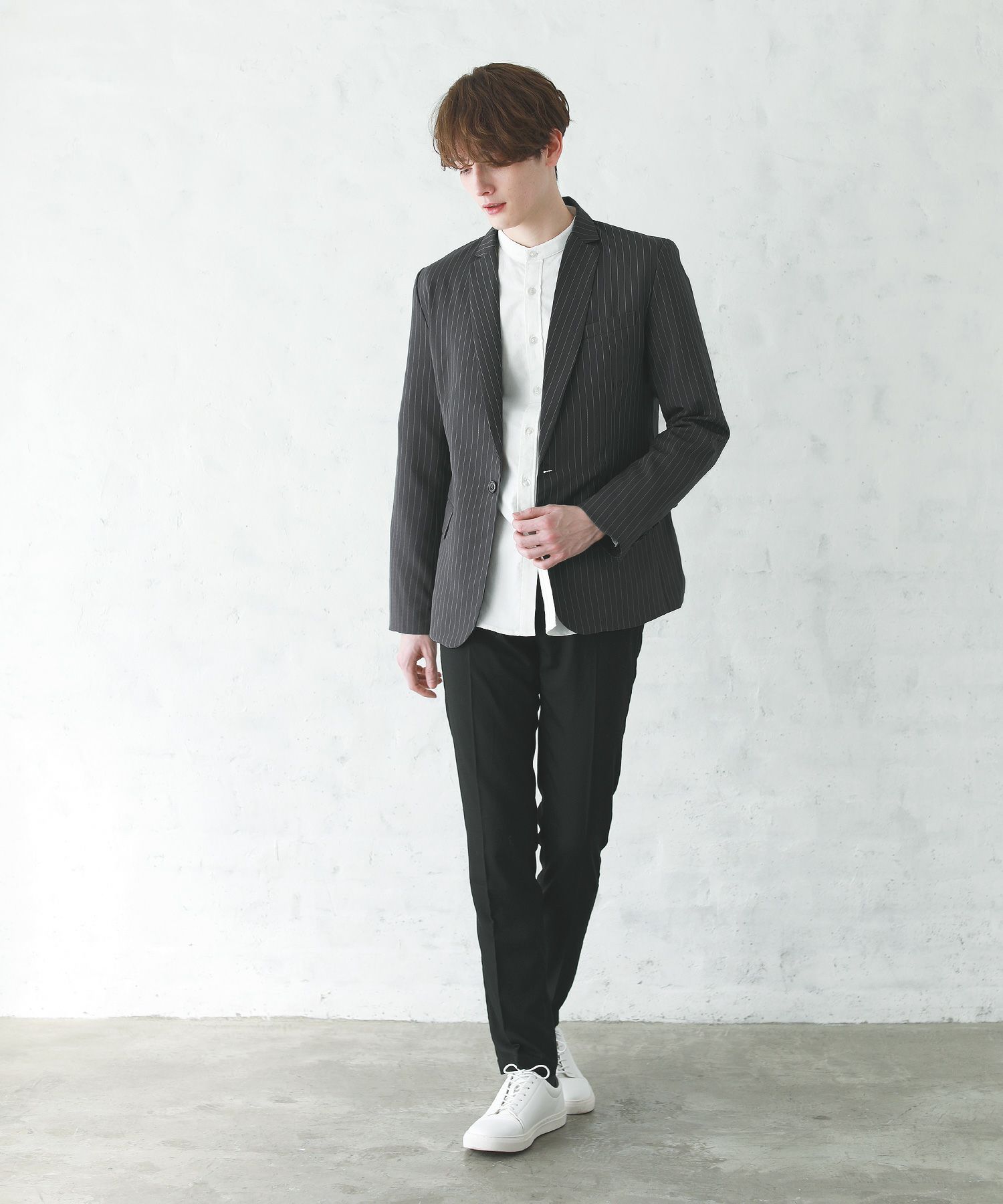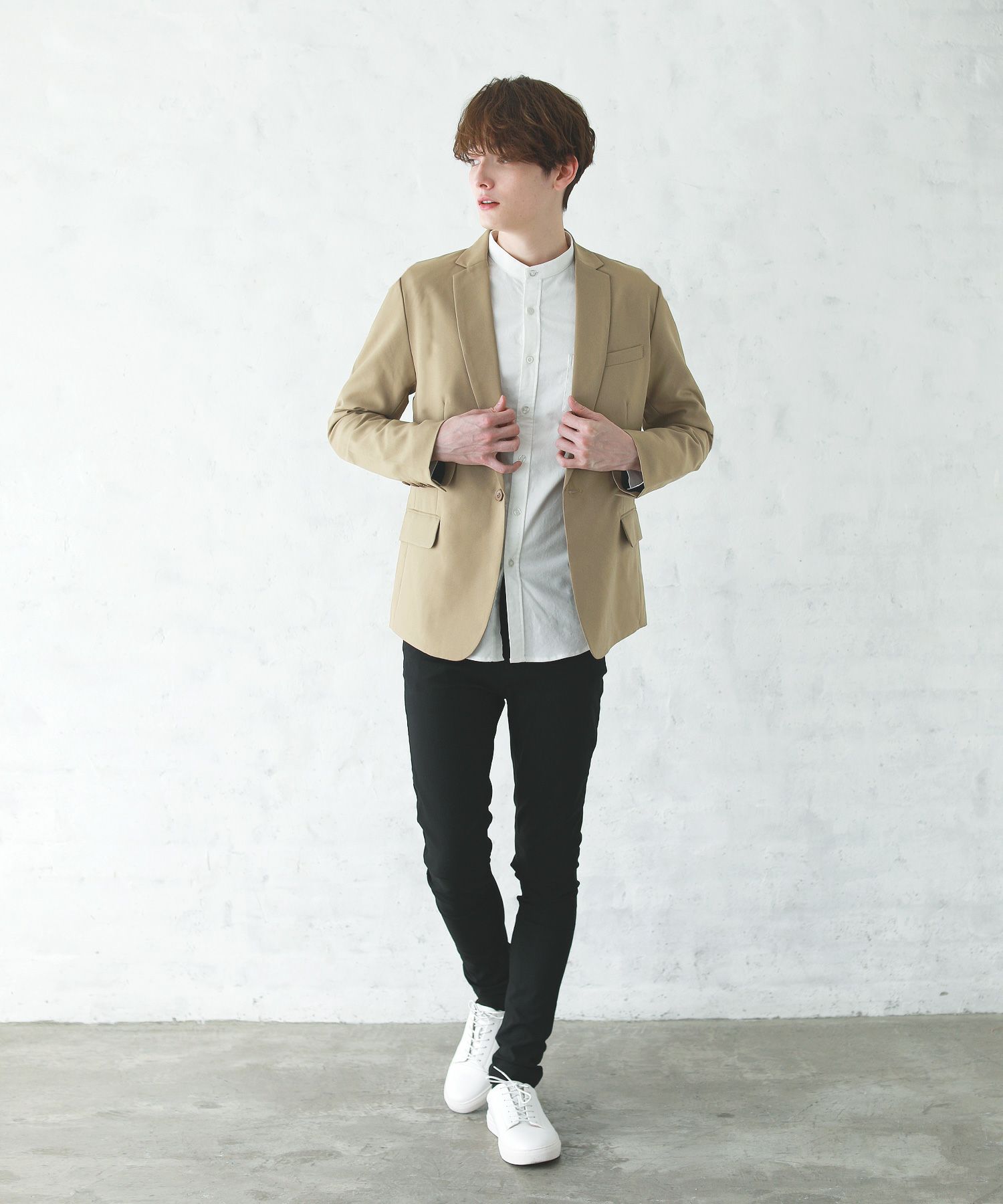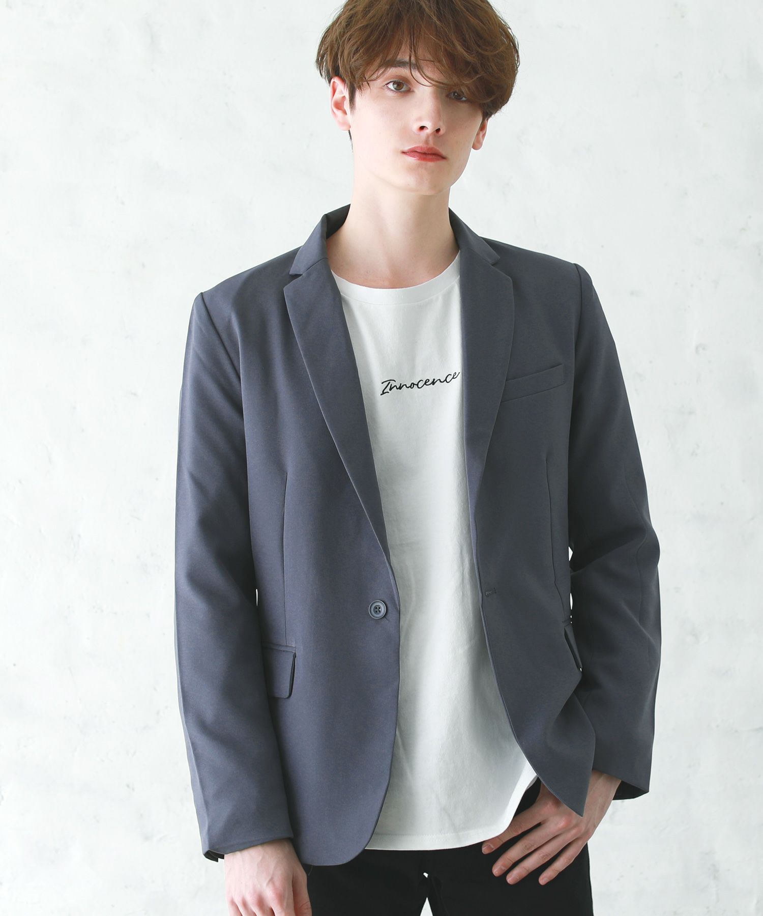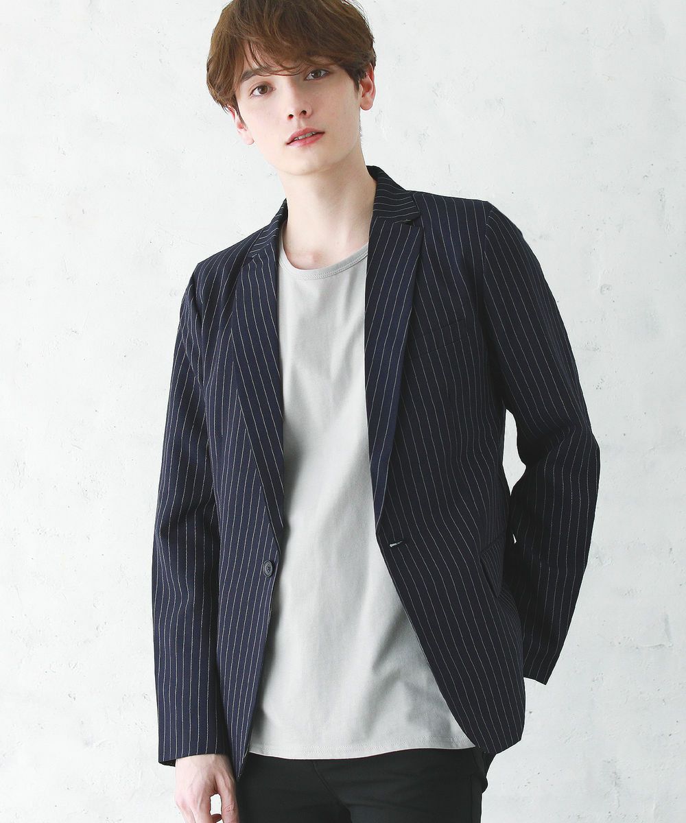 梨地ストレッチボタンレスジャケット