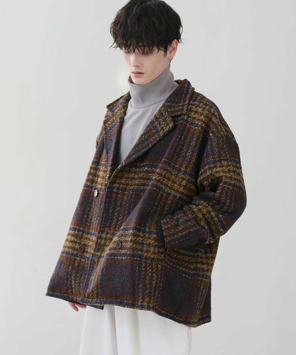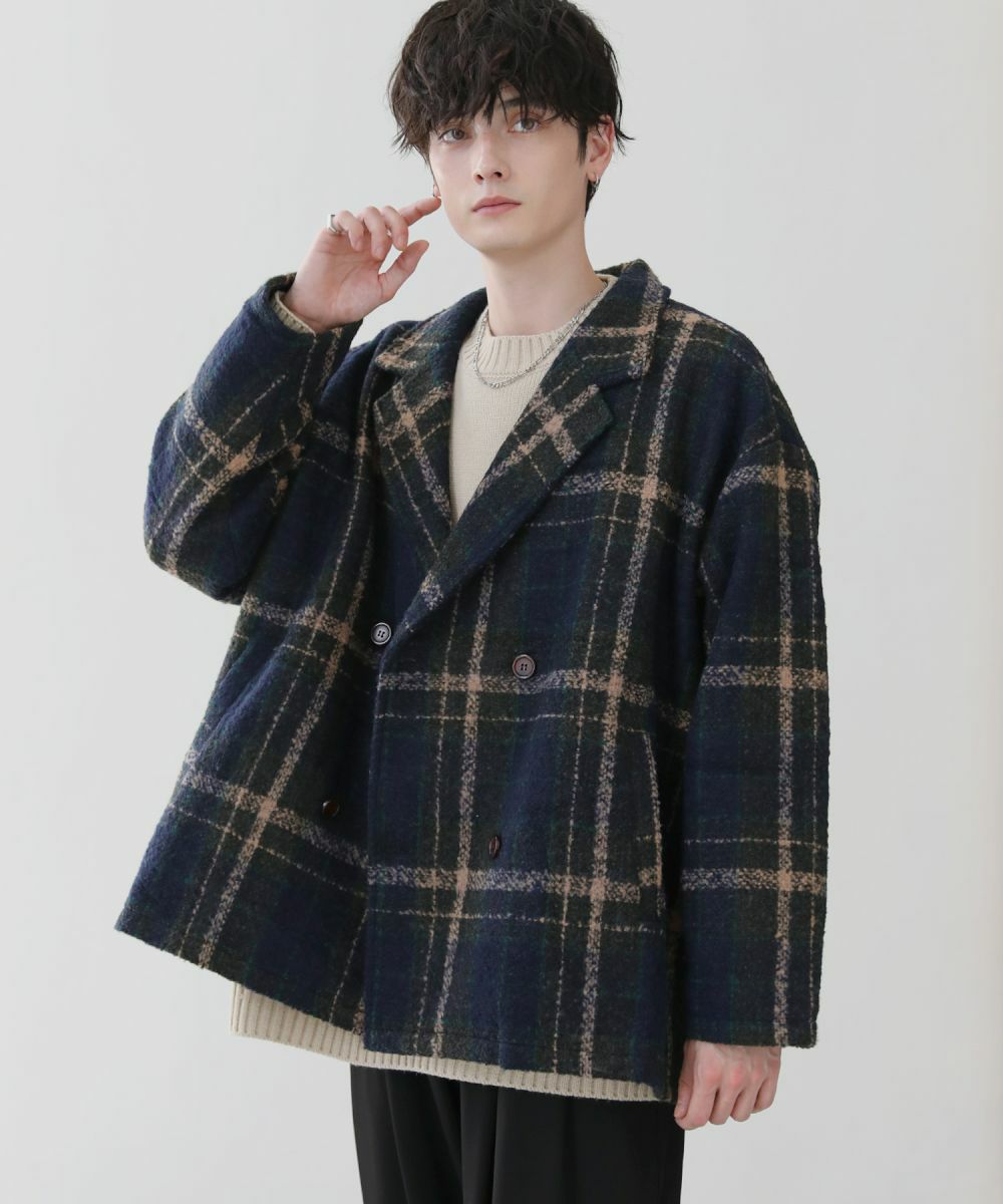 ショート丈ブークレチェックルーズPコート