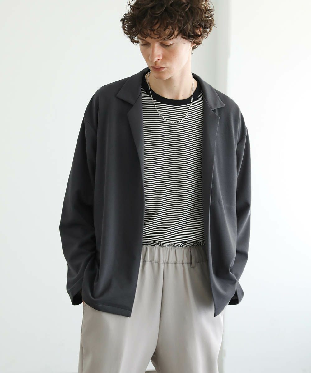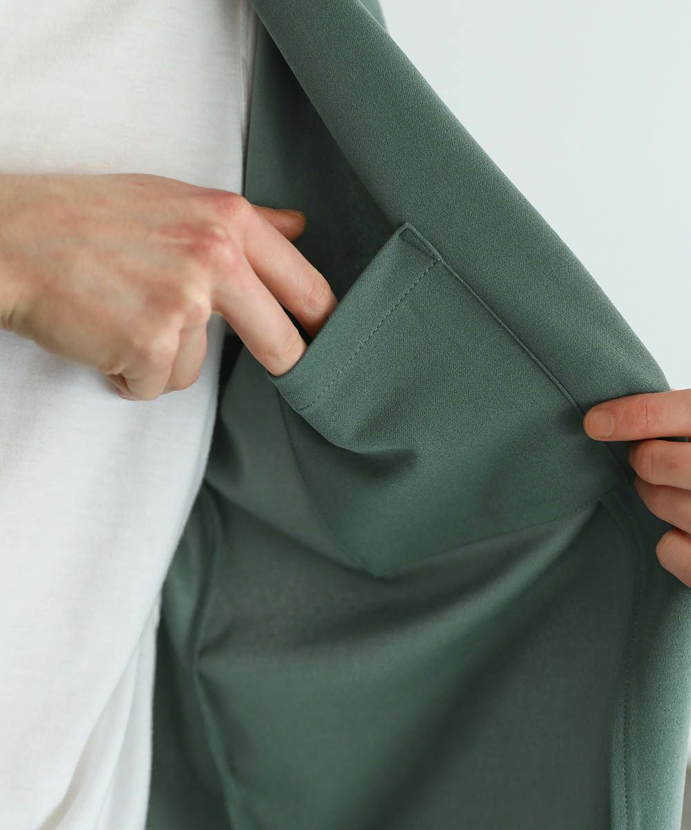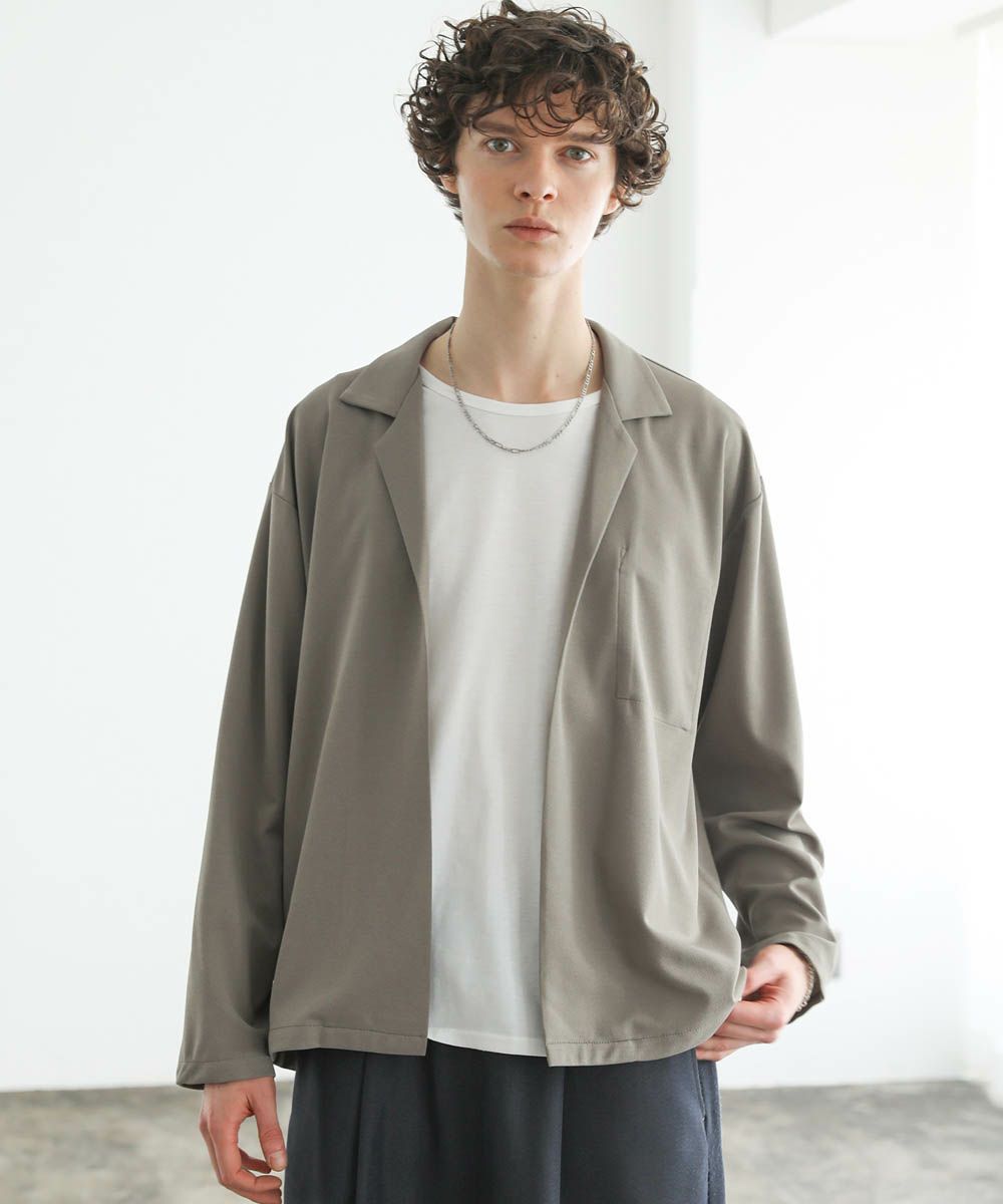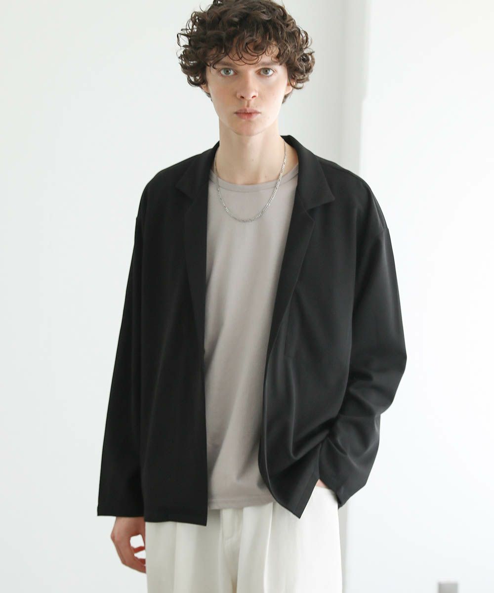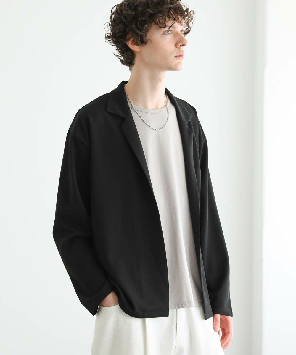 ボタンレスのデザインが大人っぽく抜け感のあるテーラードジャケット。落ち着いた風合いの梨地生地はストレッチに性に優れており、カーディガンのようにさらっと羽織れる快適な着心地。ドレープ感のあるマットな素材が着こなしを上品にまとめてくれます。裏地のない軽い着心地と程よいオーバーサイズ、ドロップショルダーデザインがリラックス感のある1枚。内ポケット付きなので、小物の収納も可能です。落ち着いたカラー展開で大人のキレイめスタイルにぴったりのアイテムです。