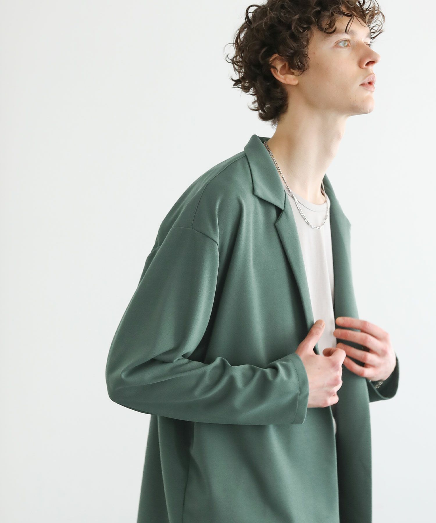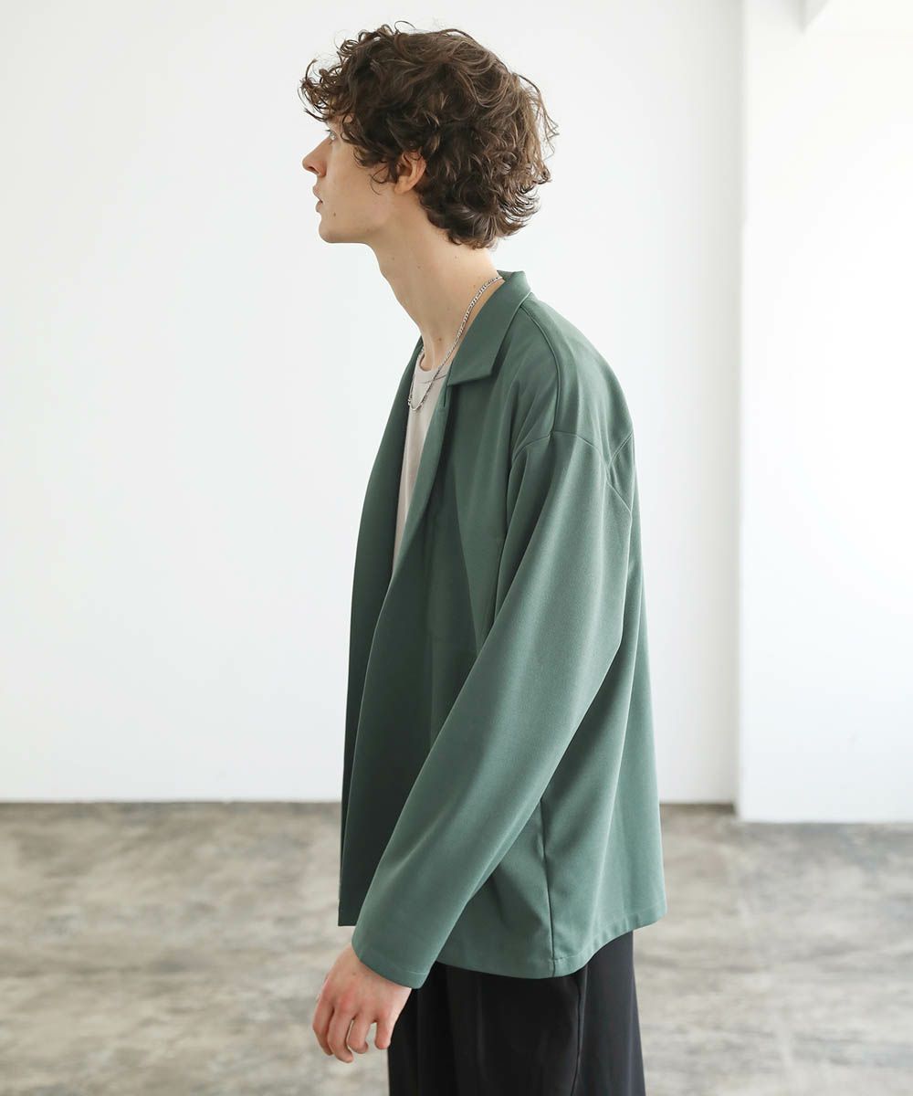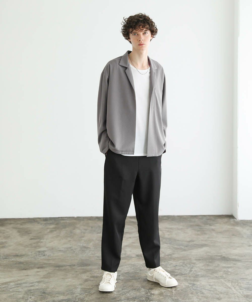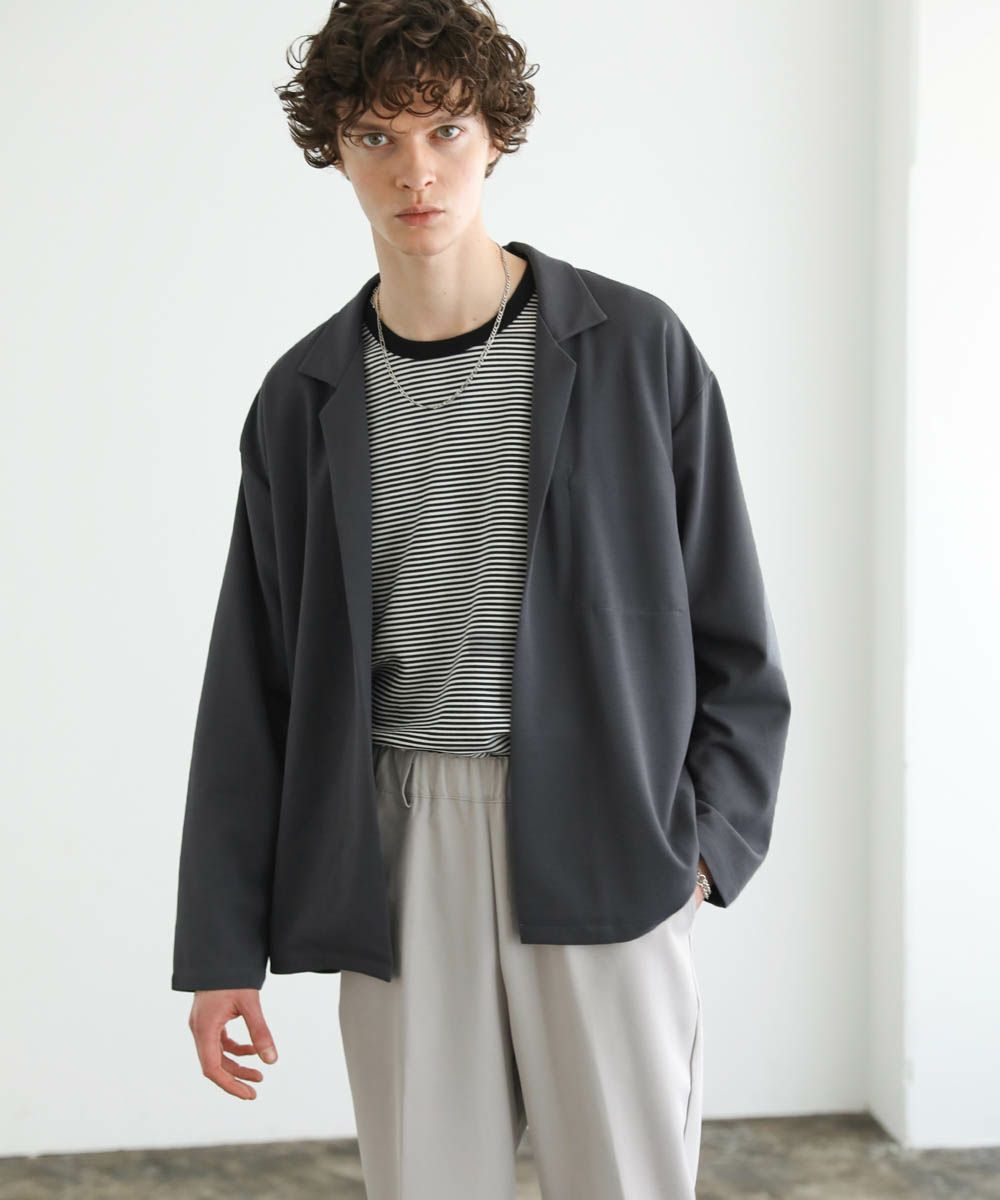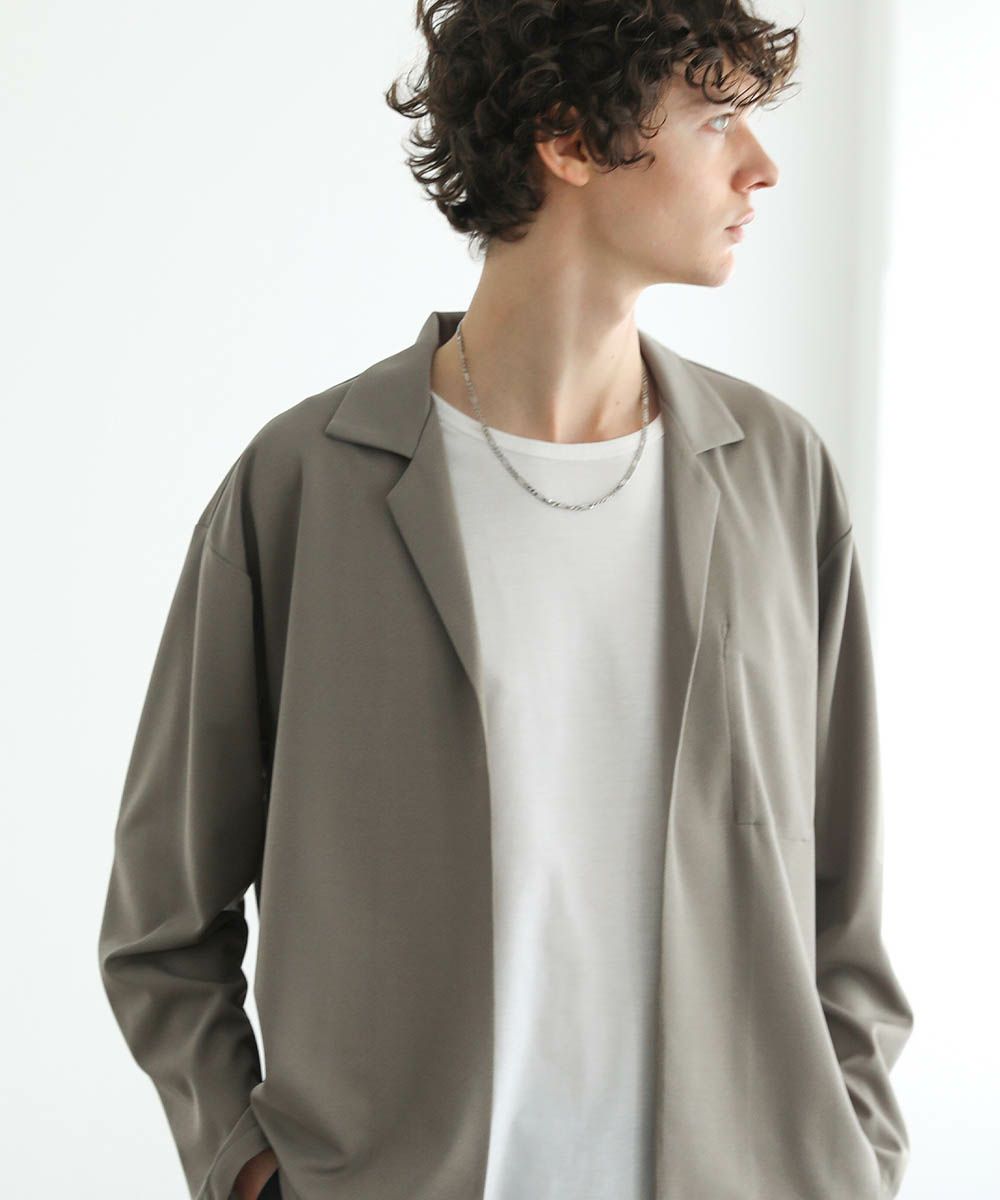 ボタンレスのデザインが大人っぽく抜け感のあるテーラードジャケット。落ち着いた風合いの梨地生地はストレッチに性に優れており、カーディガンのようにさらっと羽織れる快適な着心地。ドレープ感のあるマットな素材が着こなしを上品にまとめてくれます。裏地のない軽い着心地と程よいオーバーサイズ、ドロップショルダーデザインがリラックス感のある1枚。内ポケット付きなので、小物の収納も可能です。落ち着いたカラー展開で大人のキレイめスタイルにぴったりのアイテムです。