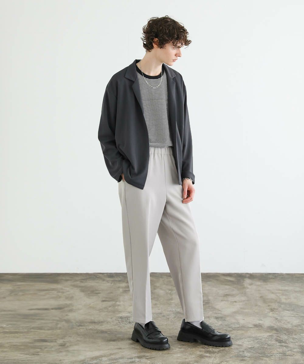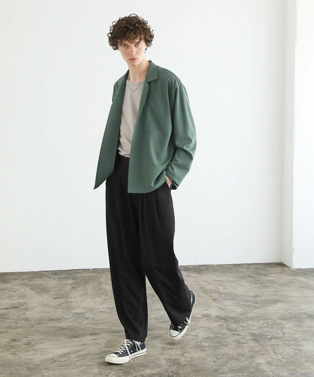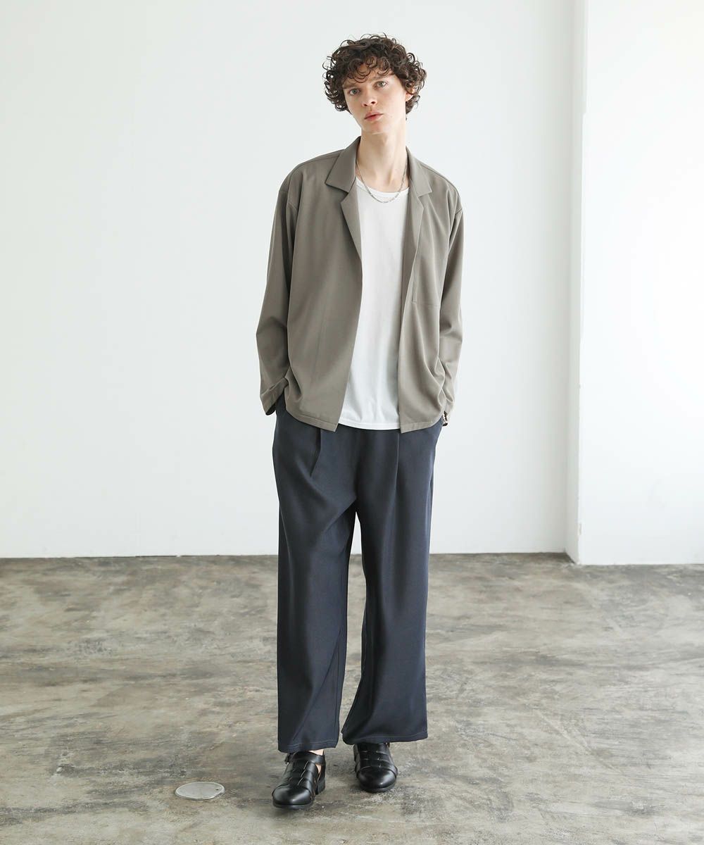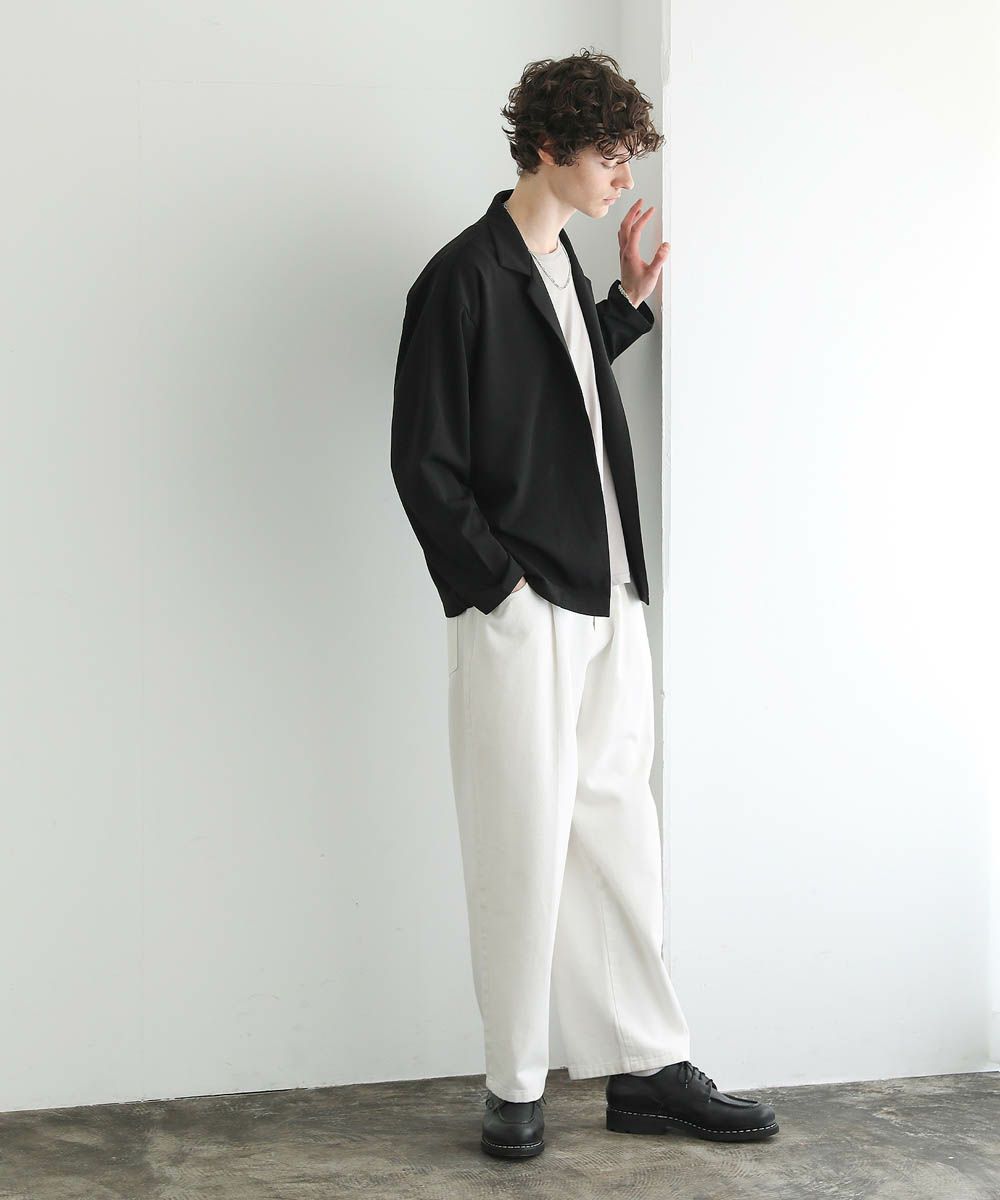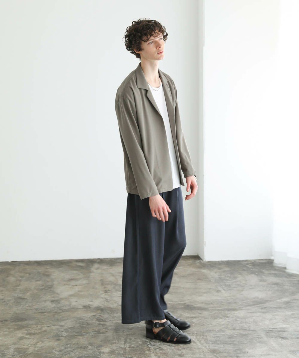 ワイドスラックスやバギーパンツ、デニムパンツなど緩めのボトムと合わせたリラックス感のある着こなしがおすすめ。上品な生地感とボタンレスデザインで、カットソーの上にさっと羽織るだけで大人カジュアルなスタイルが完成します。