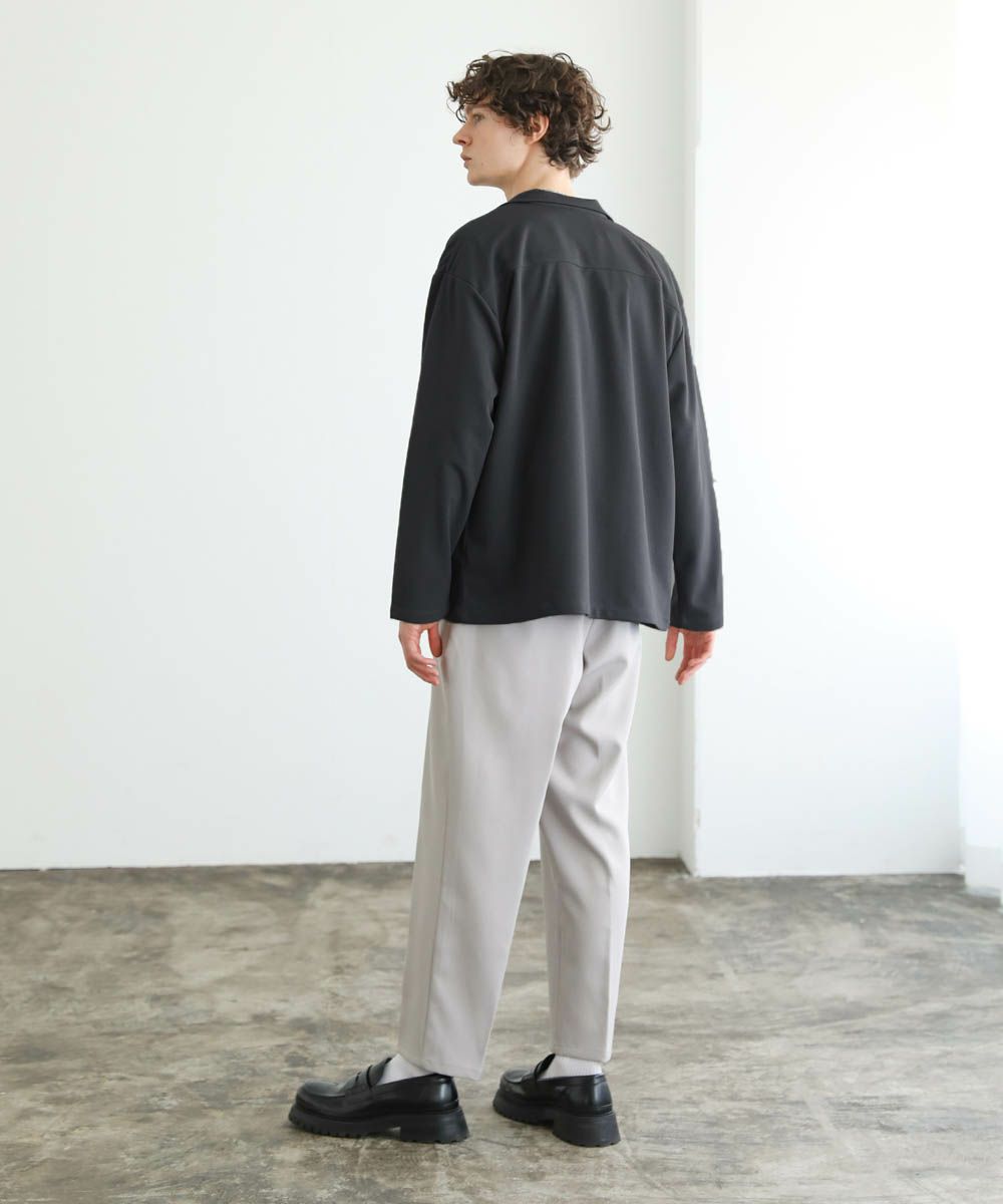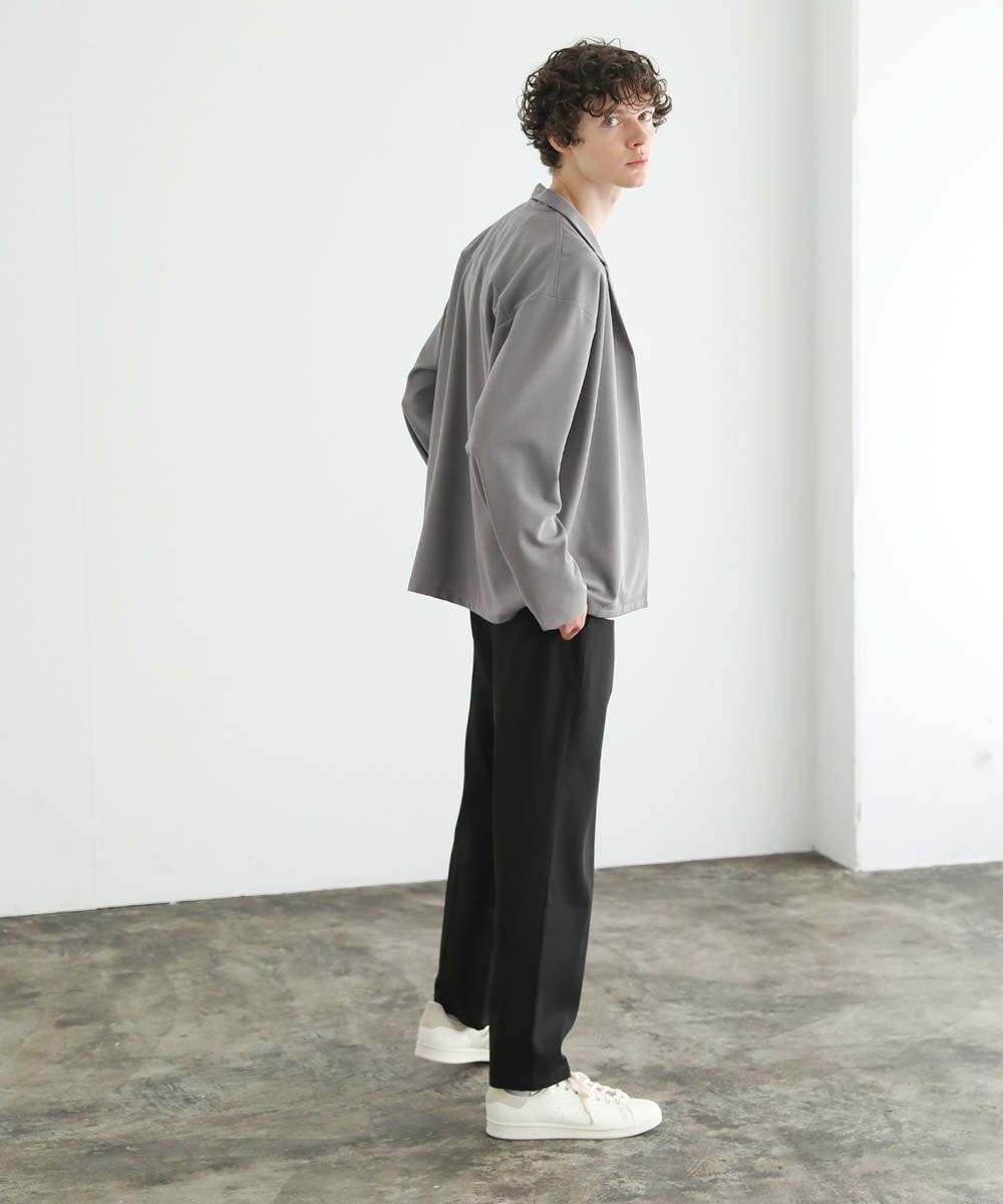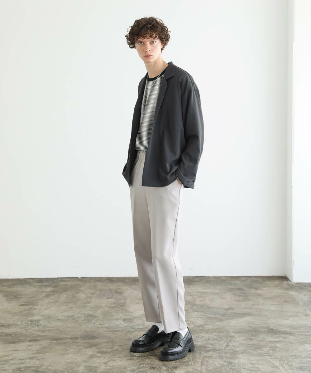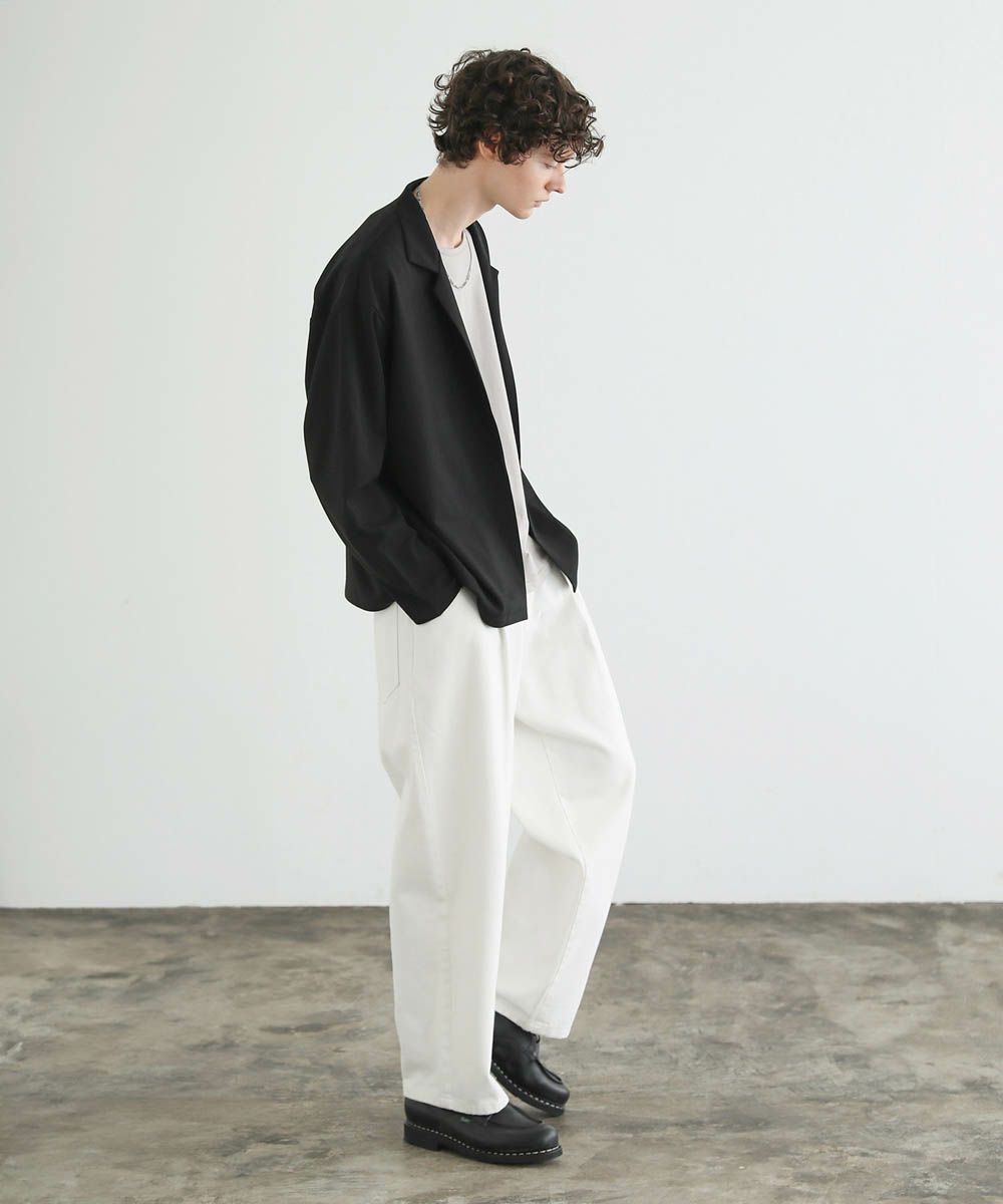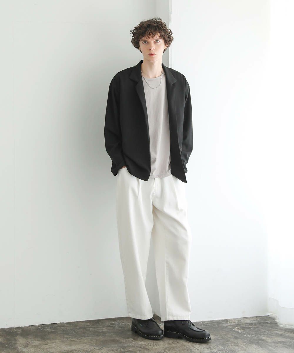 ワイドスラックスやバギーパンツ、デニムパンツなど緩めのボトムと合わせたリラックス感のある着こなしがおすすめ。上品な生地感とボタンレスデザインで、カットソーの上にさっと羽織るだけで大人カジュアルなスタイルが完成します。
