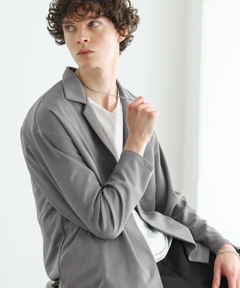 梨地ストレッチボタンレステーラードジャケット