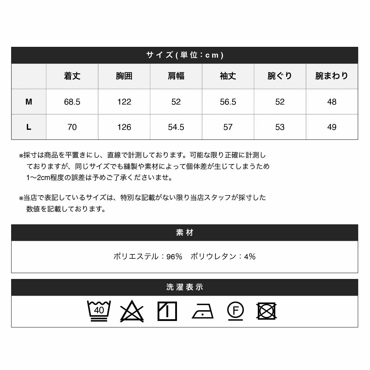※商品特性、縫製や素材により同サイズでも、若干の誤差が生じてしまうことを予めご了承ください。