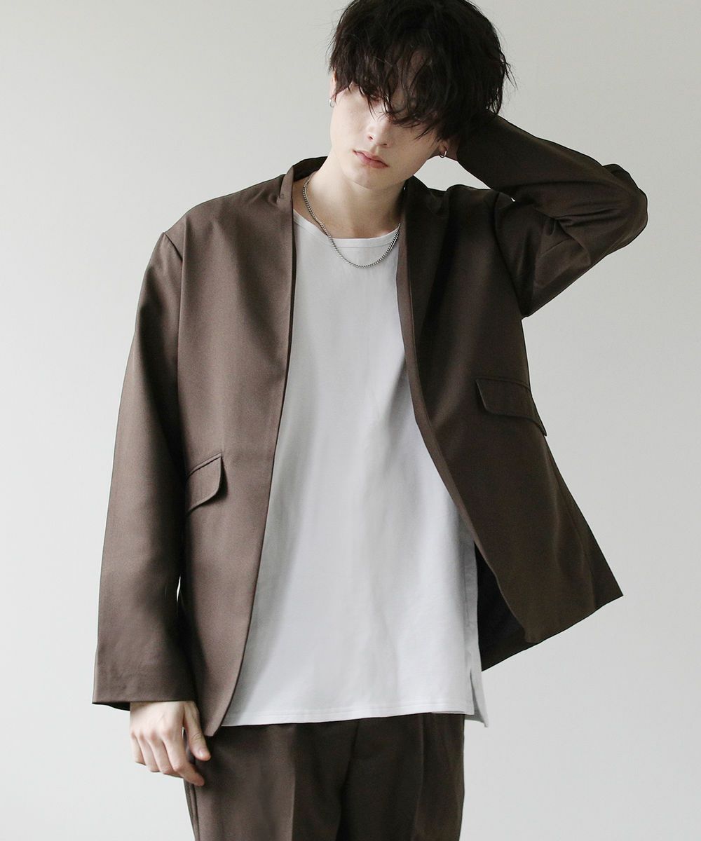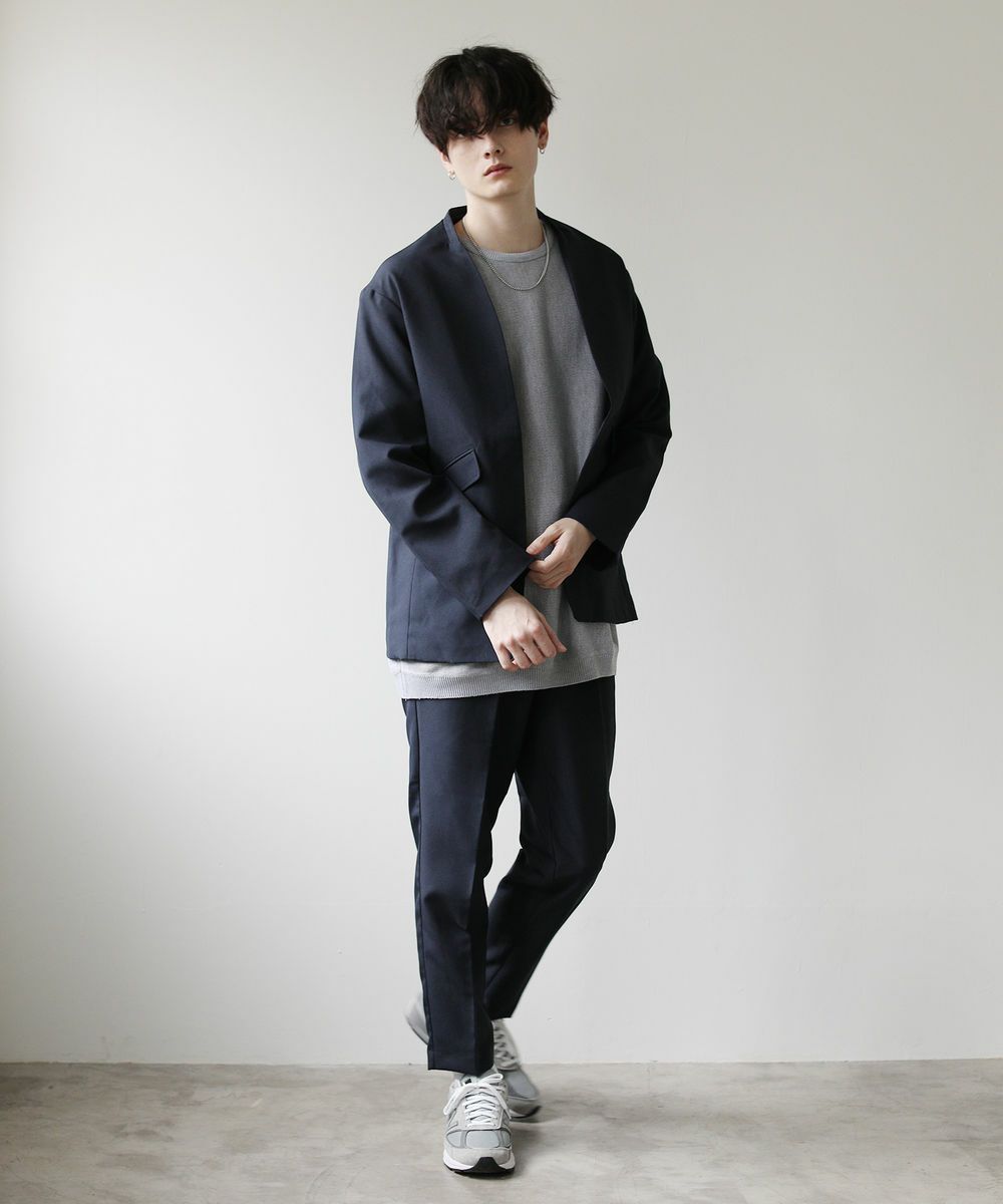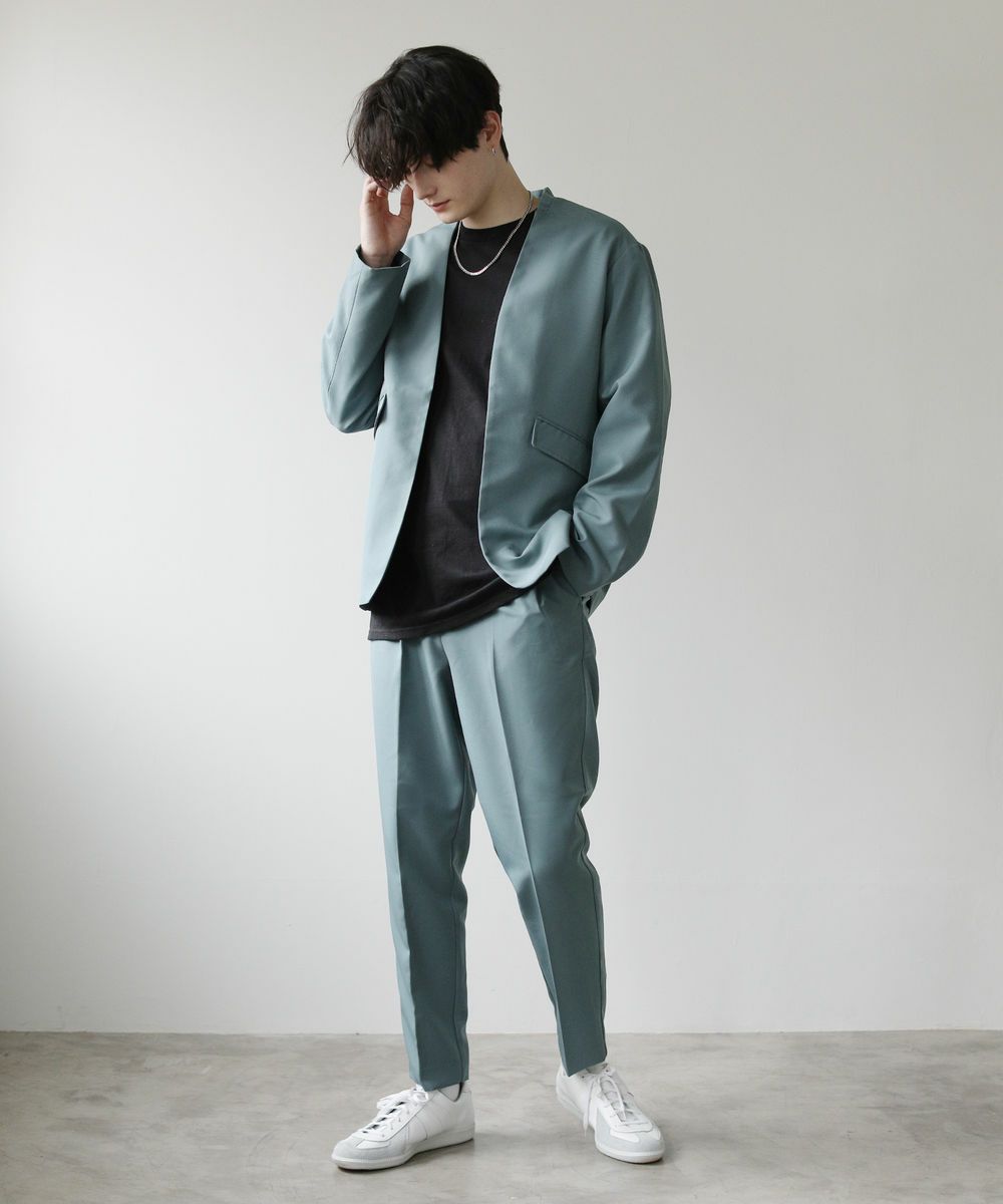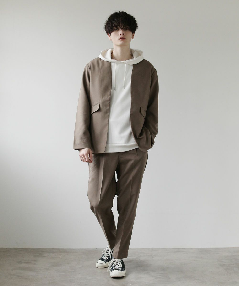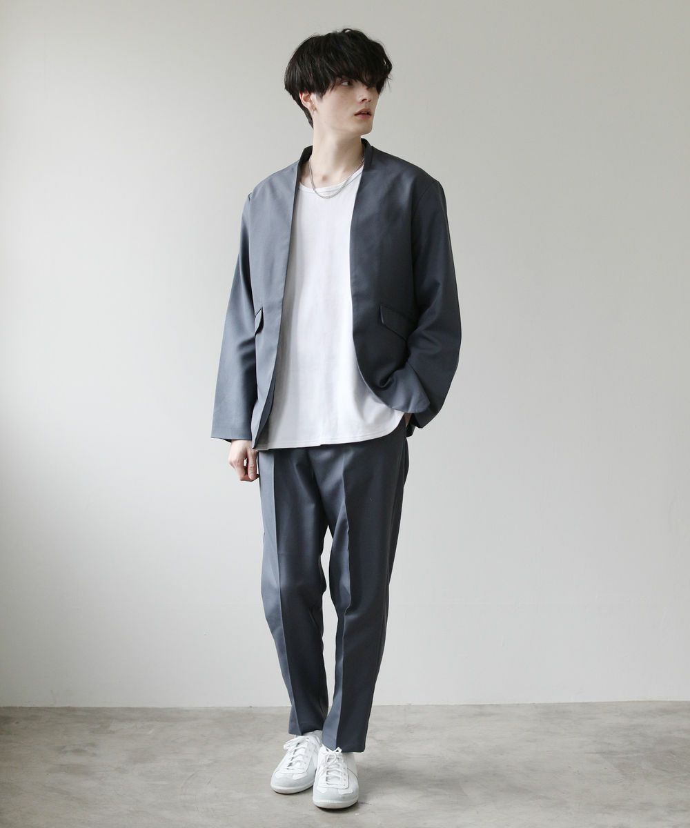 ポリトロ ノーカラージャケット&テーパードパンツ セットアップ