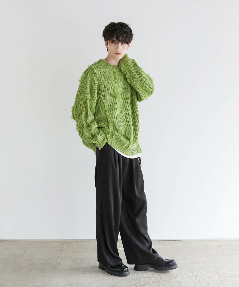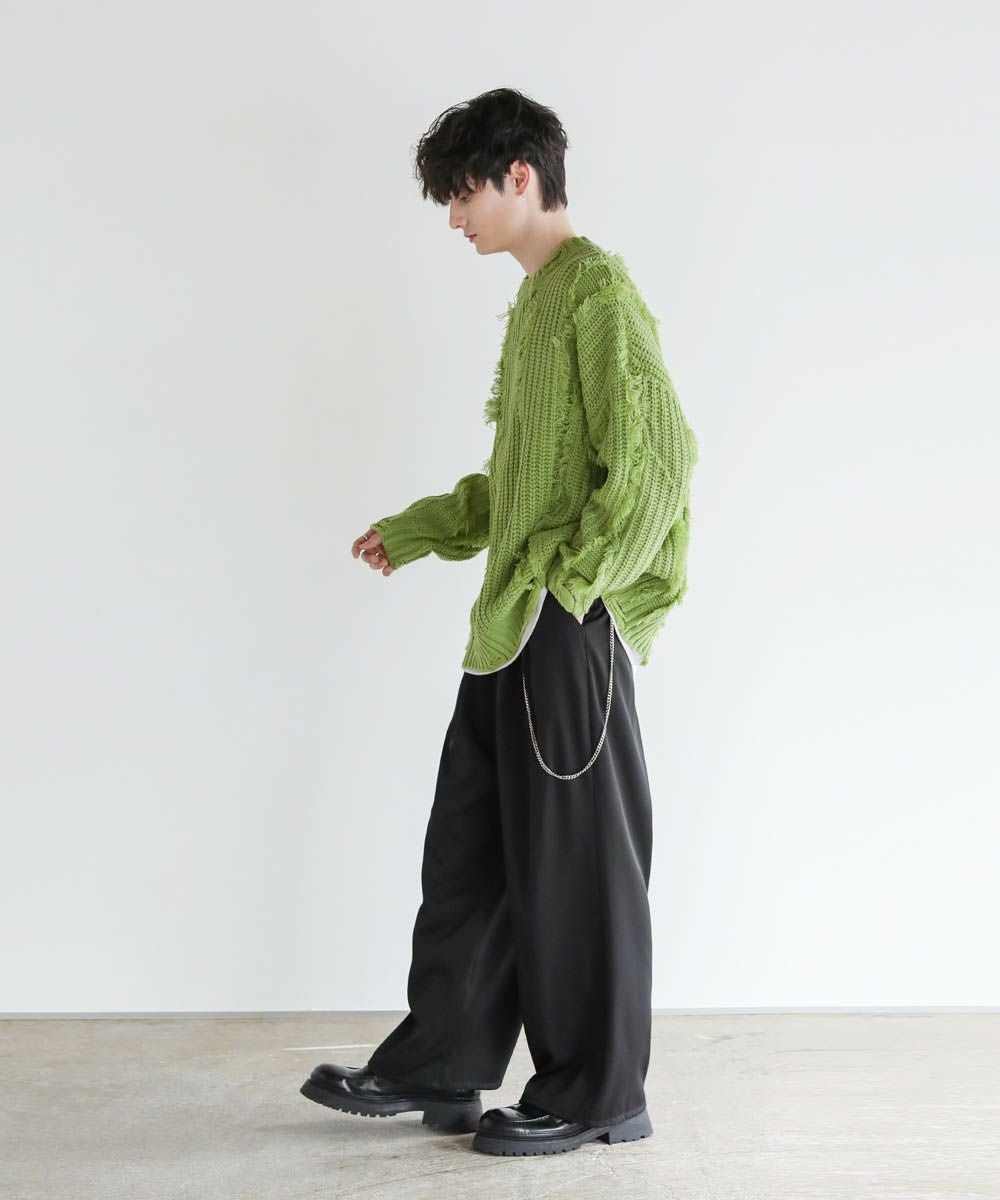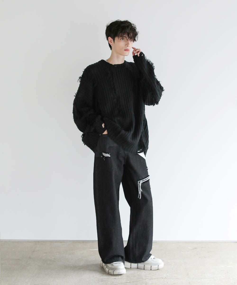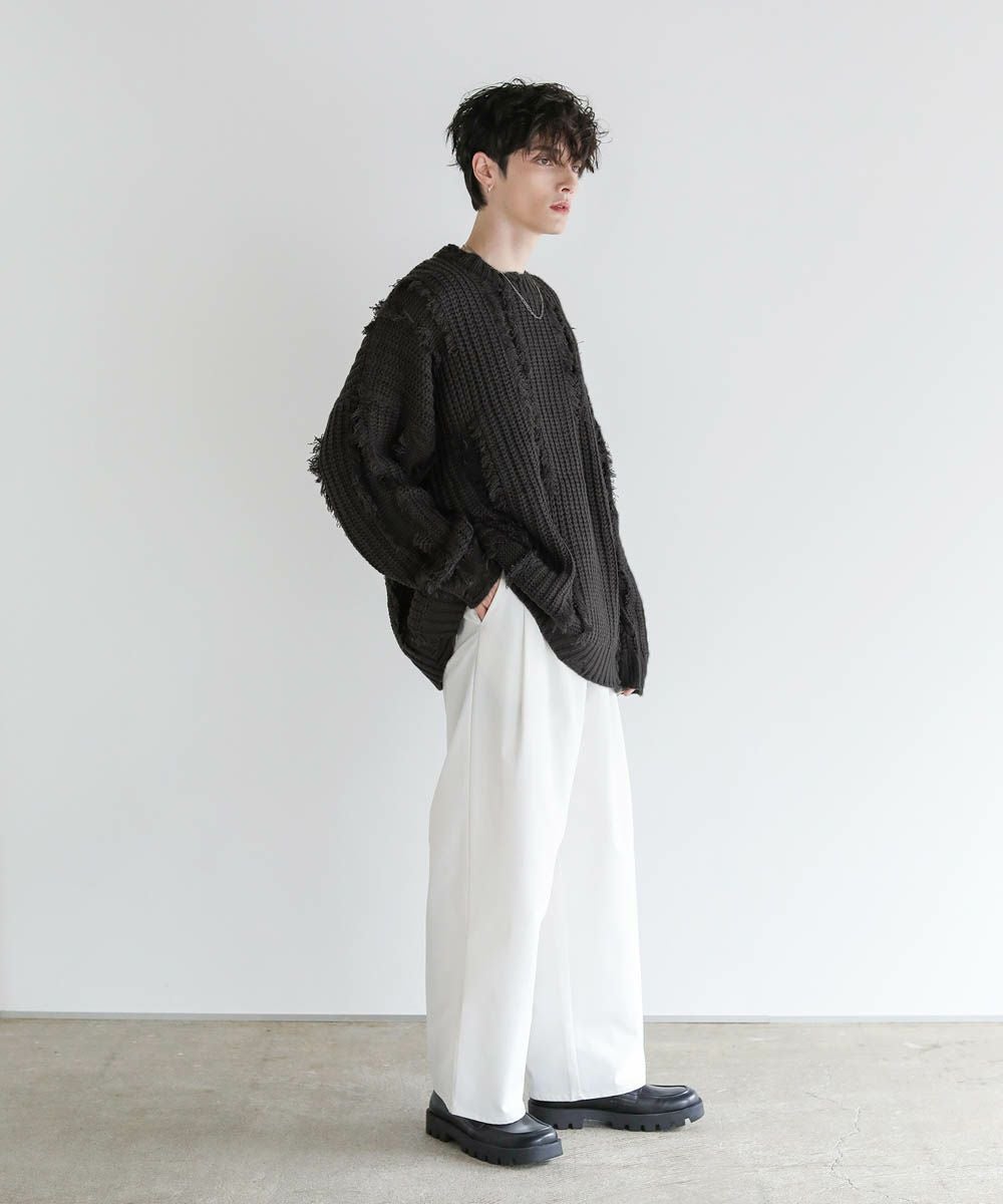 ビッグシルエットダメージフリンジケーブルニット
