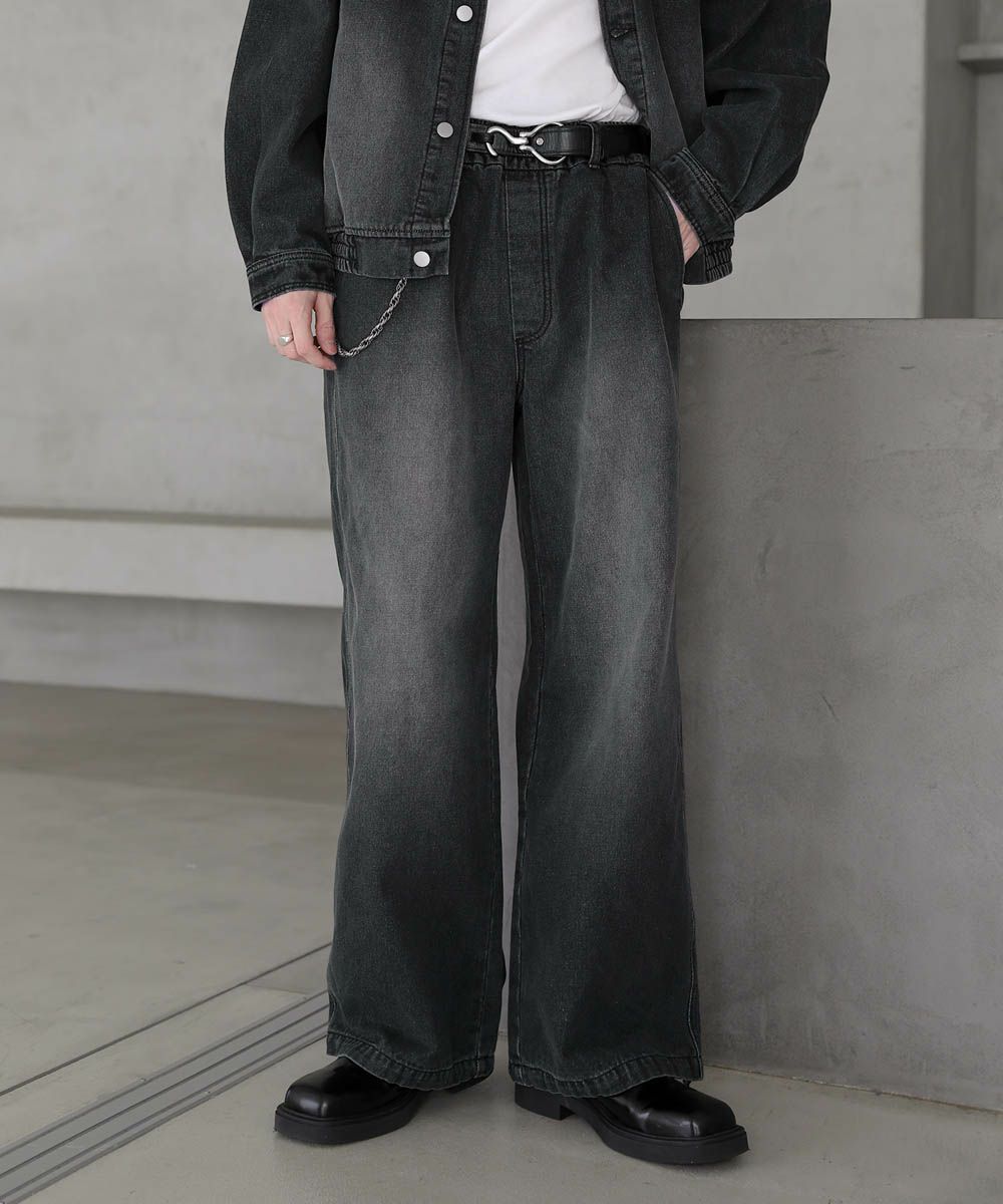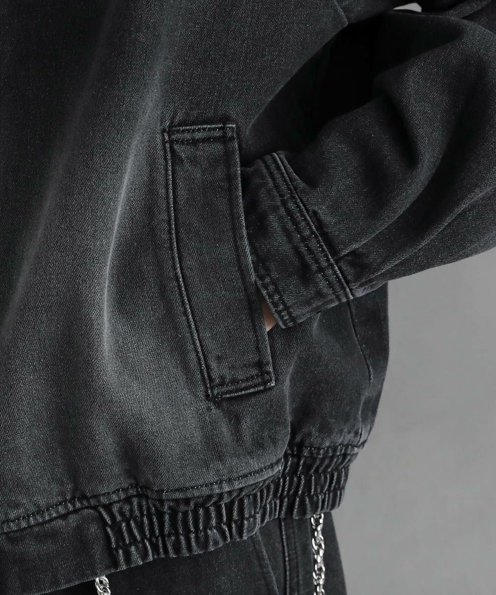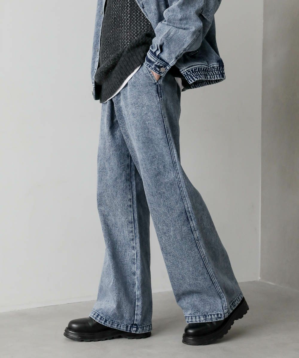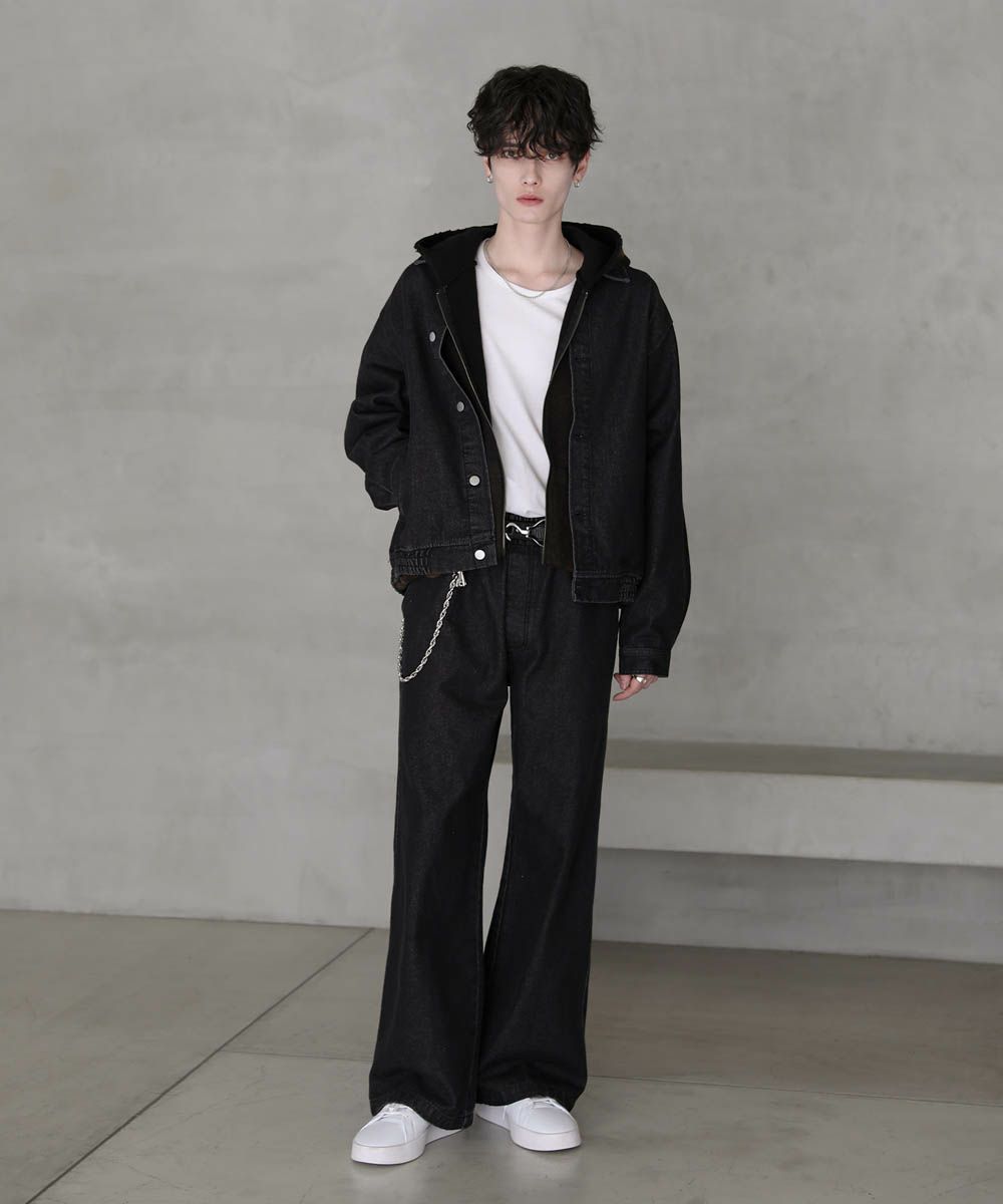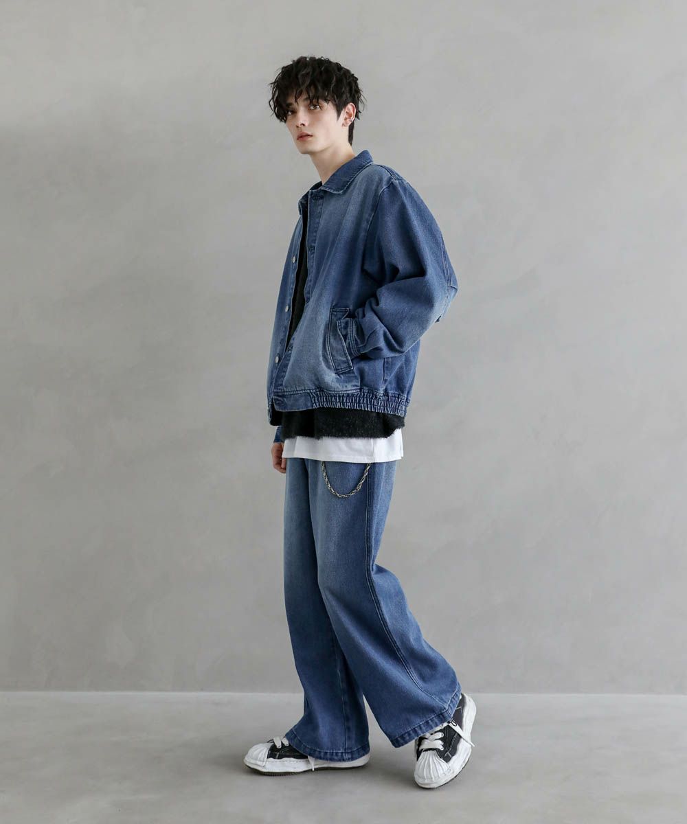 【セットアップ 2点セット】ショートデニムブルゾン+ワイドバギーオーバーパンツ