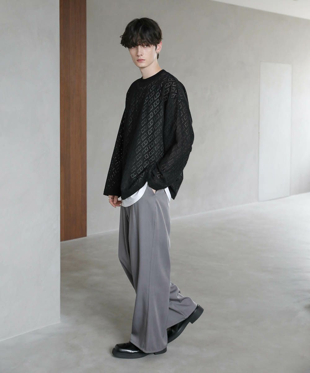 程よい透け感のレース生地で普段の着こなしに取り入れやすく、取り入れるだけでトレンドのスタイルに。ワイドボトムと合わせたリラックス感のある着こなしがおすすめです。