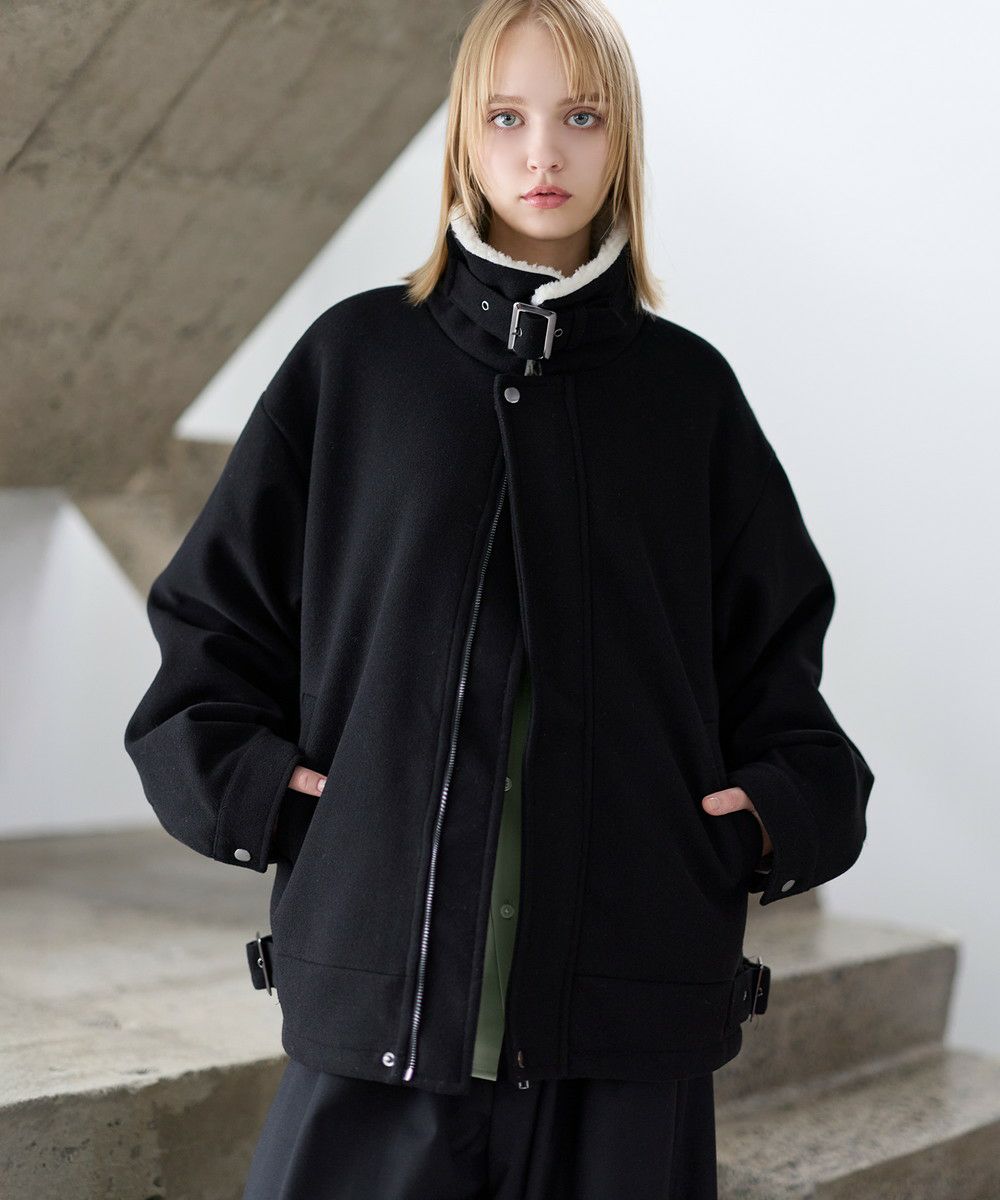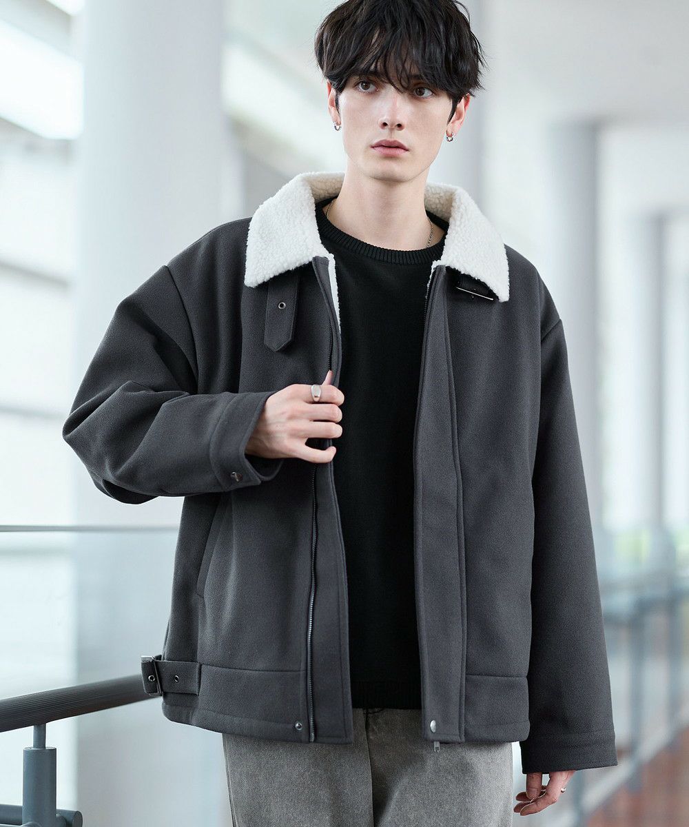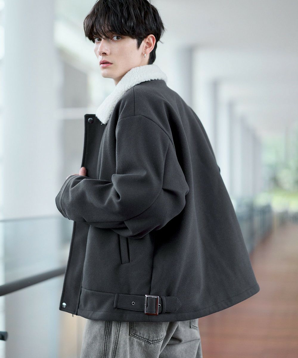 ビッグシルエット裏ボアメルトン2wayショートブルゾン