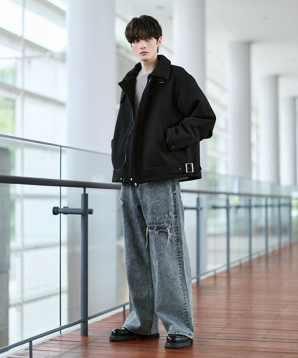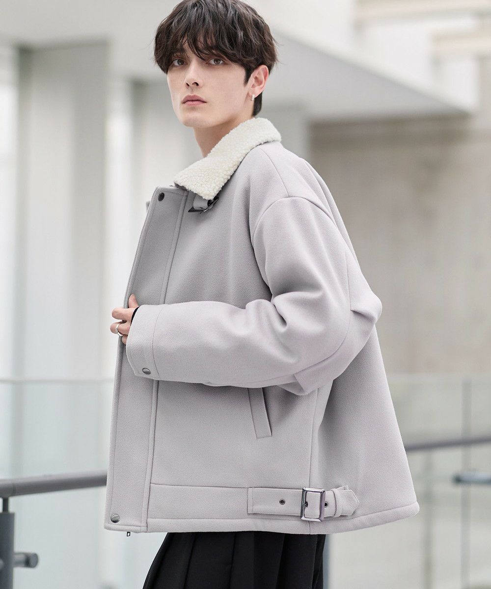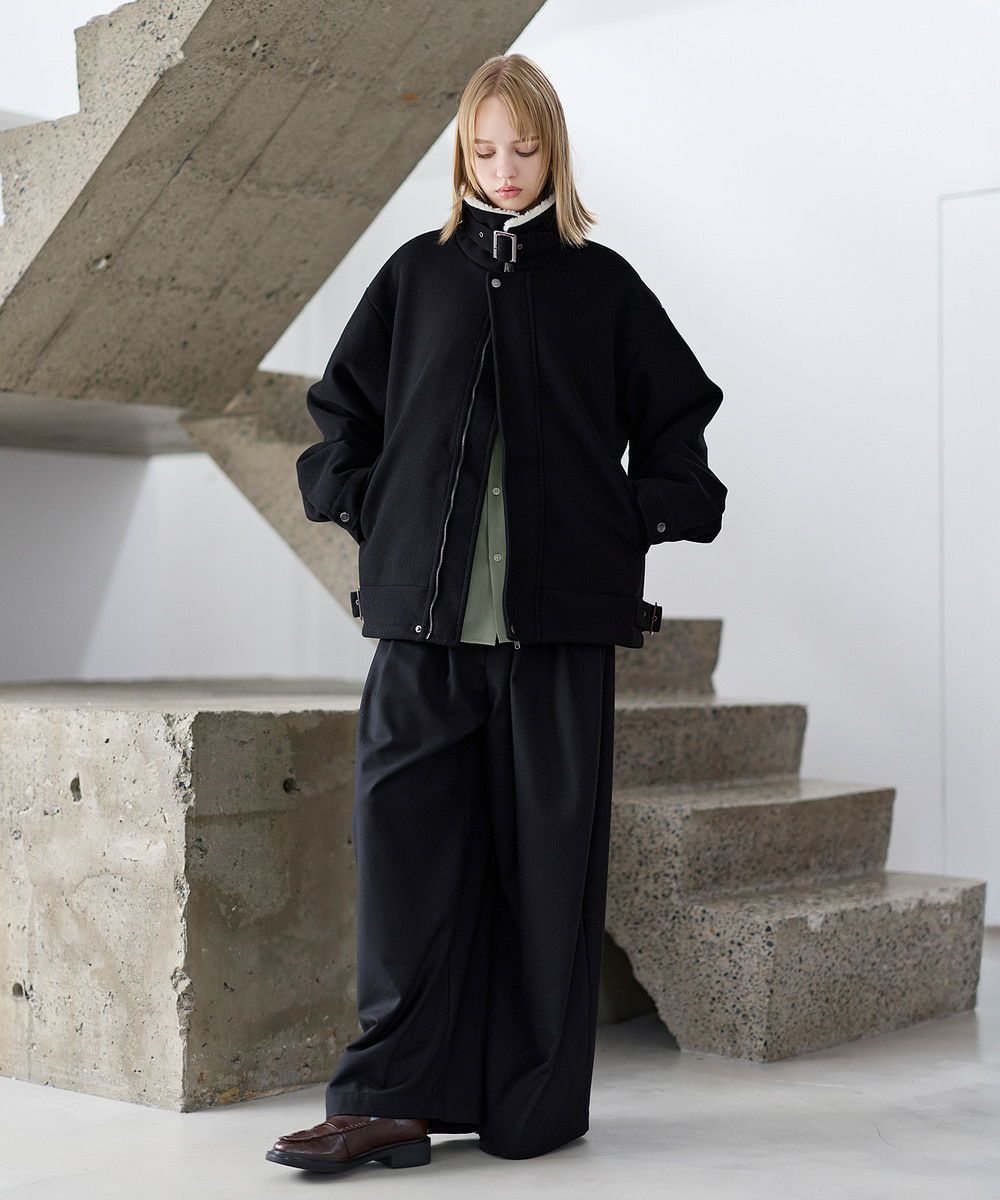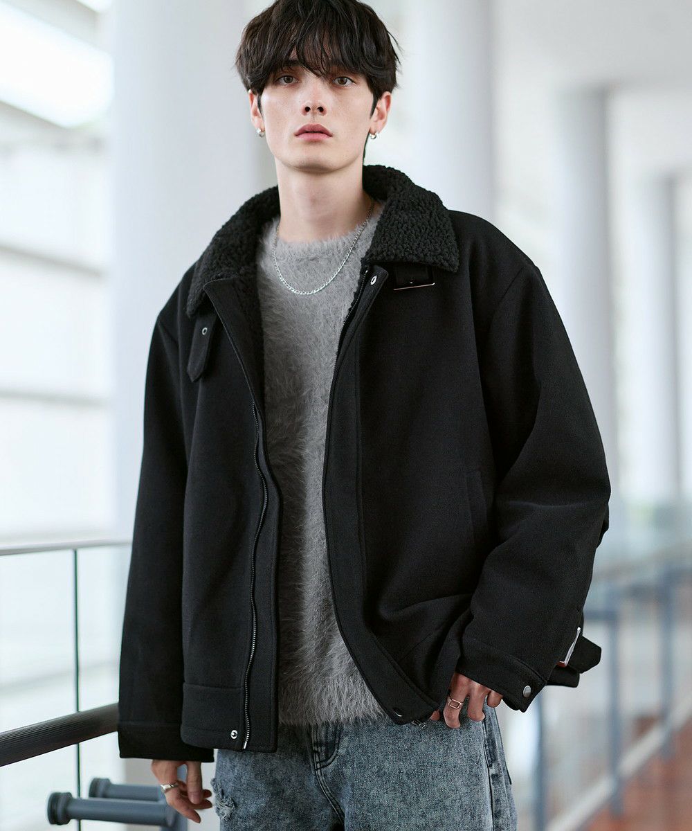ビッグシルエット裏ボアメルトン2wayショートブルゾン