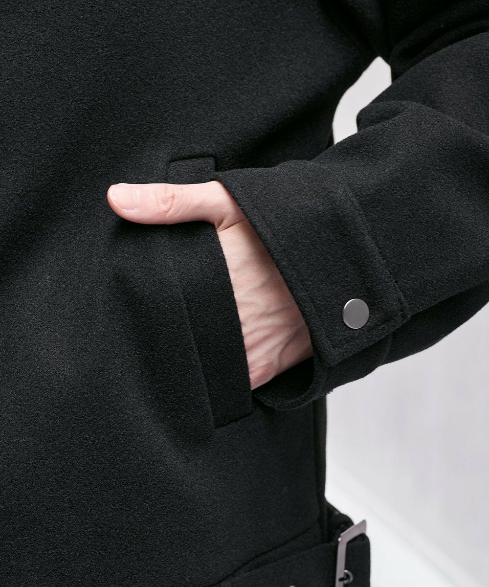 メルトンと裏ボアの組み合わせで暖かく着用できる冬アウター。ビッグシルエット&襟部分のボア素材と裾のベルトがアクセントになり、1枚で旬な着こなしを演出します。襟はベルトを留めることでハイネックデザインとしても楽しめる2WAY仕様。フロントは比翼仕立てになっているため、隙間風を防いで防寒性にも優れています。1枚でトレンドの着こなしに魅せてくれる、主役感のあるアウターです。