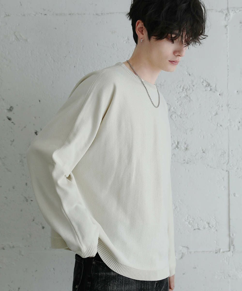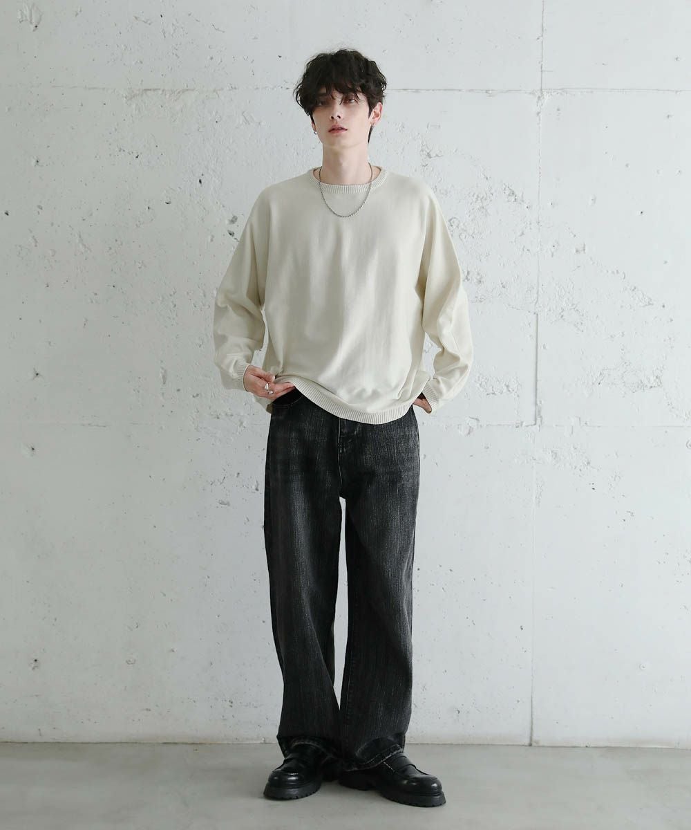 首元はベーシックなクルーネック仕様のため、どんなアウターとも合わせやすい万能アイテム。きれいめなスラックスはもちろん、クラッシュ加工のあるデニムと合わせてカジュアルダウンさせても今っぽく着こなせます。