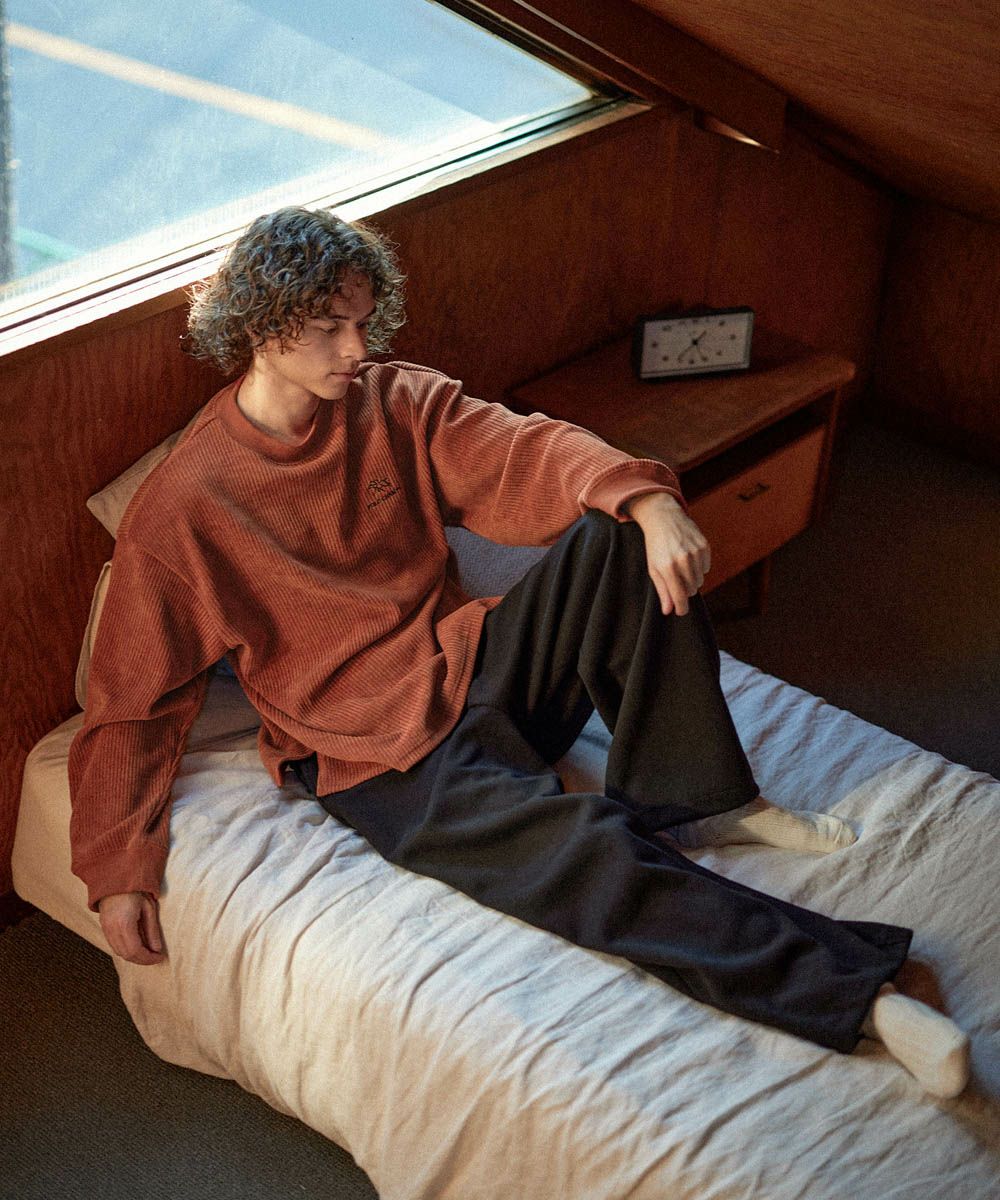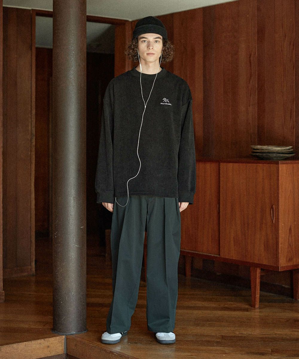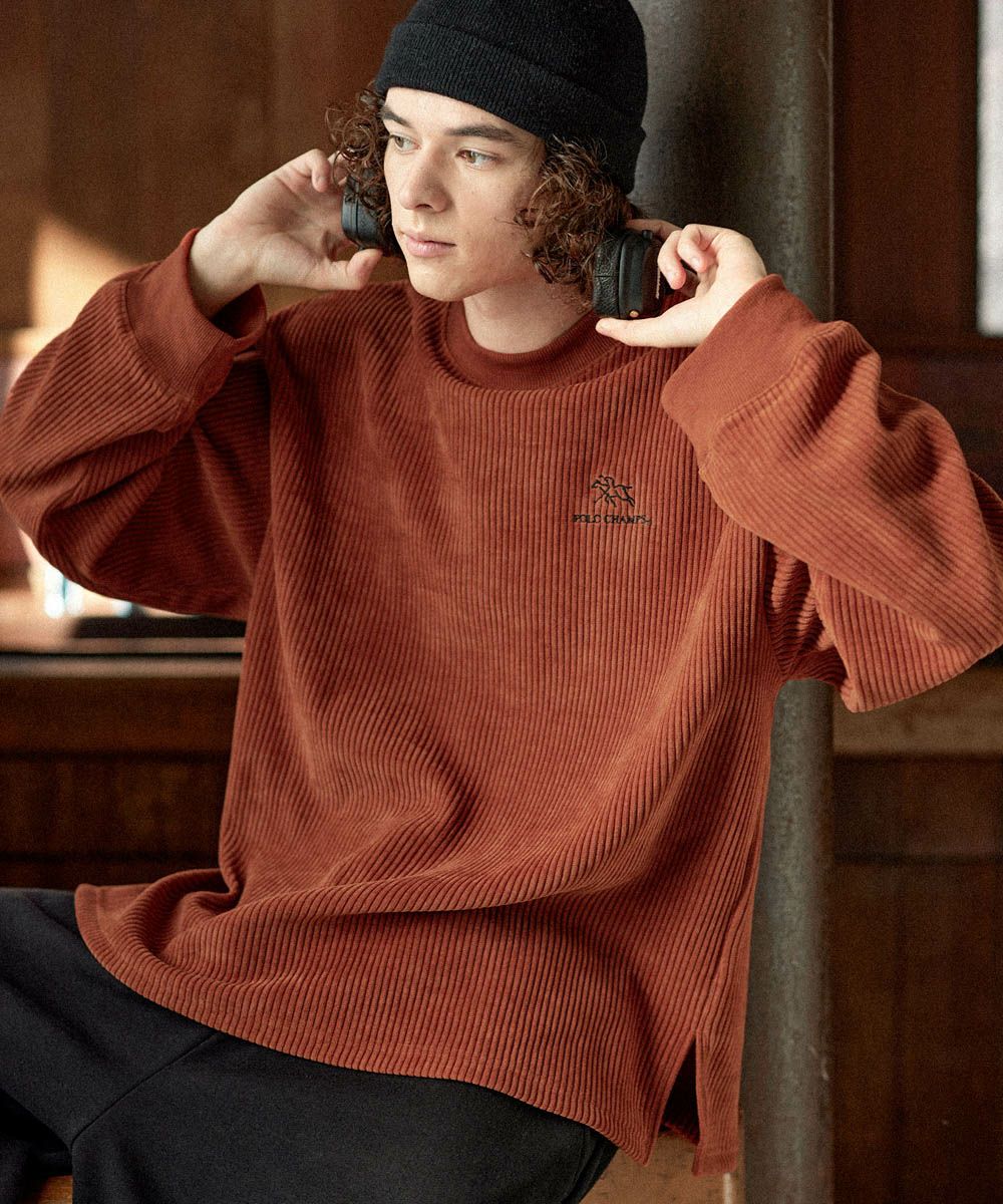 ウォーム感のあるコーデュロイ生地を使用したモックネックプルオーバー。胸元のブランド刺繍ロゴがワンポイントになり、1枚でコーディネートが完成するアイテムです。ゆったりとしたシルエットにドロップショルダー、サイドスリットが抜け感たっぷりのデザイン。