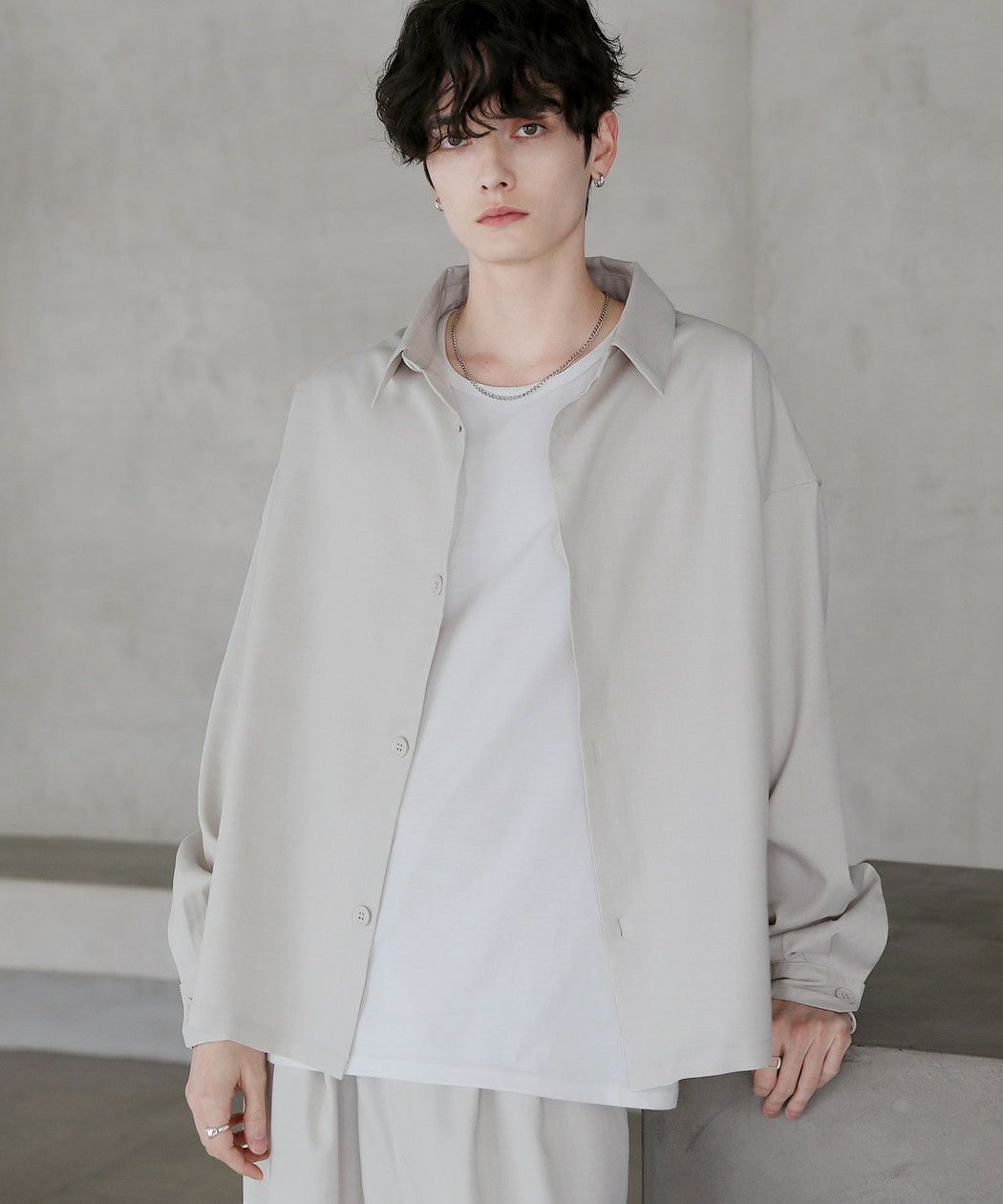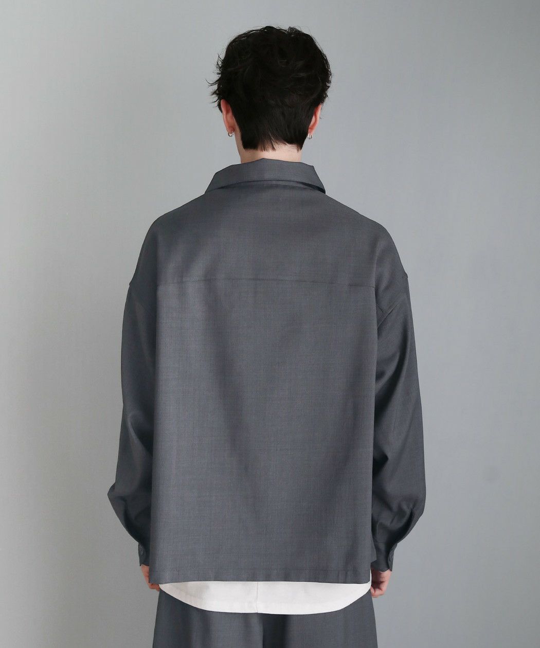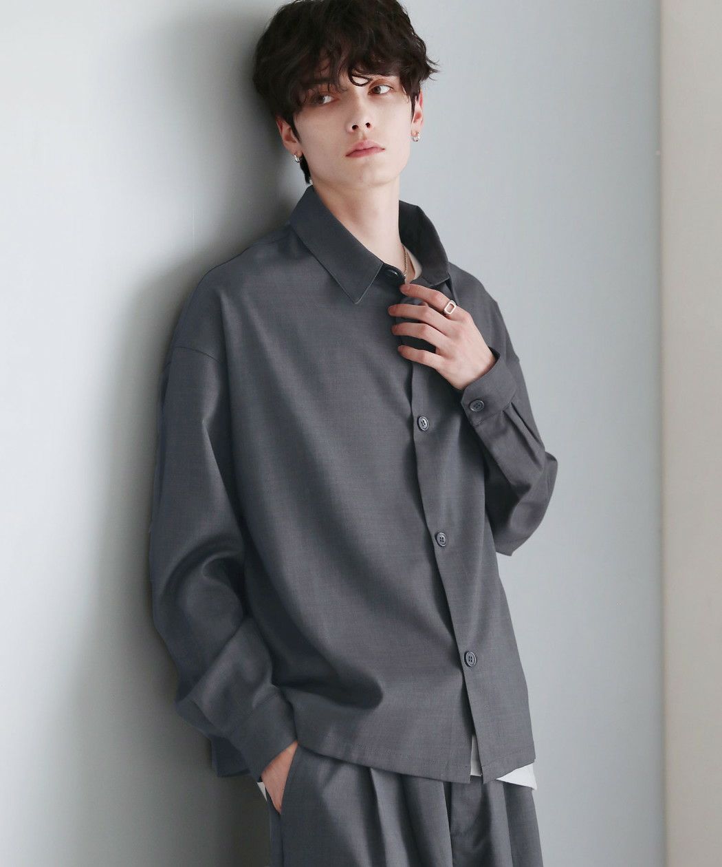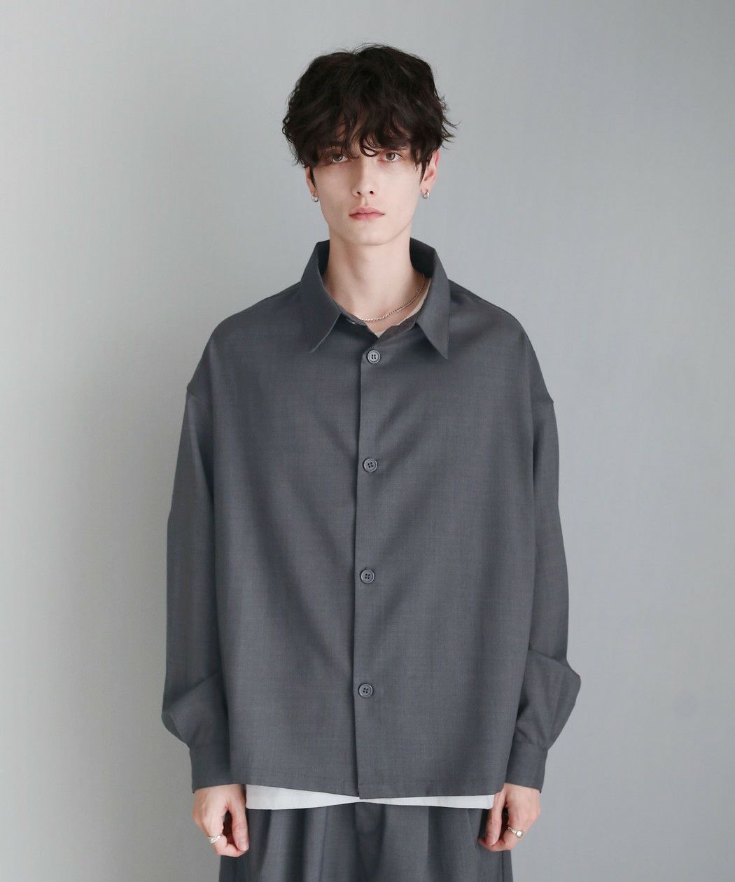 綿麻素材のようなナチュラルな風合いと短丈シルエットが特長の長袖シャツ。ワイドな身幅&トレンドのショート丈を採用しており、バランス良く着こなせる一着です。ドロップショルダーやゆとりのある袖幅など、こなれ感たっぷりのアイテムに仕上げました。さらに、袖口にはダーツを入れたことで立体感が生まれ、ボリュームのあるシルエットが決まります。綿麻のようなナチュラルさを持ちながらも毛羽のないクリーンな生地感で、キレイめアイテムとも好相性。ボタンは生地と同じカラーを採用するなど、ディテールにもこだわった一着です。