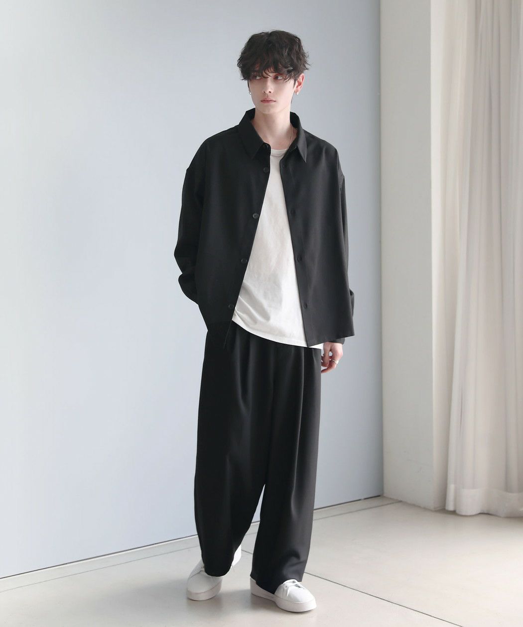 シンプルに1枚で着用するのはもちろん、インナーにカットソーやTシャツを合わせたレイヤードコーデもおすすめ。同素材のスラックスと合わせれば、都会的でこなれた印象のセットアップコーデが簡単に作ることができます。