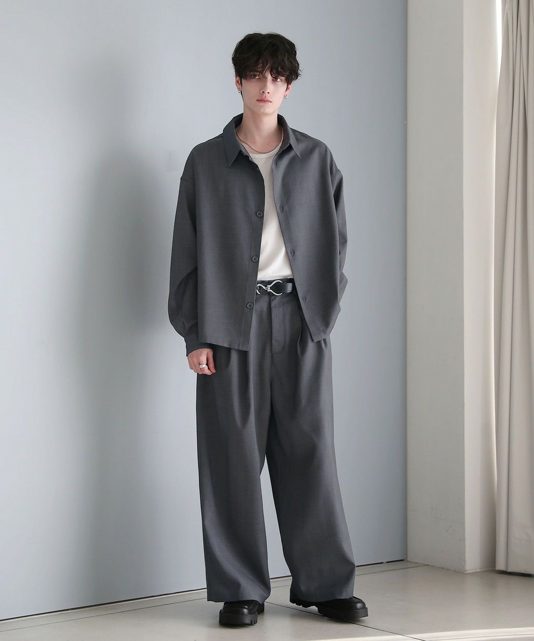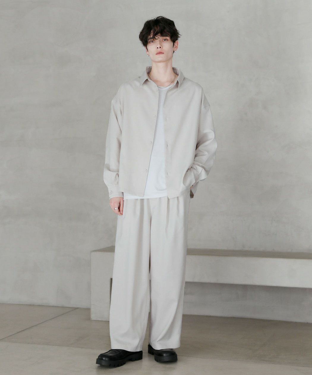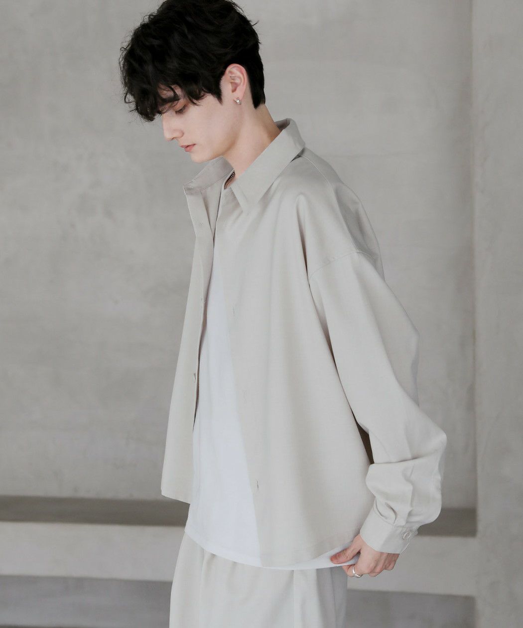 綿麻タッチ短丈ワイドシャツ【セットアップ可能】