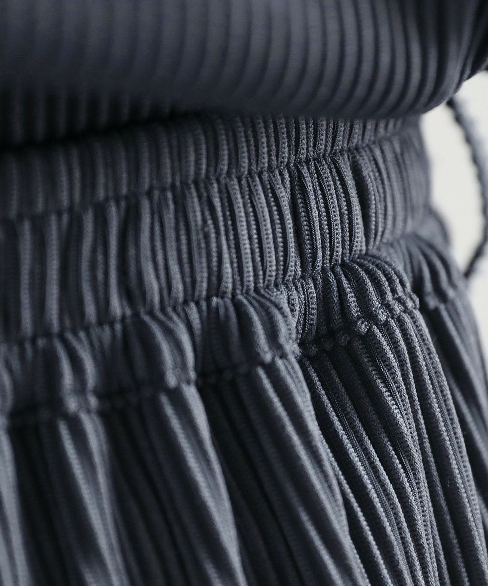 ほのかなツヤ感のあるプリーツ生地を使用。扱いやすいポリエステルをメインとした素材で、肌離れが良く常に快適な穿き心地を実現します。滑らかなタッチで上品な印象です。
