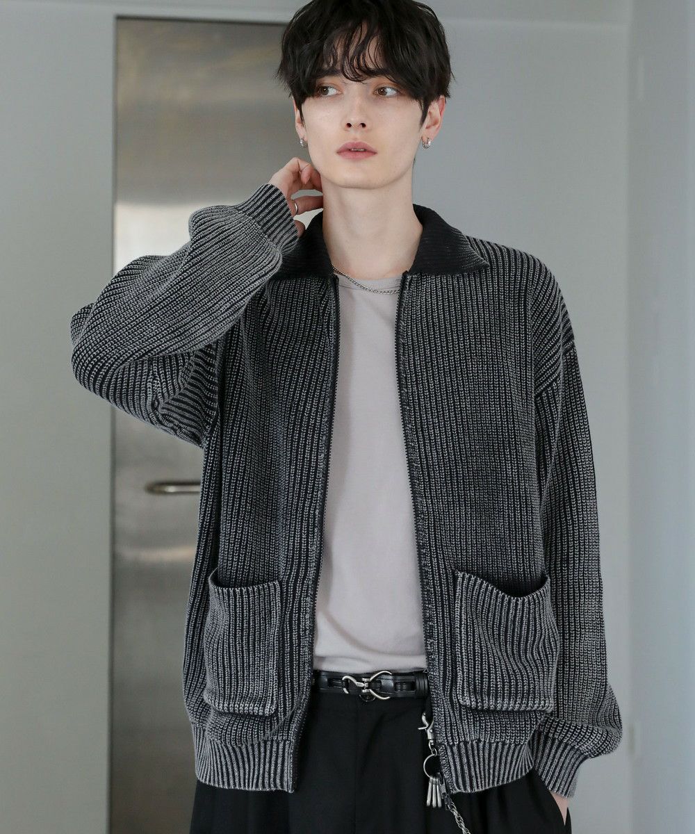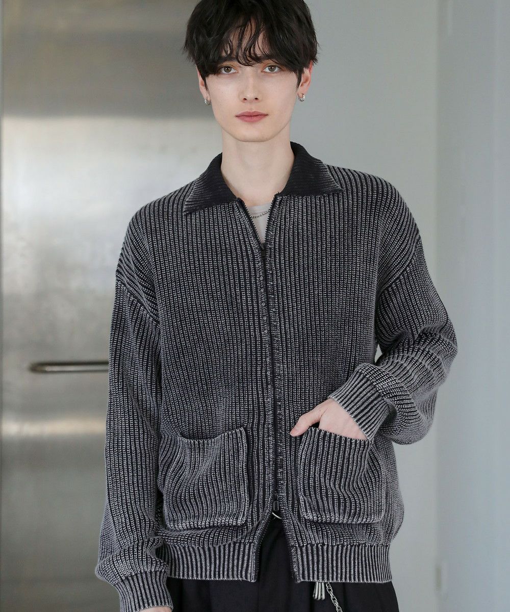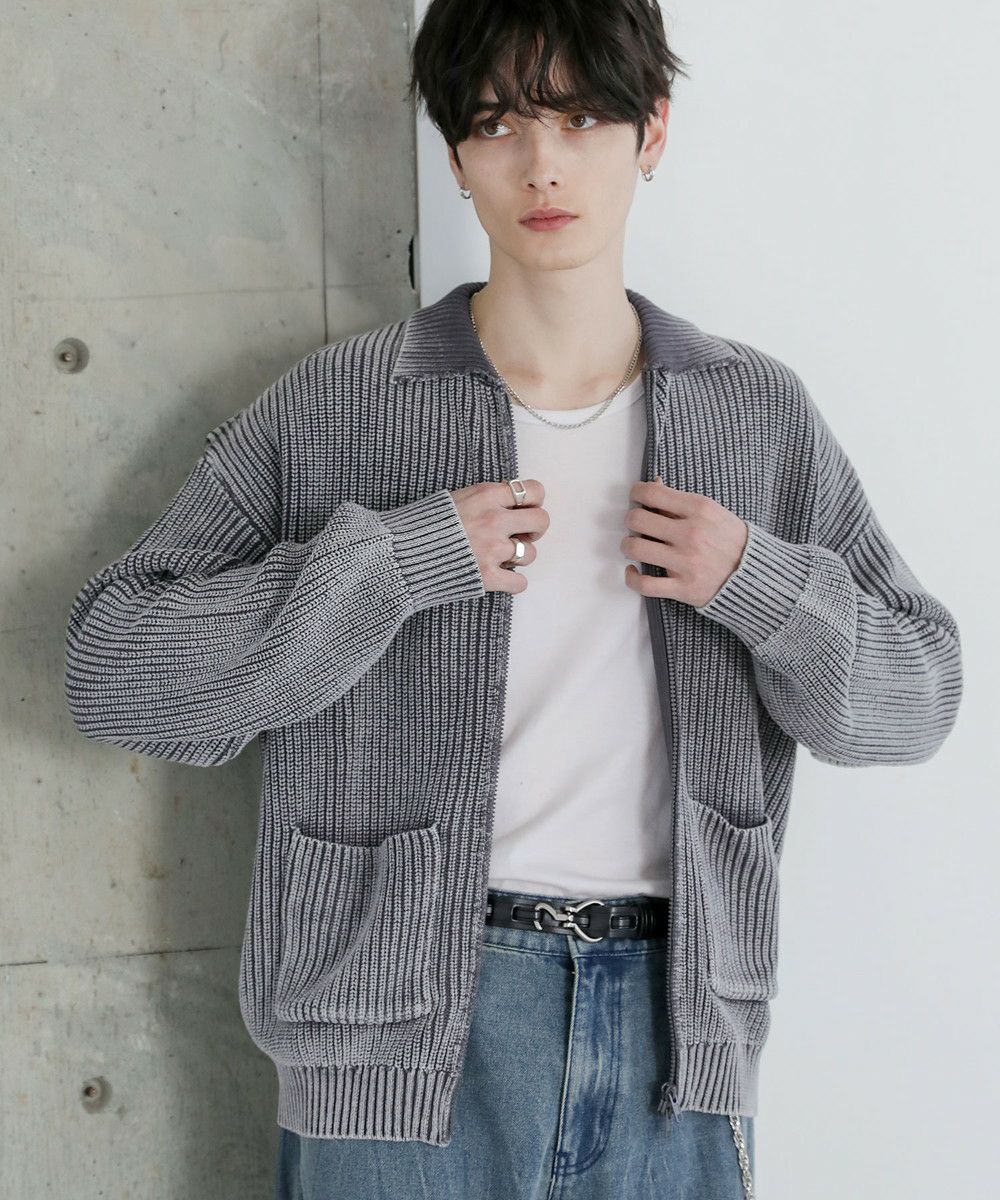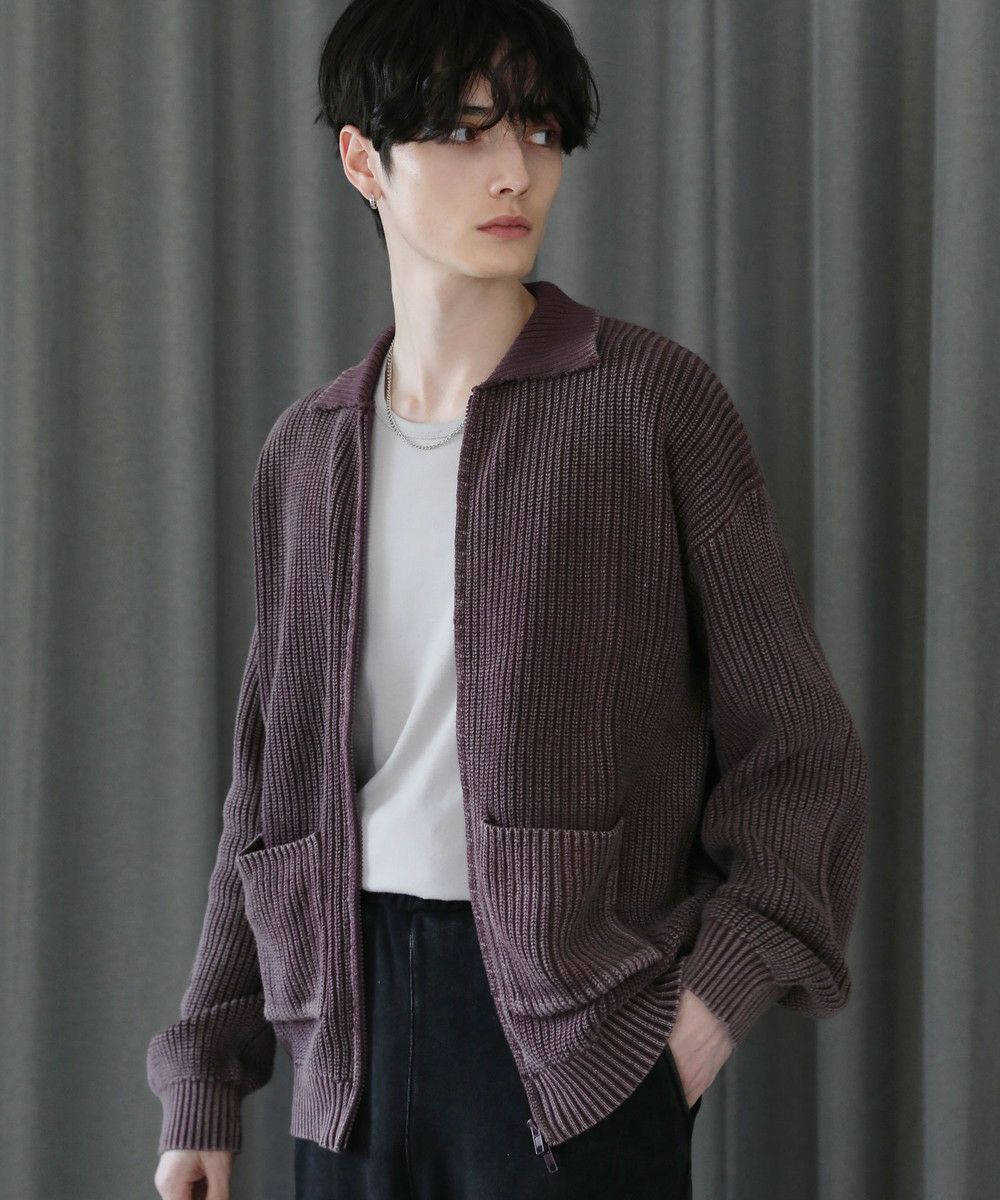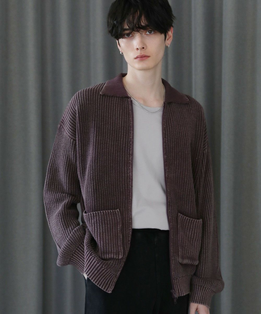 ヴィンテージ感のある風合いが魅力のカーディガン。ピグメント加工により独特の色褪せ感やムラ感を作り、古着のような雰囲気を演出しました。前を閉めればトップスとして、開けて着ればライトアウターとして使える万能アイテム。ダブルジップなので、下を開けてレイヤードスタイルを作るなど自由自在に着こなせます。袖にボリュームを持たせたたまりシルエットや、フロントのポケットなどがコーディネートのアクセントに。裾と袖のリブも太めなのでコーディネートにメリハリをプラスしてくれます。トレンドライクなルーズシルエットで、シンプルなコーディネートでもこなれた雰囲気に仕上げてくれる一着です。