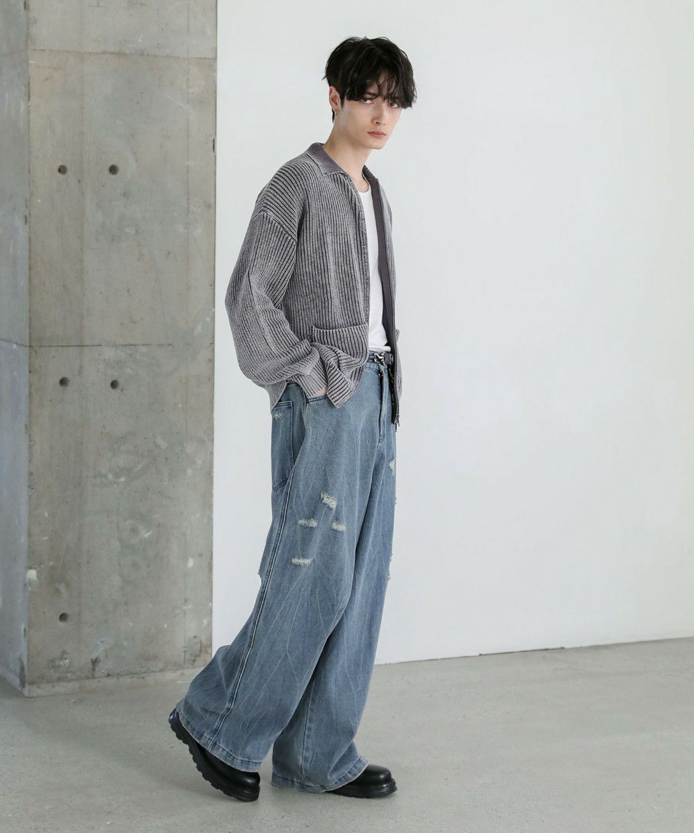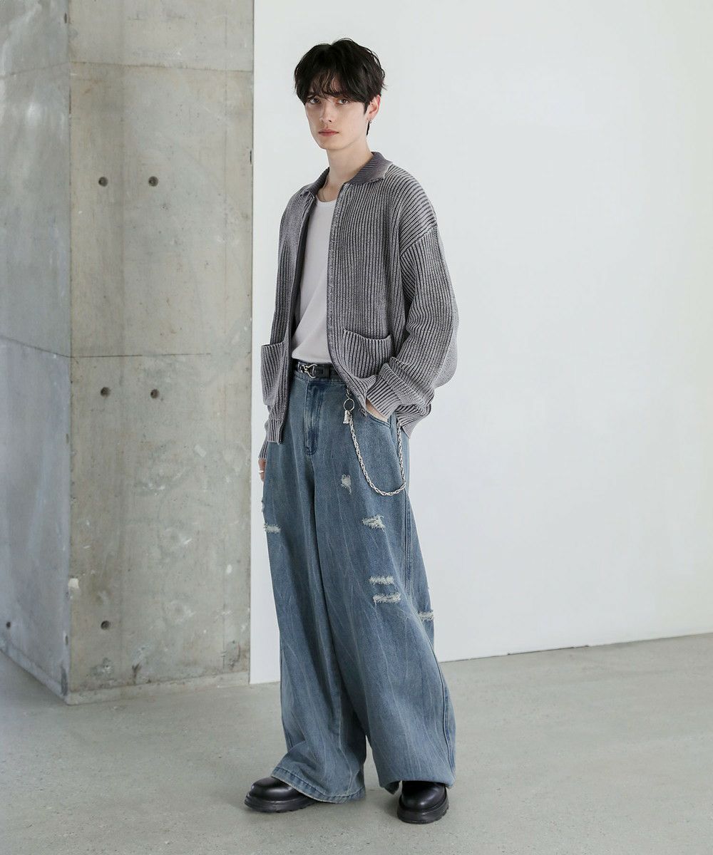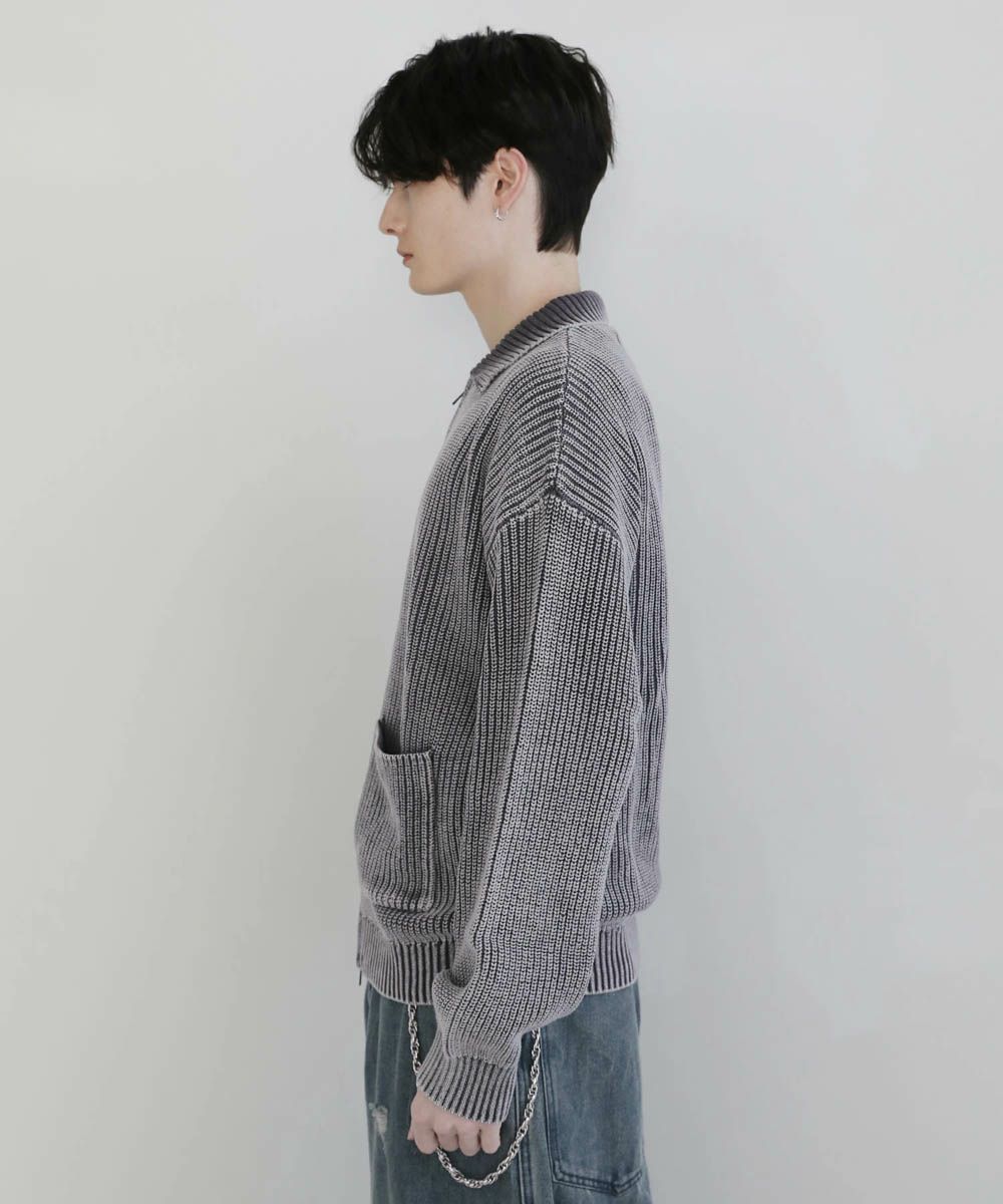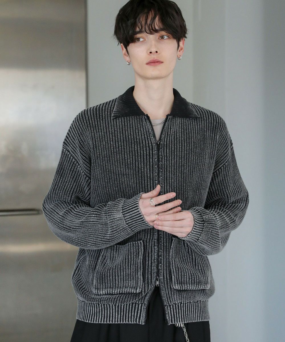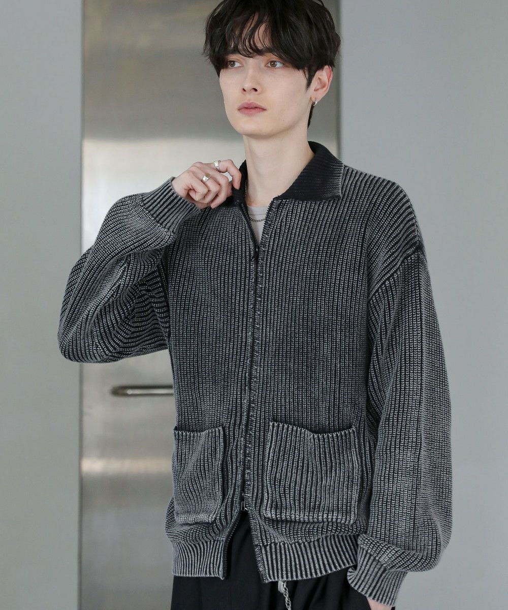 ヴィンテージ感のある風合いが魅力のカーディガン。ピグメント加工により独特の色褪せ感やムラ感を作り、古着のような雰囲気を演出しました。前を閉めればトップスとして、開けて着ればライトアウターとして使える万能アイテム。ダブルジップなので、下を開けてレイヤードスタイルを作るなど自由自在に着こなせます。袖にボリュームを持たせたたまりシルエットや、フロントのポケットなどがコーディネートのアクセントに。裾と袖のリブも太めなのでコーディネートにメリハリをプラスしてくれます。トレンドライクなルーズシルエットで、シンプルなコーディネートでもこなれた雰囲気に仕上げてくれる一着です。