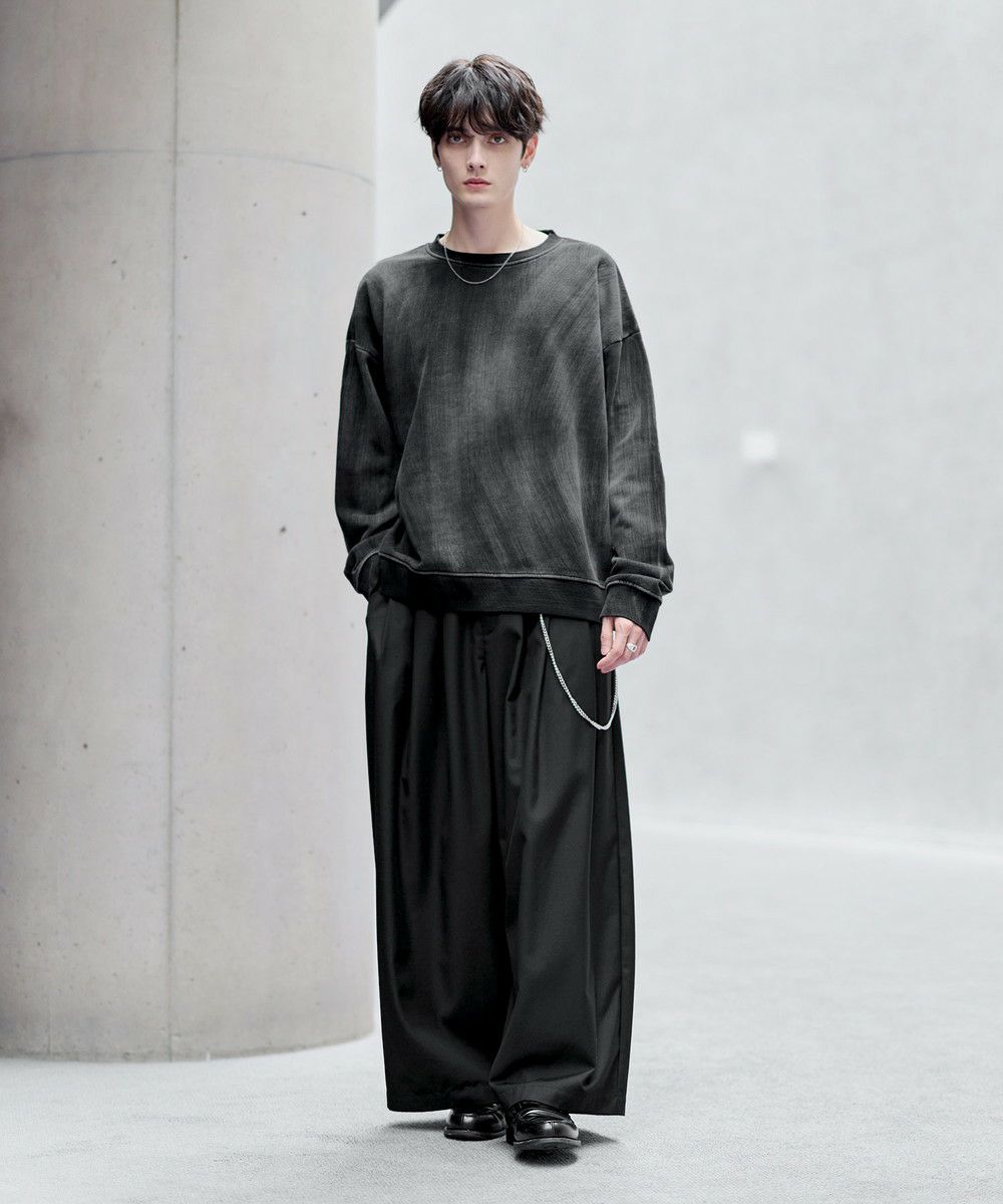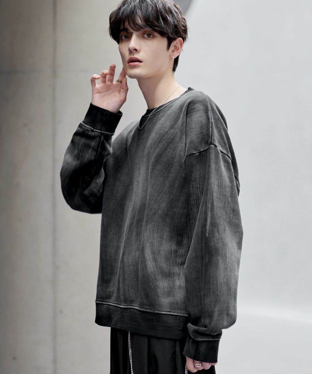 雰囲気のあるピグメント加工が主役感のあるクルースウェット。ワイド、バギーパンツなどボリュームのあるボトムやデニムパンツなどと合わせたスタイリングがおすすめです。