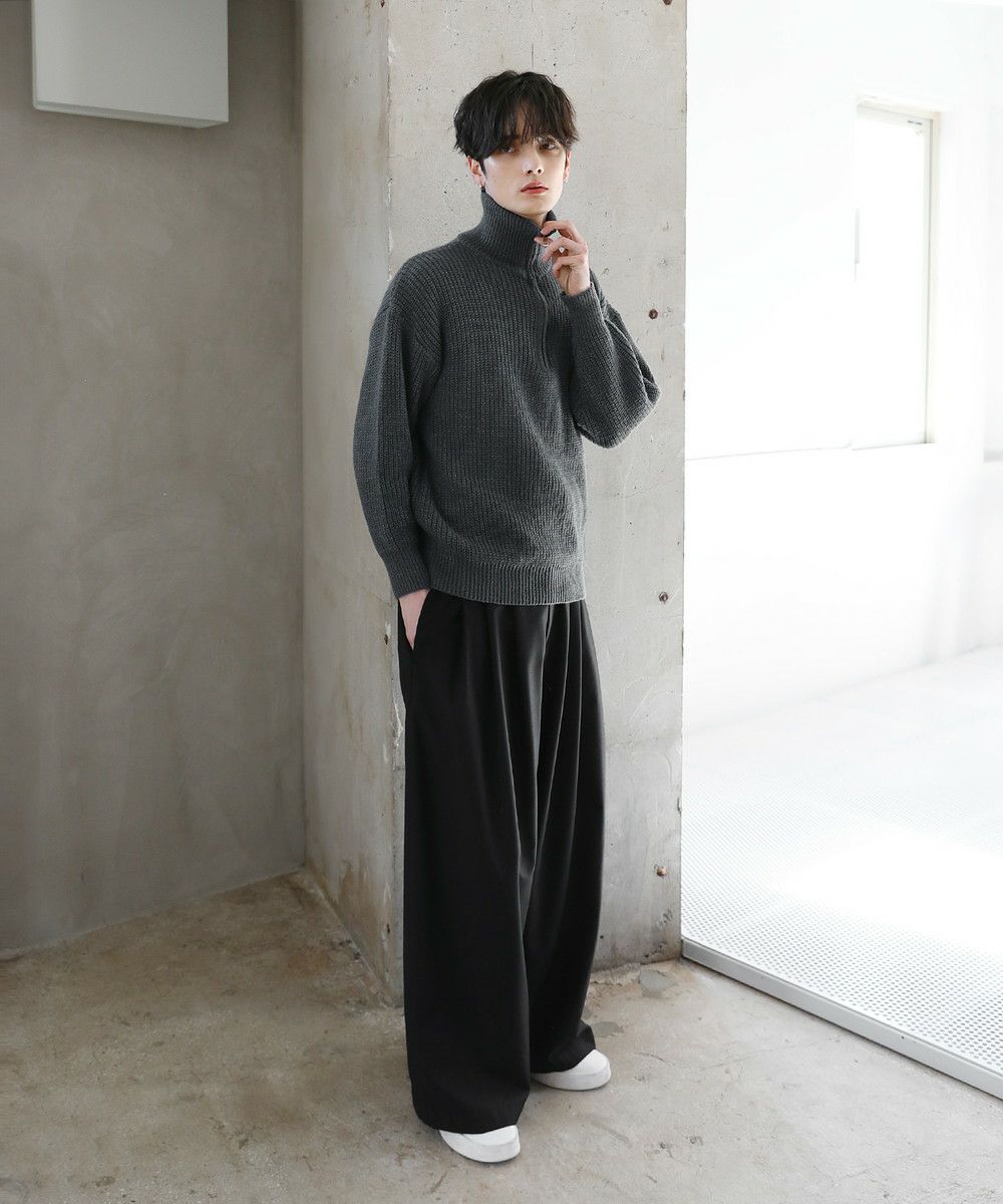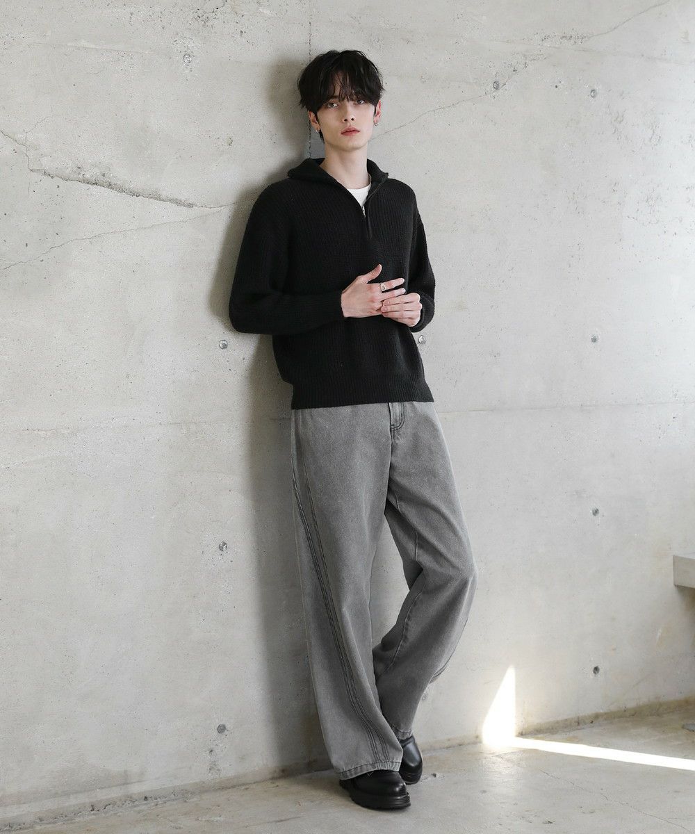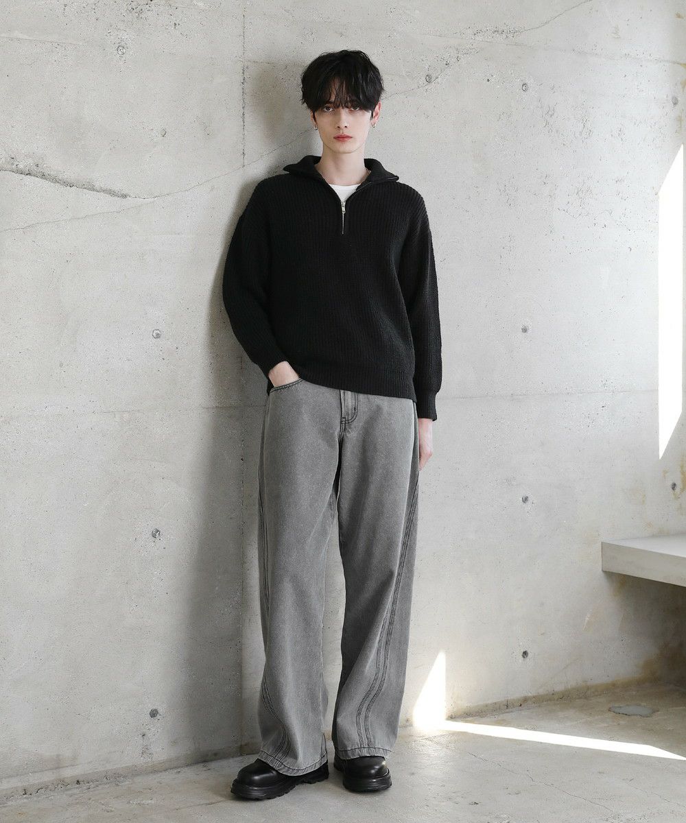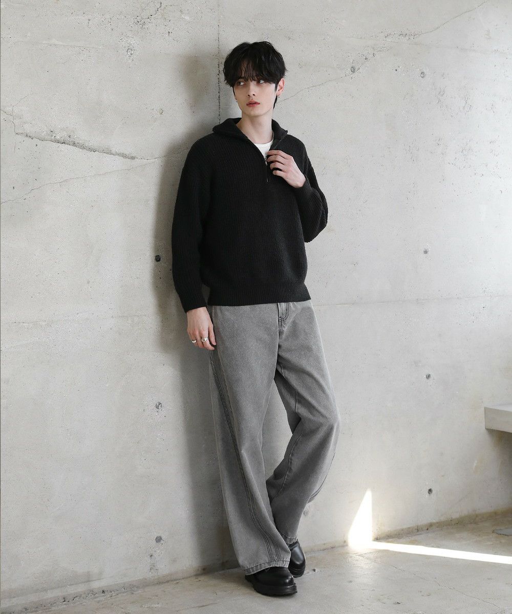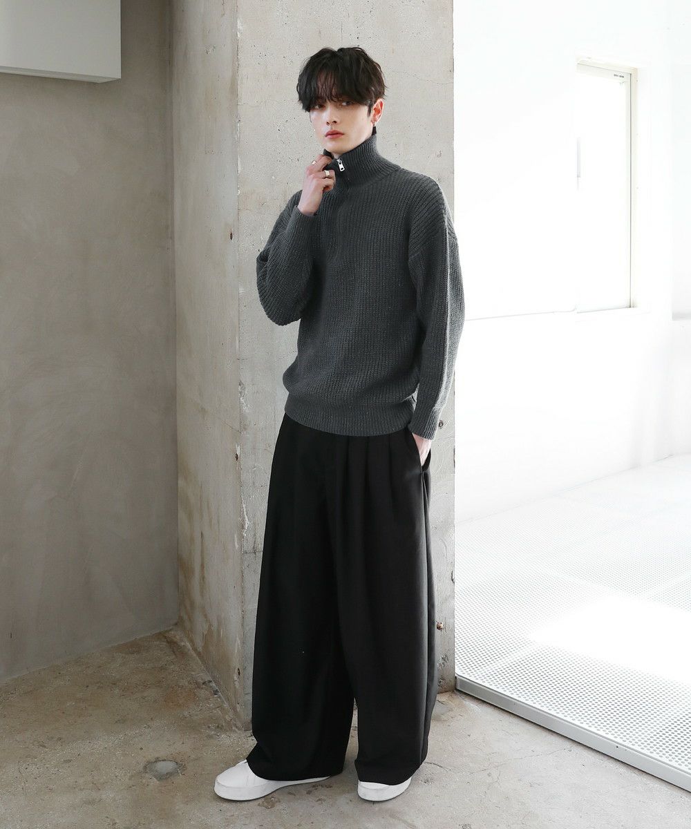 今っぽいリラックス感とトレンド感を備えたハーフジップニット。ふっくらとしたボリュームのあるニットで、秋から春先まで活躍します。レイヤードコーデにも活躍するハーフジップデザインは、合わせるだけでトレンドを押さえた着こなしに。ジップを上げてハイネックのように着こなすと、首元がすっきりと見えてスタイリッシュな雰囲気を醸します。程よいサイズ感でシンプルなコーディネートでもバランス良くまとまる頼れる1着です。