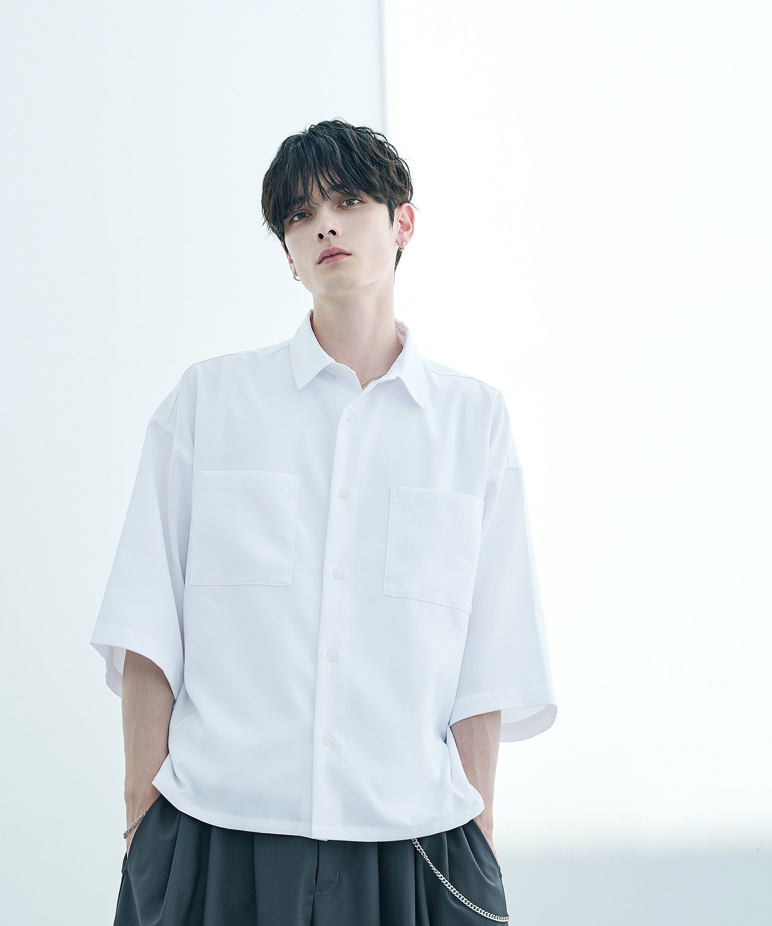 【防シワ】短丈ワイドリラックス半袖シャツ