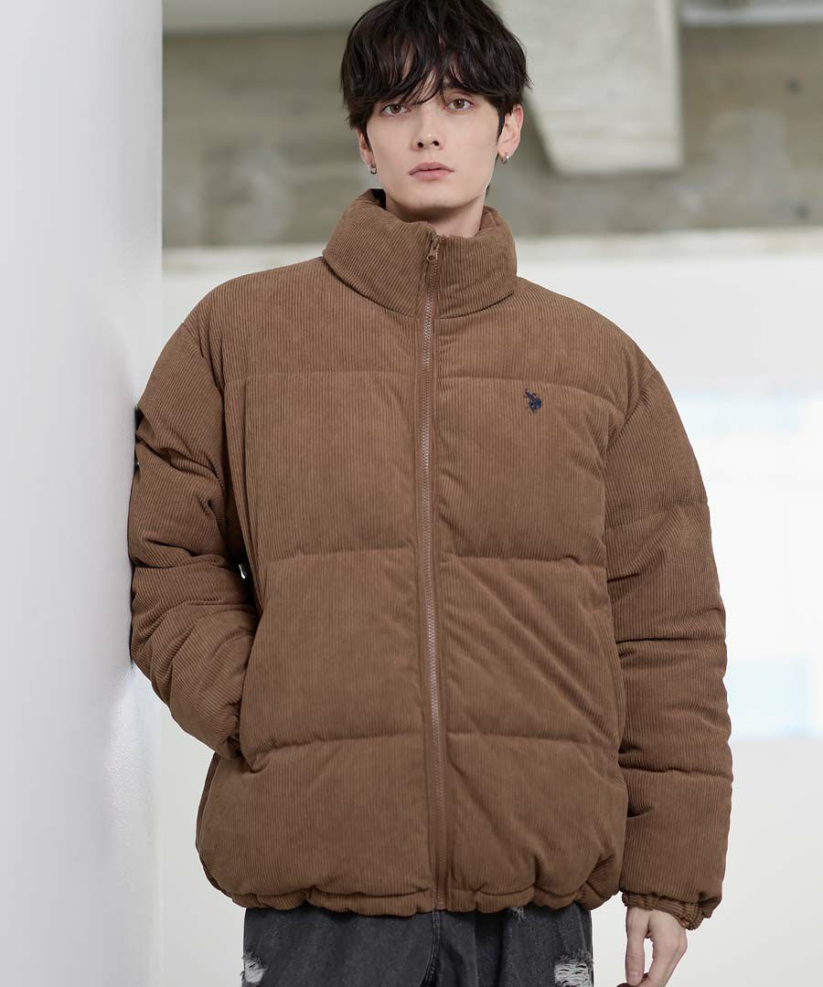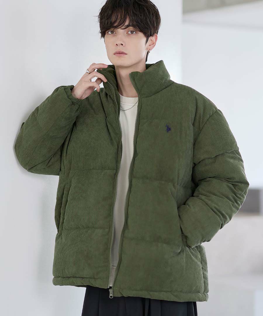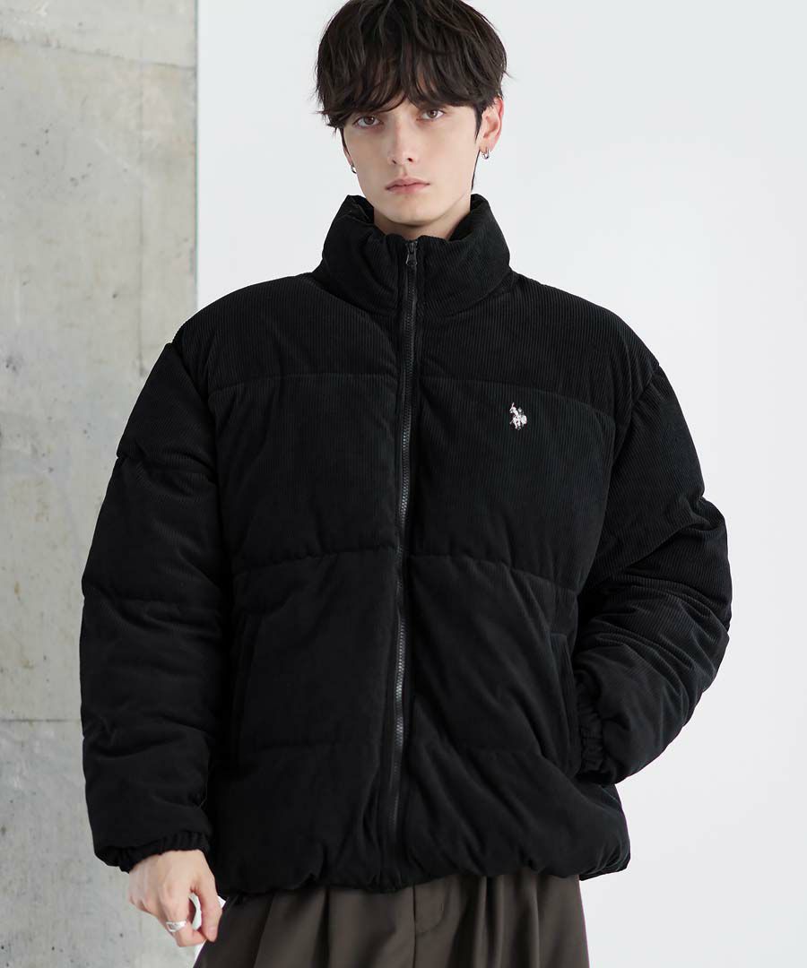 U.S.POLO ASSN. ハイネックボリューム中綿スタンドネックブルゾン タフタ/コーデュロイ