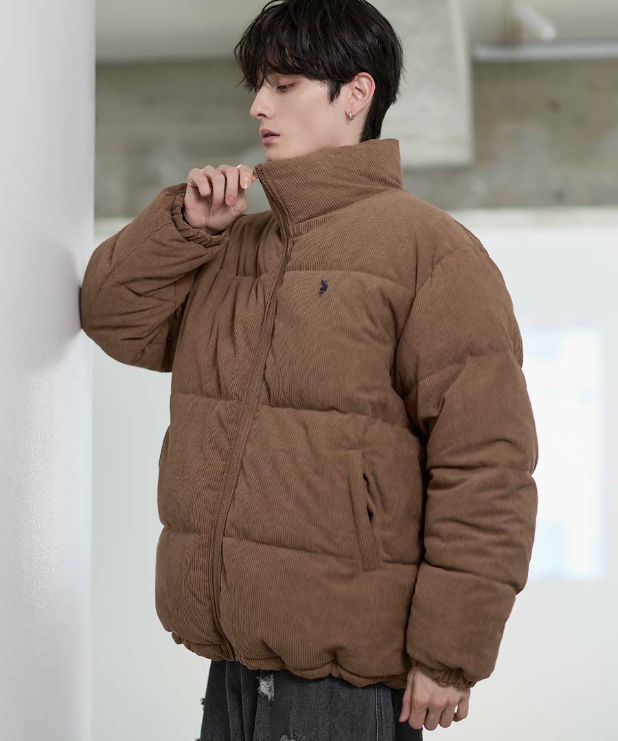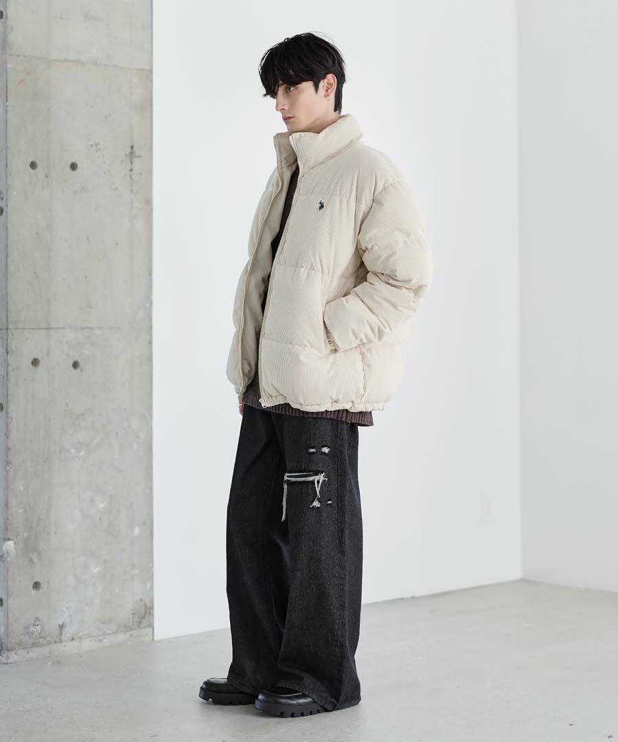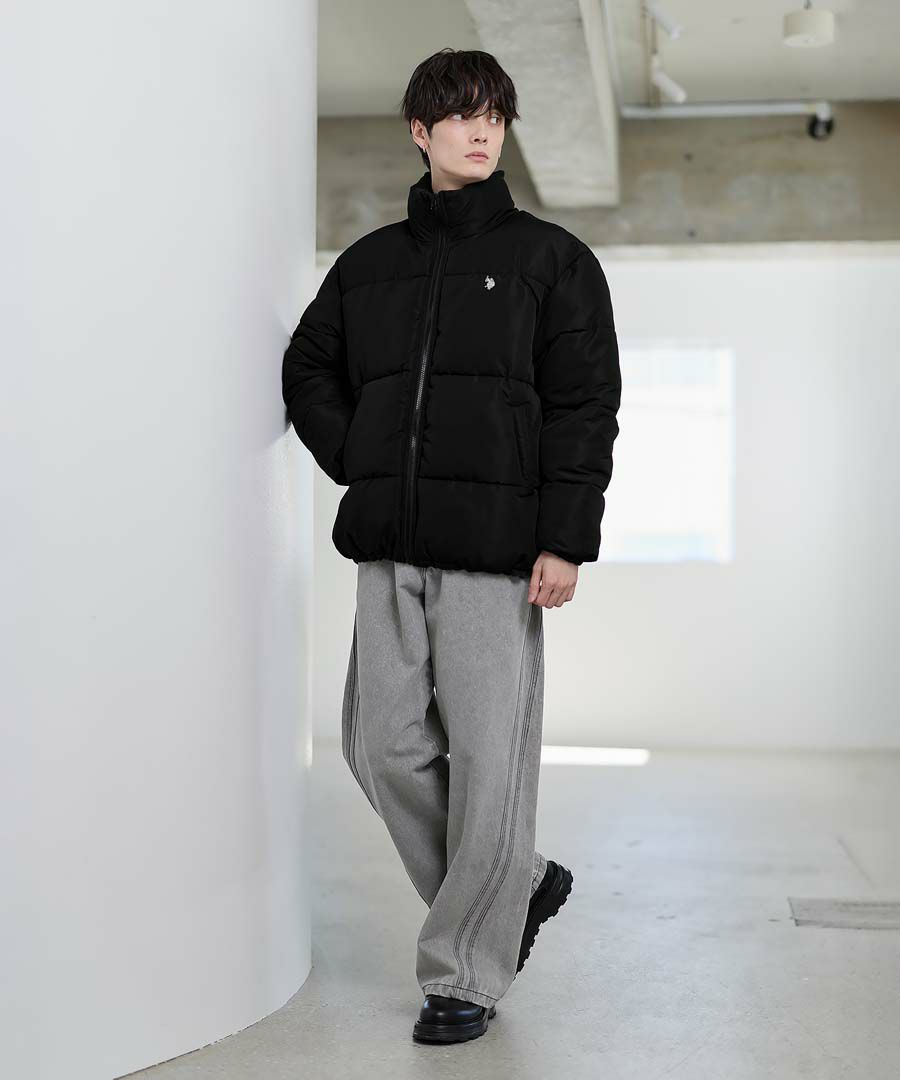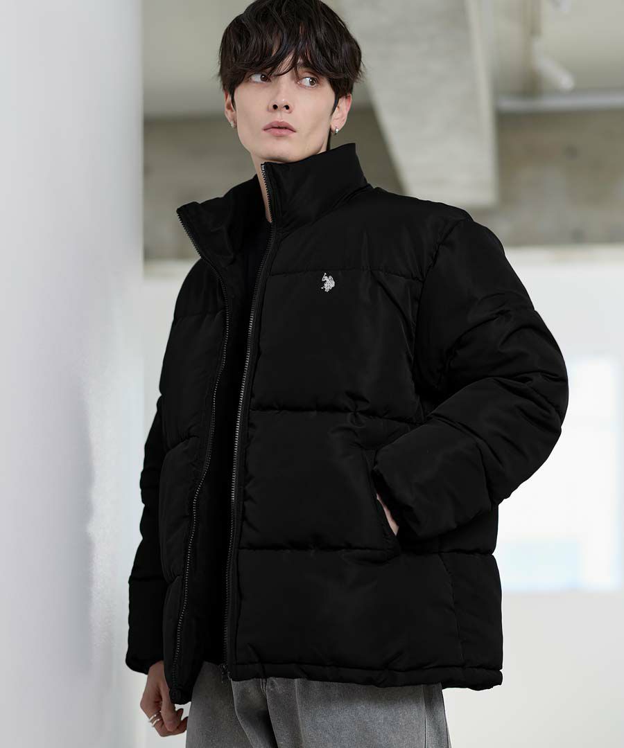 U.S.POLO ASSN. ハイネックボリューム中綿スタンドネックブルゾン タフタ/コーデュロイ