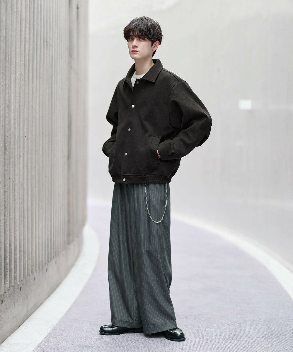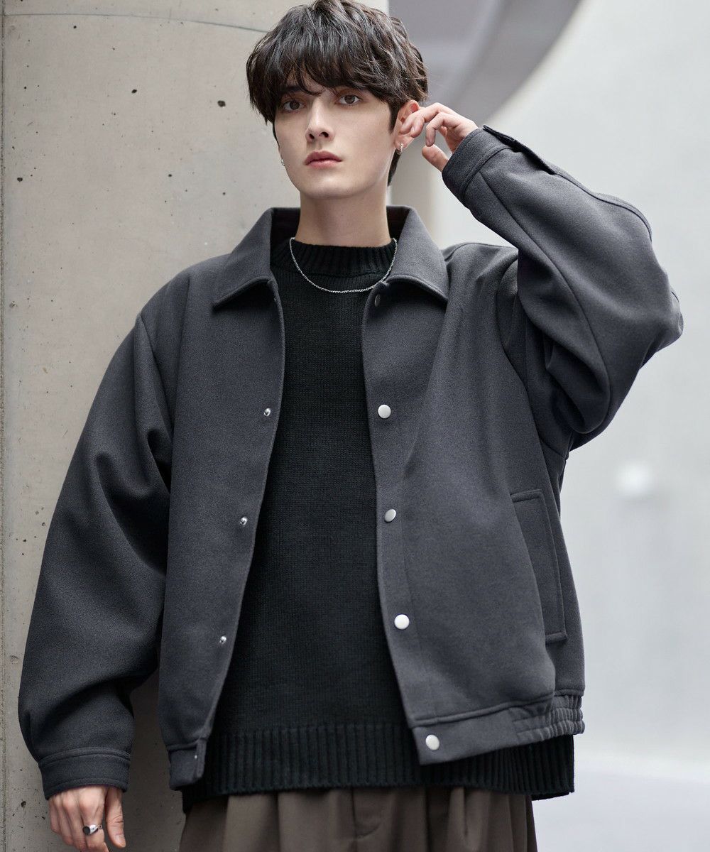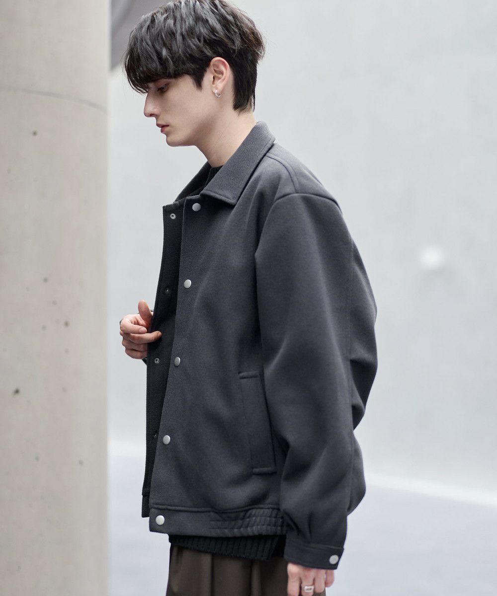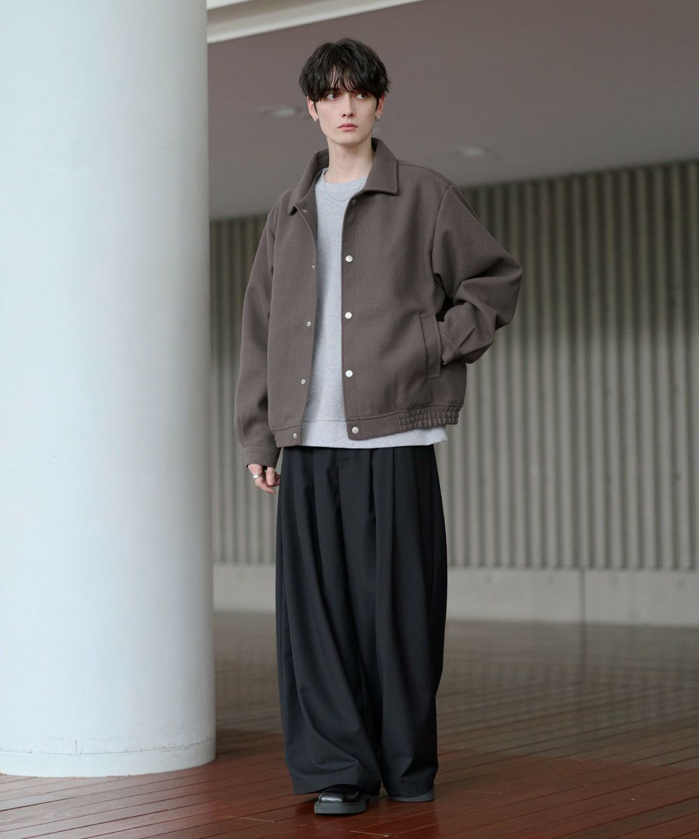 ビッグシルエットとショート丈の絶妙なバランス感がお洒落なショートブルゾン。ゆったりとした身幅とドロップショルダーが抜け感のある雰囲気を醸し出します。肘部分には2タック取り入れ、丸みのあるボリューミーなシルエットに。裾はゴム仕様にすることで隙間風を防ぎつつ、メリハリのあるシルエットをキープ。また、マットなカラーのスナップボタンを使用し上品な印象に仕上げました。フロントにはポケットを備え機能性もプラス。カラーはシックで馴染みやすいブラック、モカ、ライトグレー、ブラウン、チャコールの5色展開。カジュアルすぎず、タウンユースにも馴染むシティライクな万能アウターです。