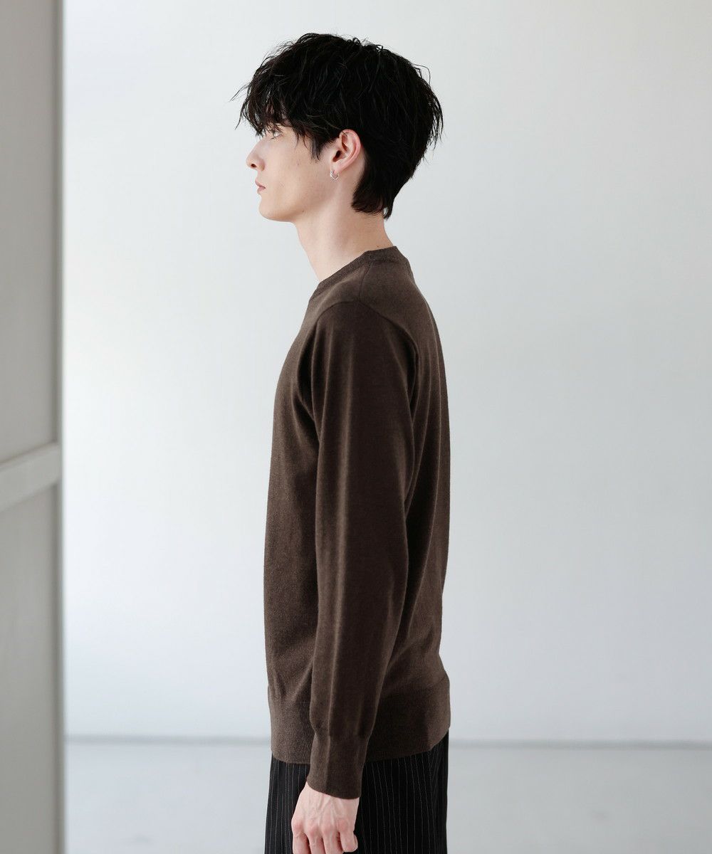 ウォッシャブル仕様のハイゲージニットに、毛玉ができにくい抗ピリング加工をプラスしました。カシミヤのような上質なタッチで、上品なルックスと快適な着心地を両立。ご自宅で洗濯できるためお手入れも簡単で、デイリーに着回しやすい一枚です。