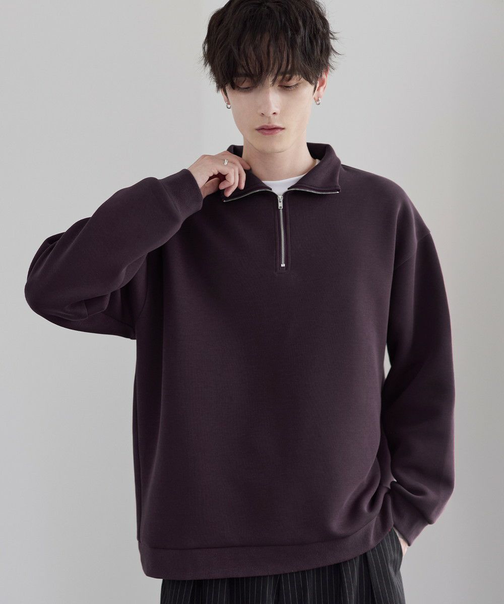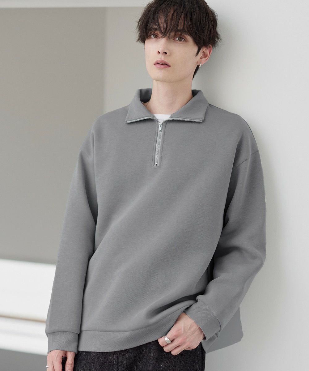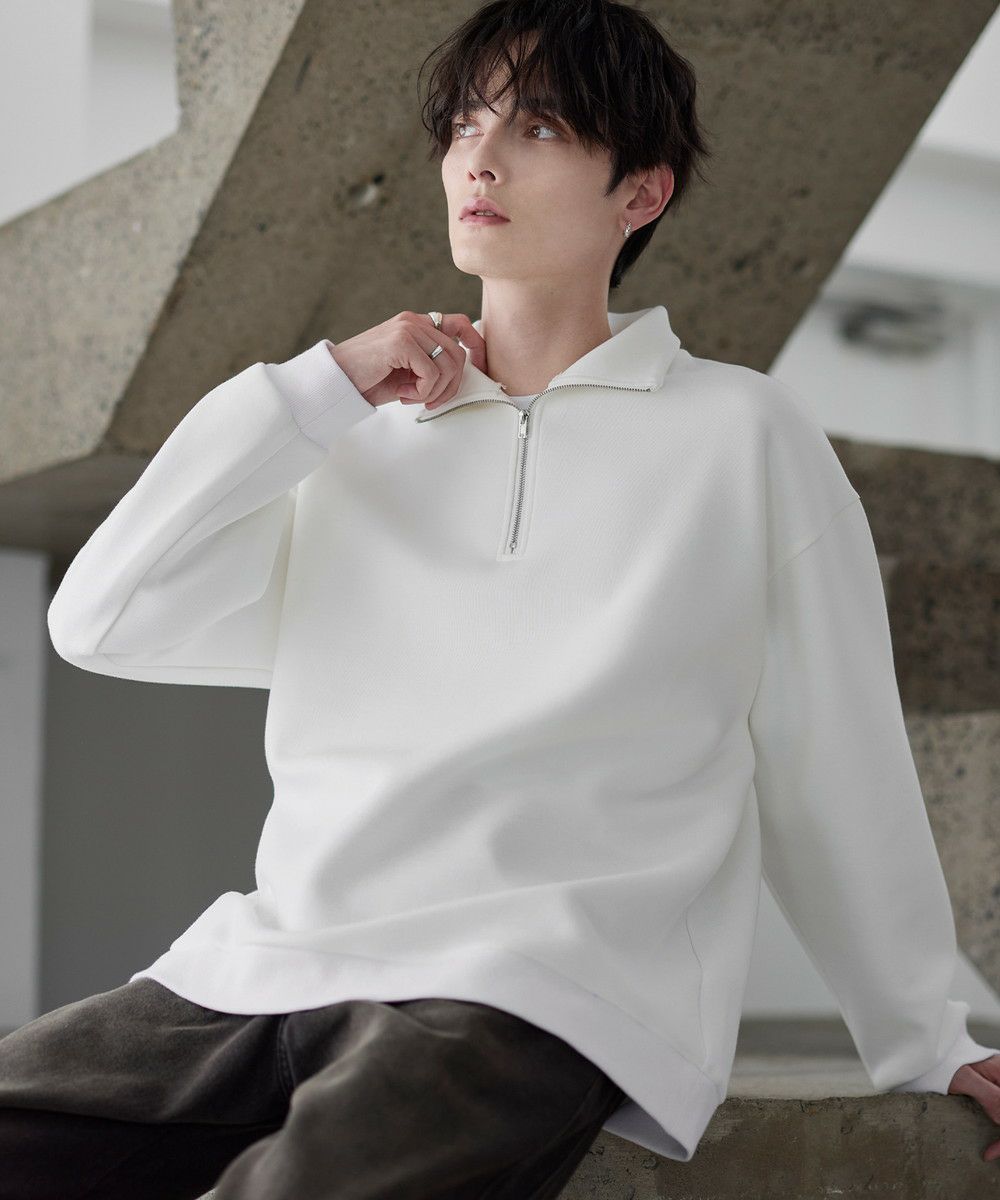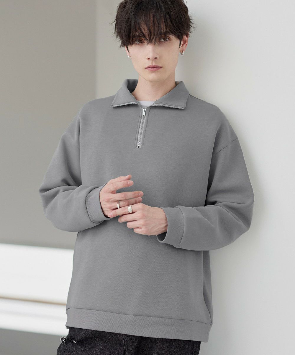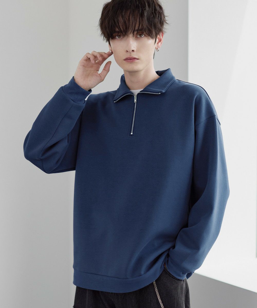 シンプルながらもトレンド感のあるデザインが魅力のハーフジッププルオーバー。ジップの開け閉めで印象の変化を楽しめるハーフジップ仕様で、アレンジが広がる一枚。ゆとりのある身幅とドロップショルダーでリラックス感のある雰囲気に仕上げました。