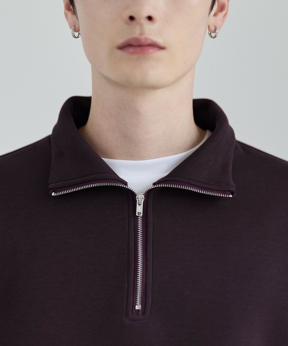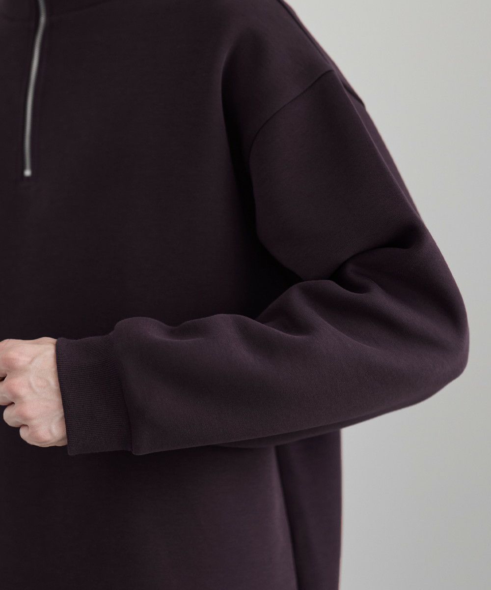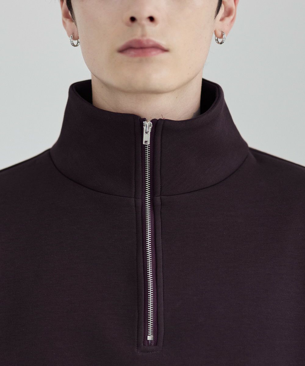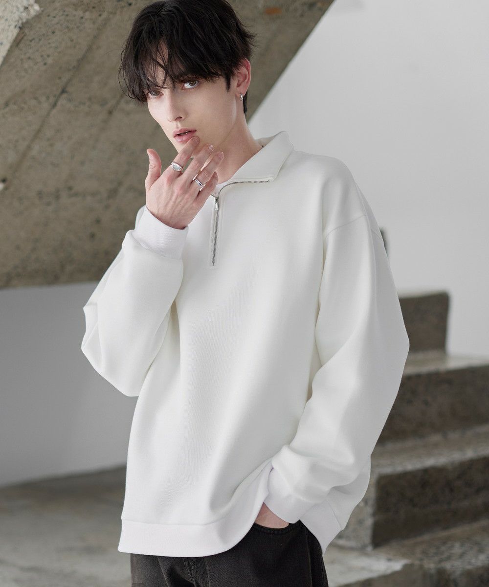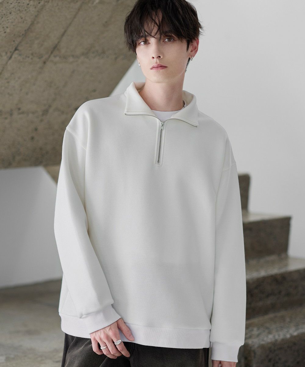 シンプルながらもトレンド感のあるデザインが魅力のハーフジッププルオーバー。ジップの開け閉めで印象の変化を楽しめるハーフジップ仕様で、アレンジが広がる一枚。ゆとりのある身幅とドロップショルダーでリラックス感のある雰囲気に仕上げました。