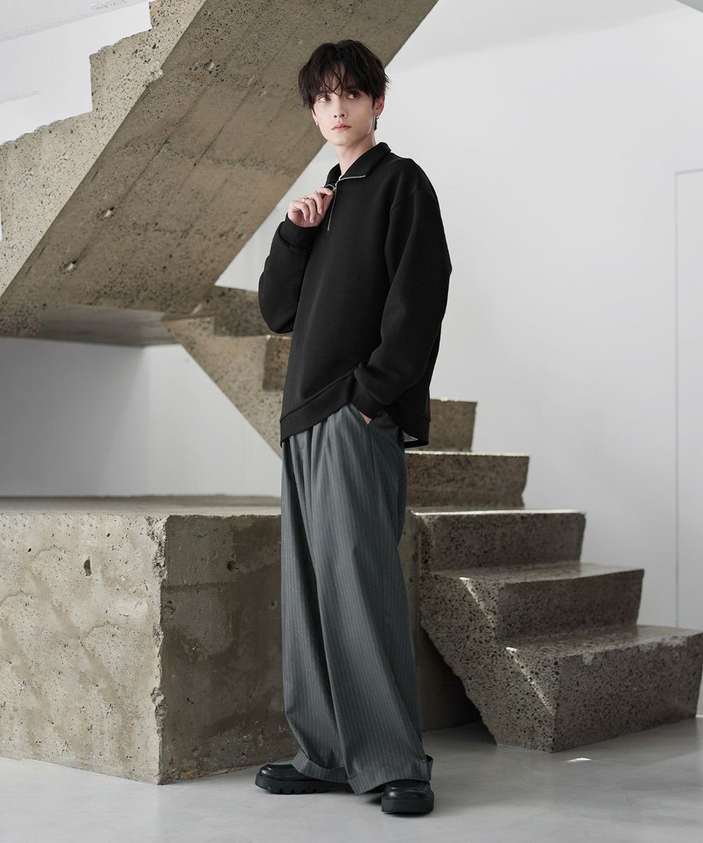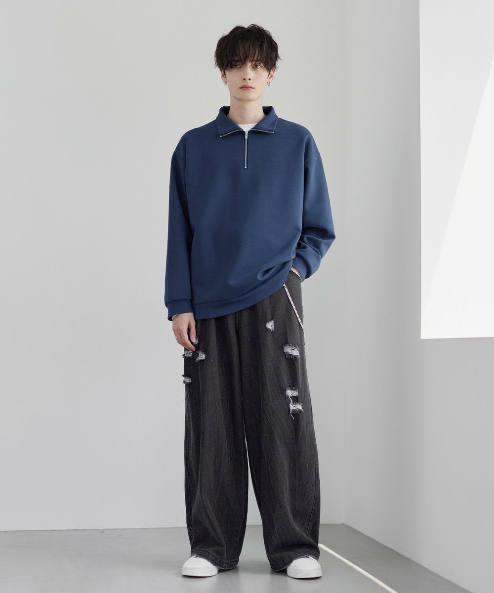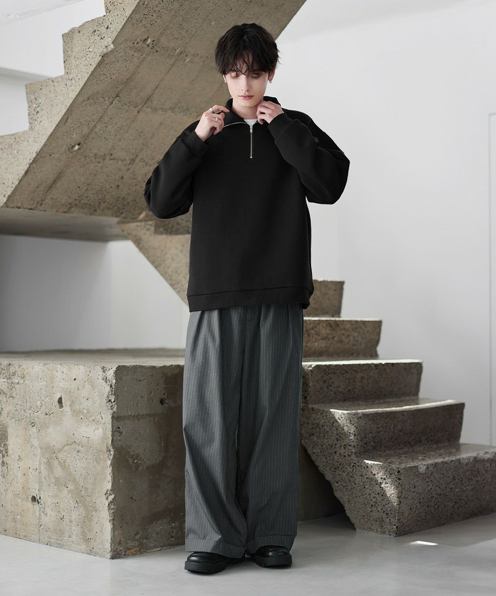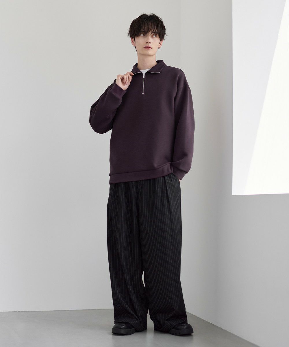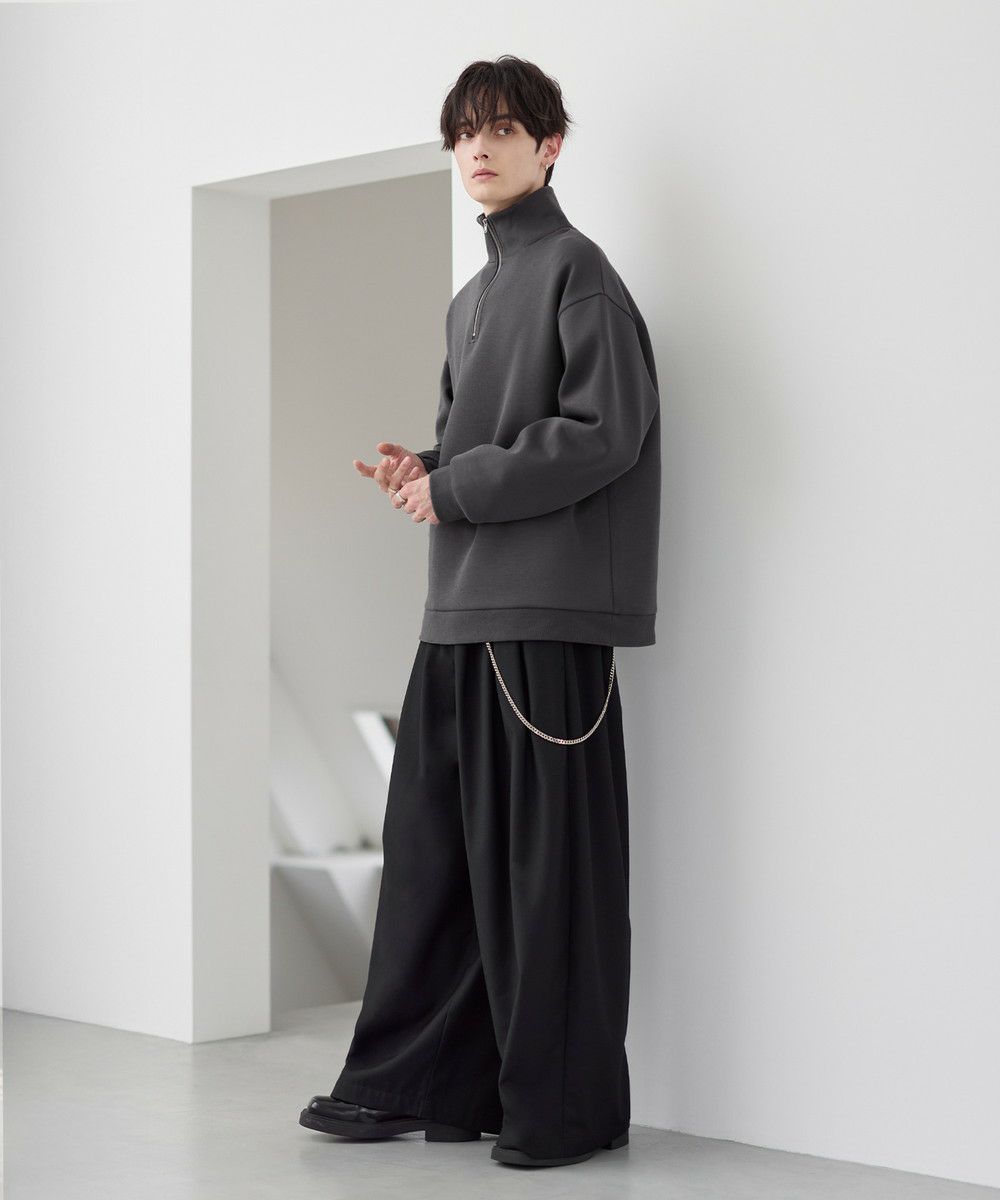 シンプルながらもトレンド感のあるデザインが魅力のハーフジッププルオーバー。ジップの開け閉めで印象の変化を楽しめるハーフジップ仕様で、アレンジが広がる一枚。ゆとりのある身幅とドロップショルダーでリラックス感のある雰囲気に仕上げました。