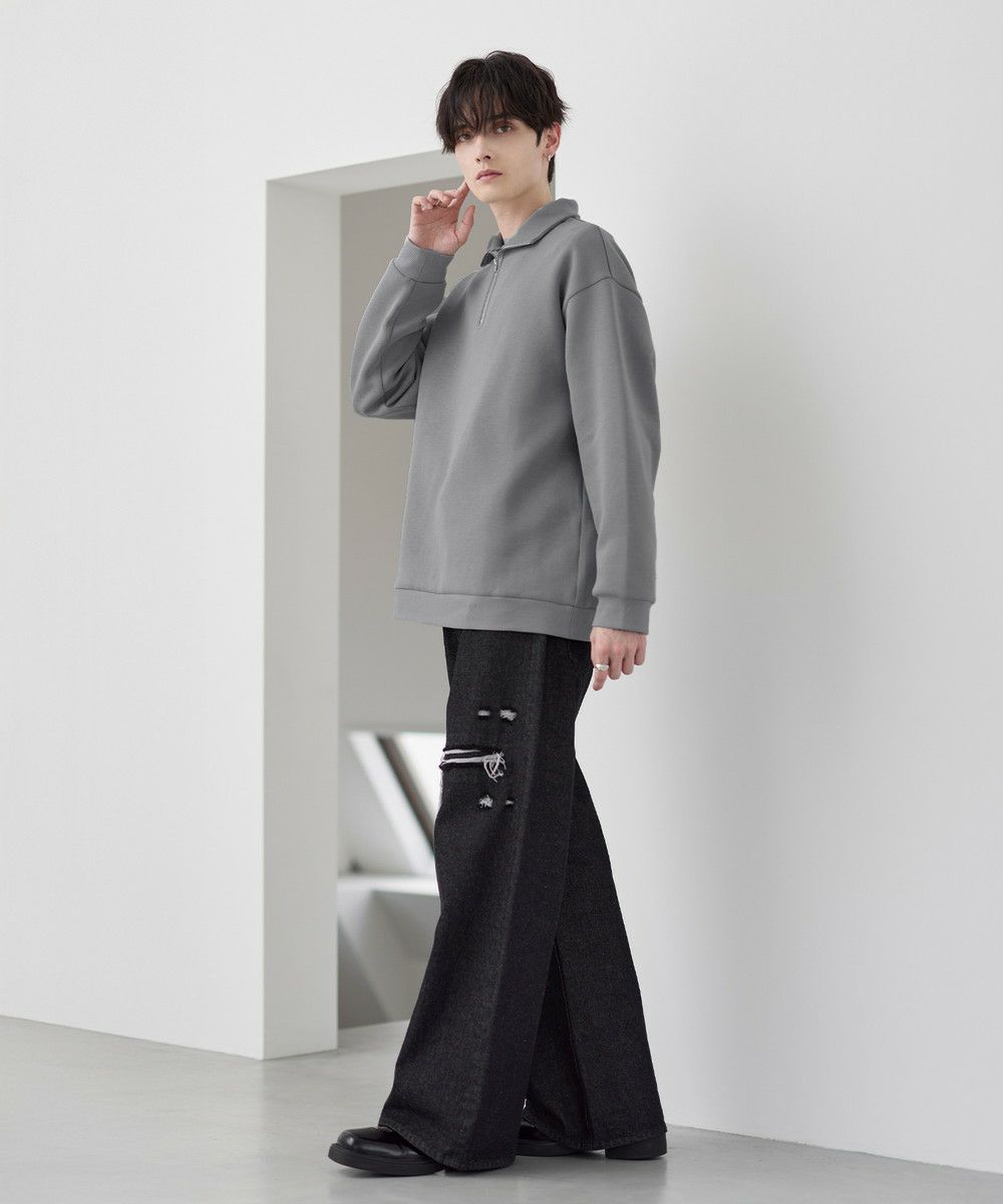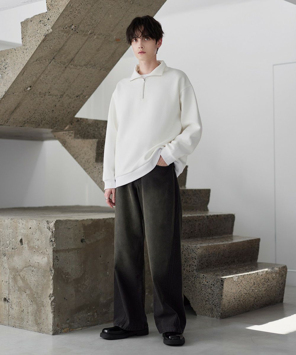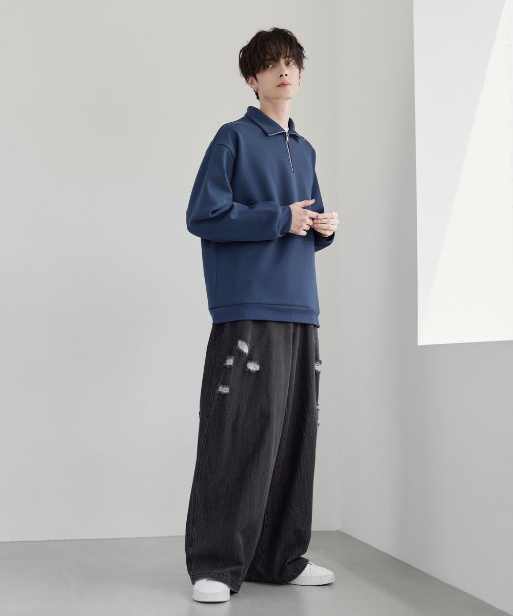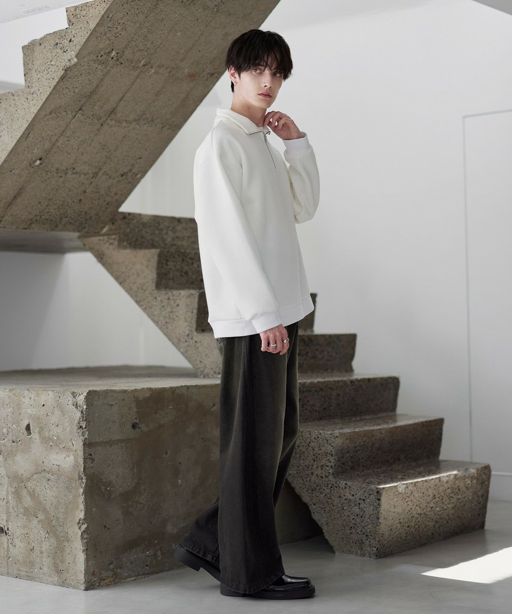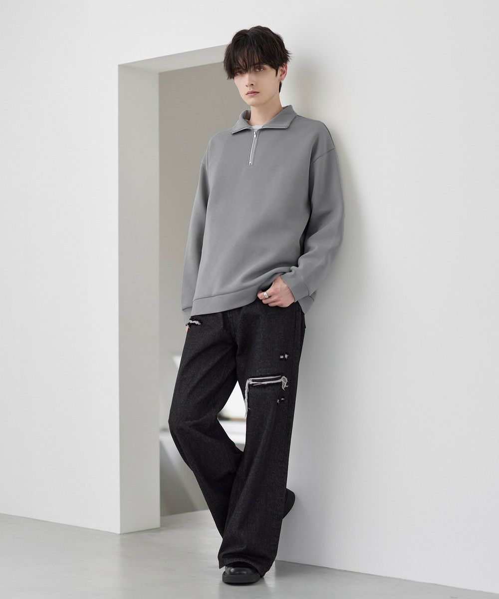 シンプルながらもトレンド感のあるデザインが魅力のハーフジッププルオーバー。ジップの開け閉めで印象の変化を楽しめるハーフジップ仕様で、アレンジが広がる一枚。ゆとりのある身幅とドロップショルダーでリラックス感のある雰囲気に仕上げました。