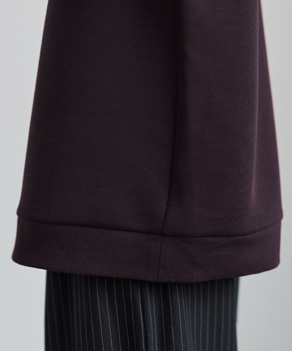 生地は、程よく厚みのあるポンチ素材を使用。空気を含んだようなふくらみと適度なハリが、立体的なシルエットをキープします。伸縮性にも優れストレスフリーな着心地。ほんのりと光沢感があり、シンプルなアイテムながら1枚で上品でキレイめな印象を与えてくれます。